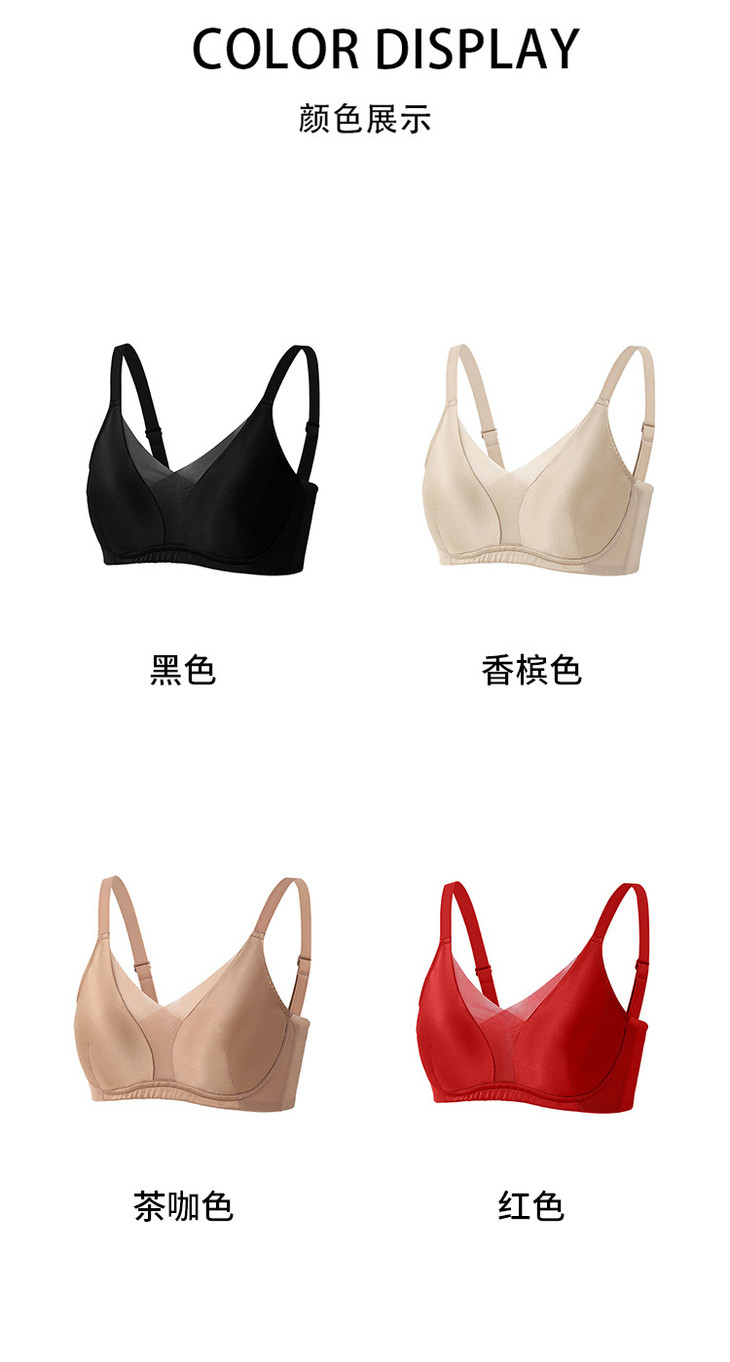 19姆米缎面真丝超薄无钢圈,桑蚕丝深V聚拢网纱拼接文胸 TG02S276 商品图0
