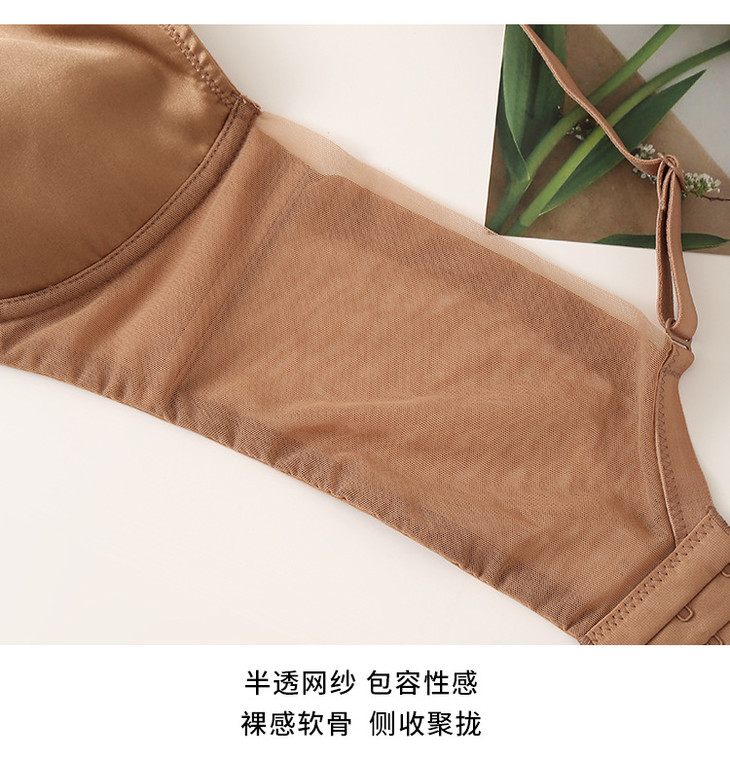 19姆米缎面真丝超薄无钢圈,桑蚕丝深V聚拢网纱拼接文胸 TG02S276 商品图3