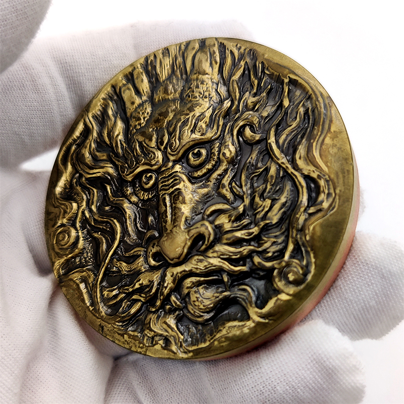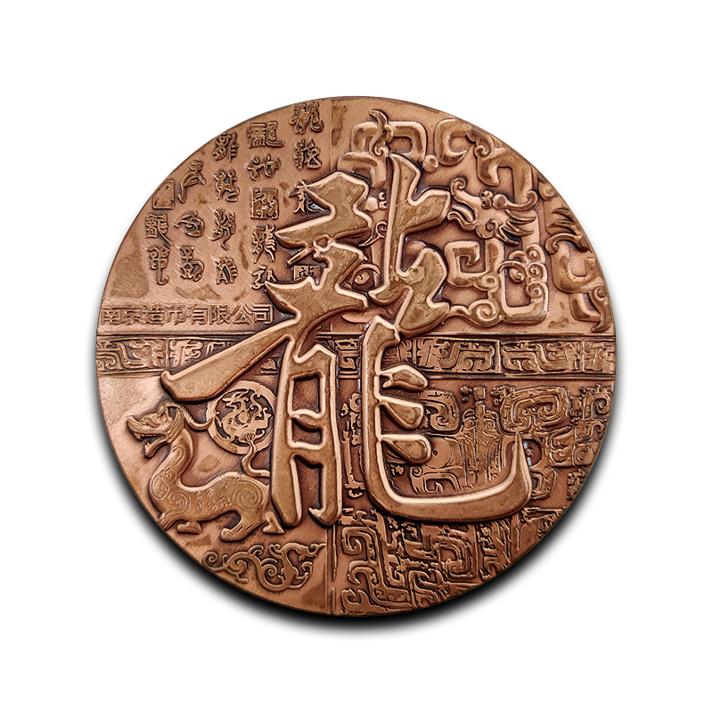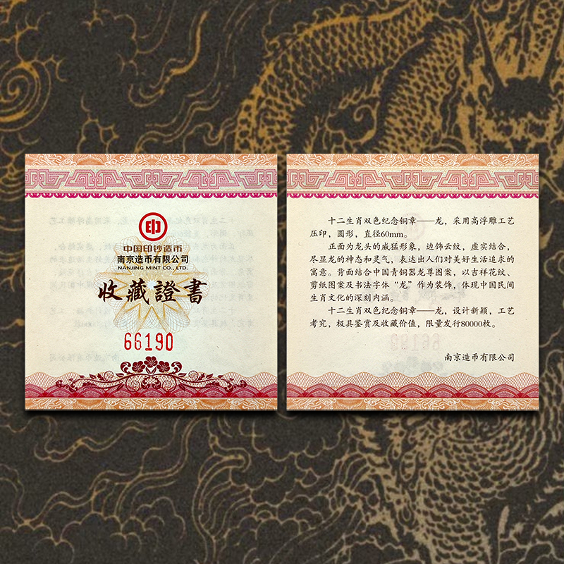 龙年双色铜章 南京造币发行 一面黄铜 一面紫铜 重约209克
