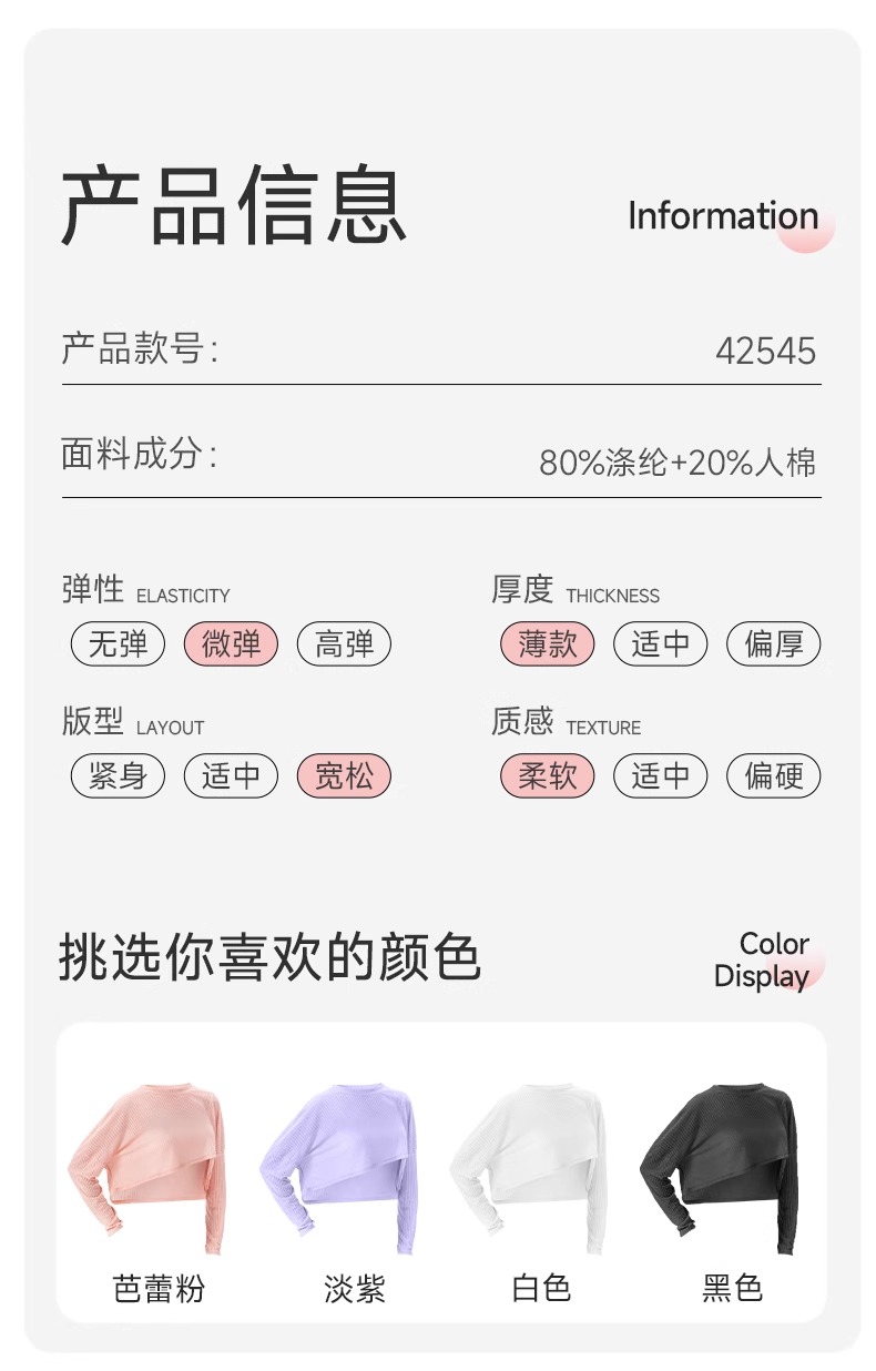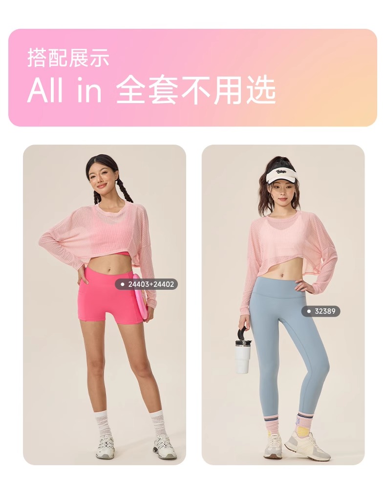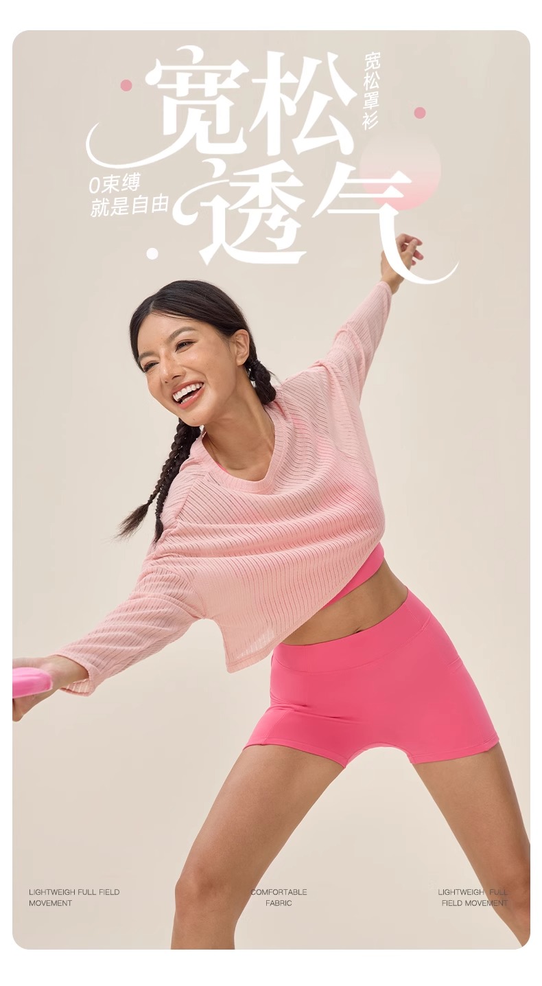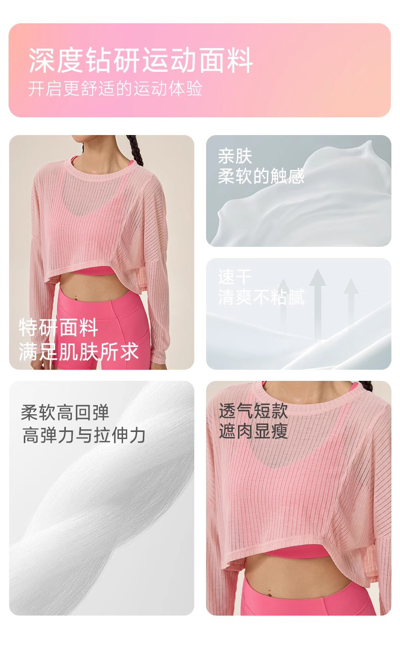 跃牌【欲动春风】系列 女瑜伽罩衫长袖轻薄透气健身上衣运动罩衫42545