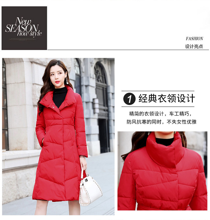 WZNH-SYY1876纯色中长款修身长袖时尚保暖通勤棉衣棉服