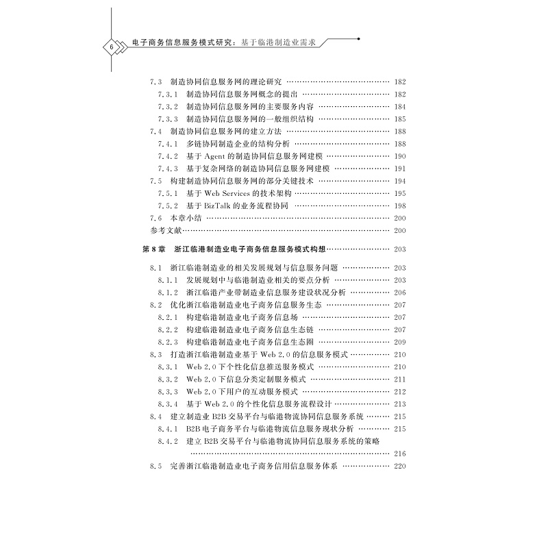 本书围绕临港制造业对电子商务信息服务的现实需求,以电子商务、信息服务、管理学理论为基础,兼顾临港外向型制造企业个性化信息服务诉求,系统地探讨面向制造业的电子商务交易信息服务模式、电子商务信用信息服务模式、电子商务物流信息服务模式以及网络化协同制造信息服务模式,包括各种服务模式的具体业务内容、实现途径或方案建议等。