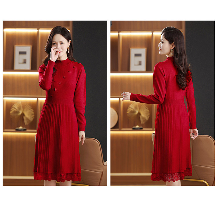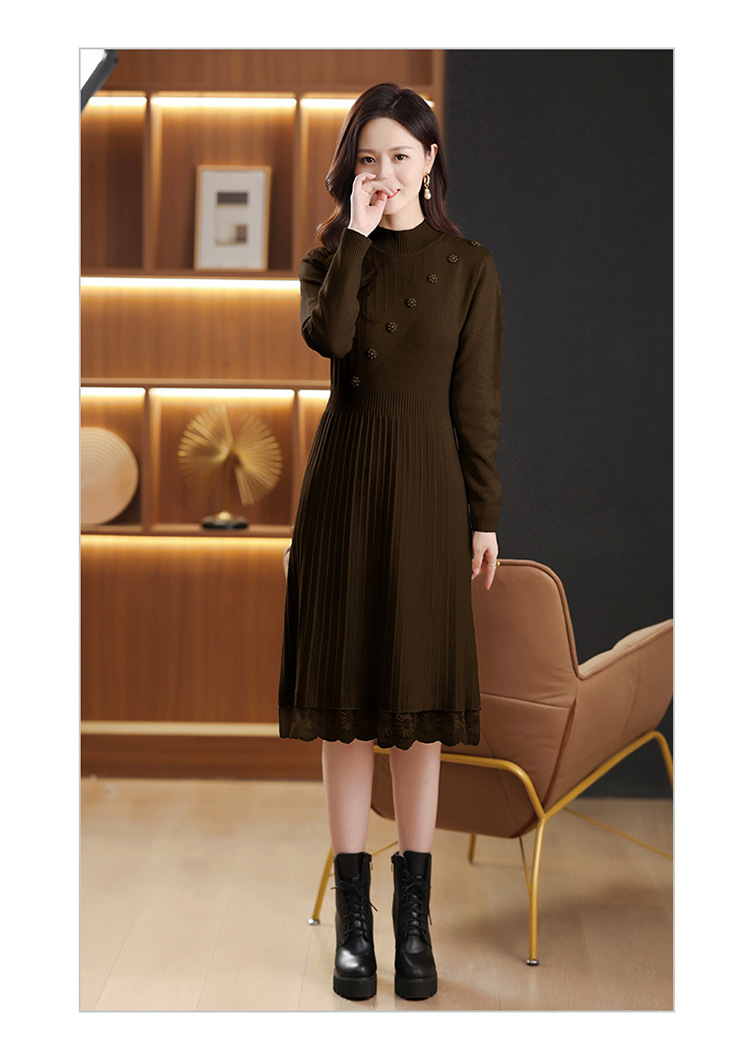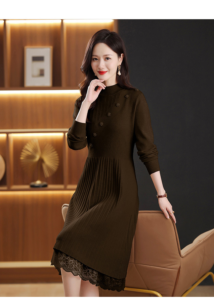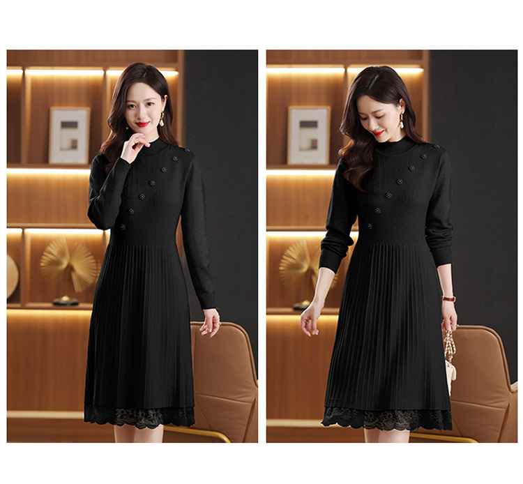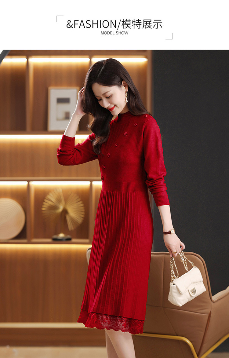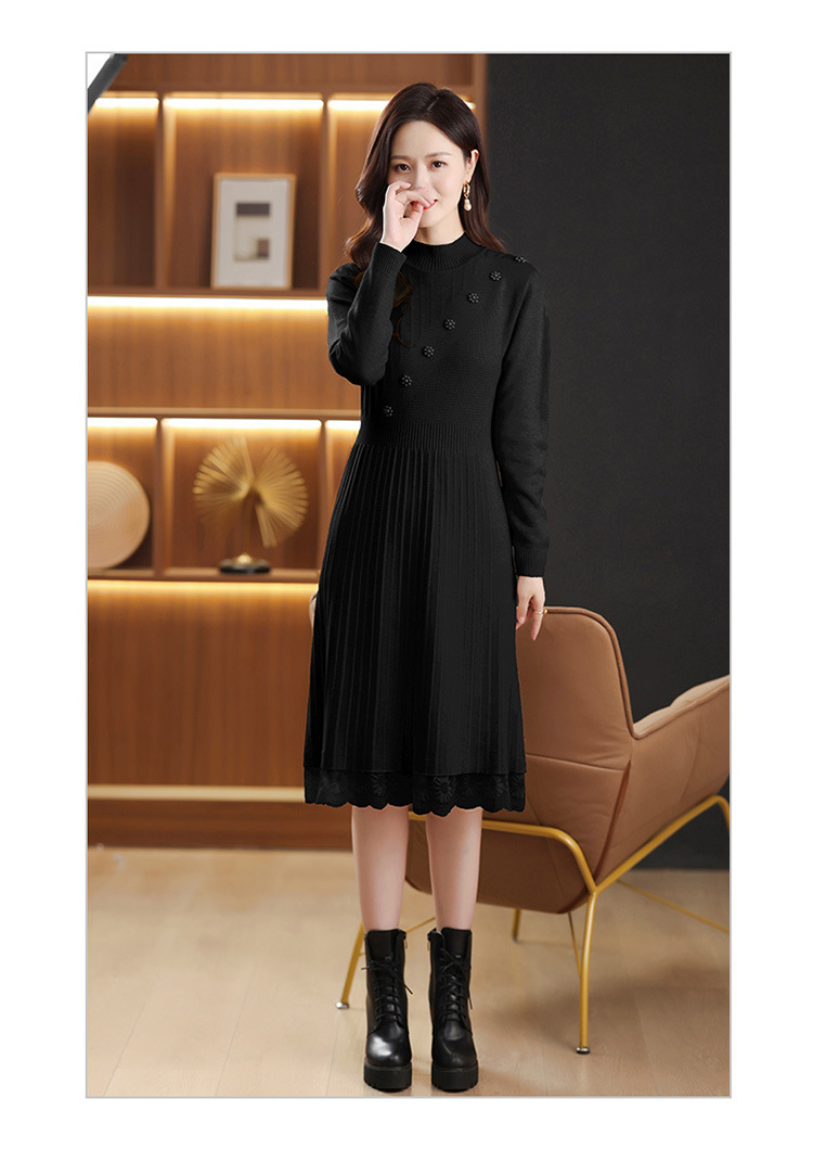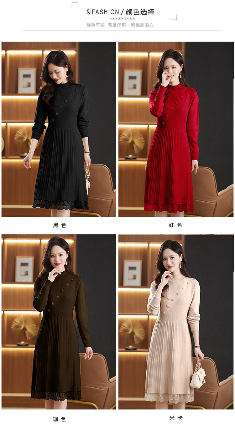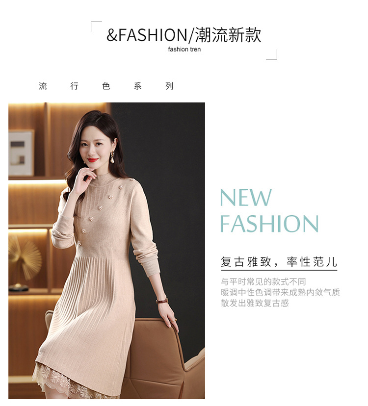 FCY 88817连衣裙过膝蕾丝边毛衣裙配大衣宽松针织裙 商品图4