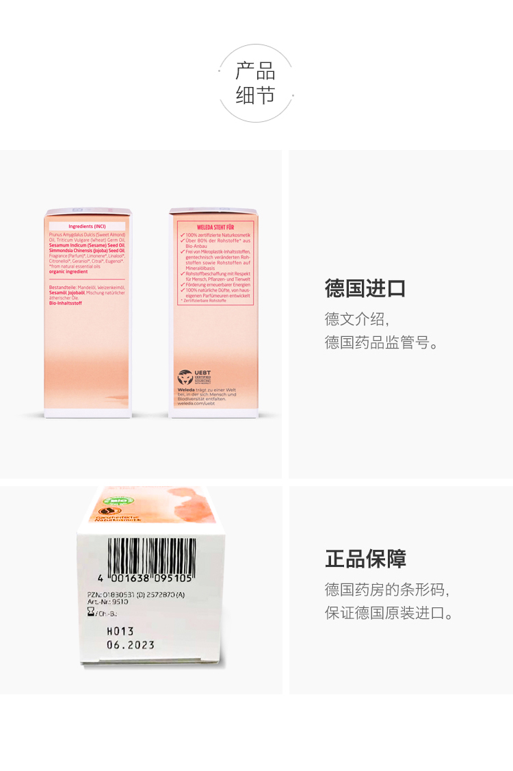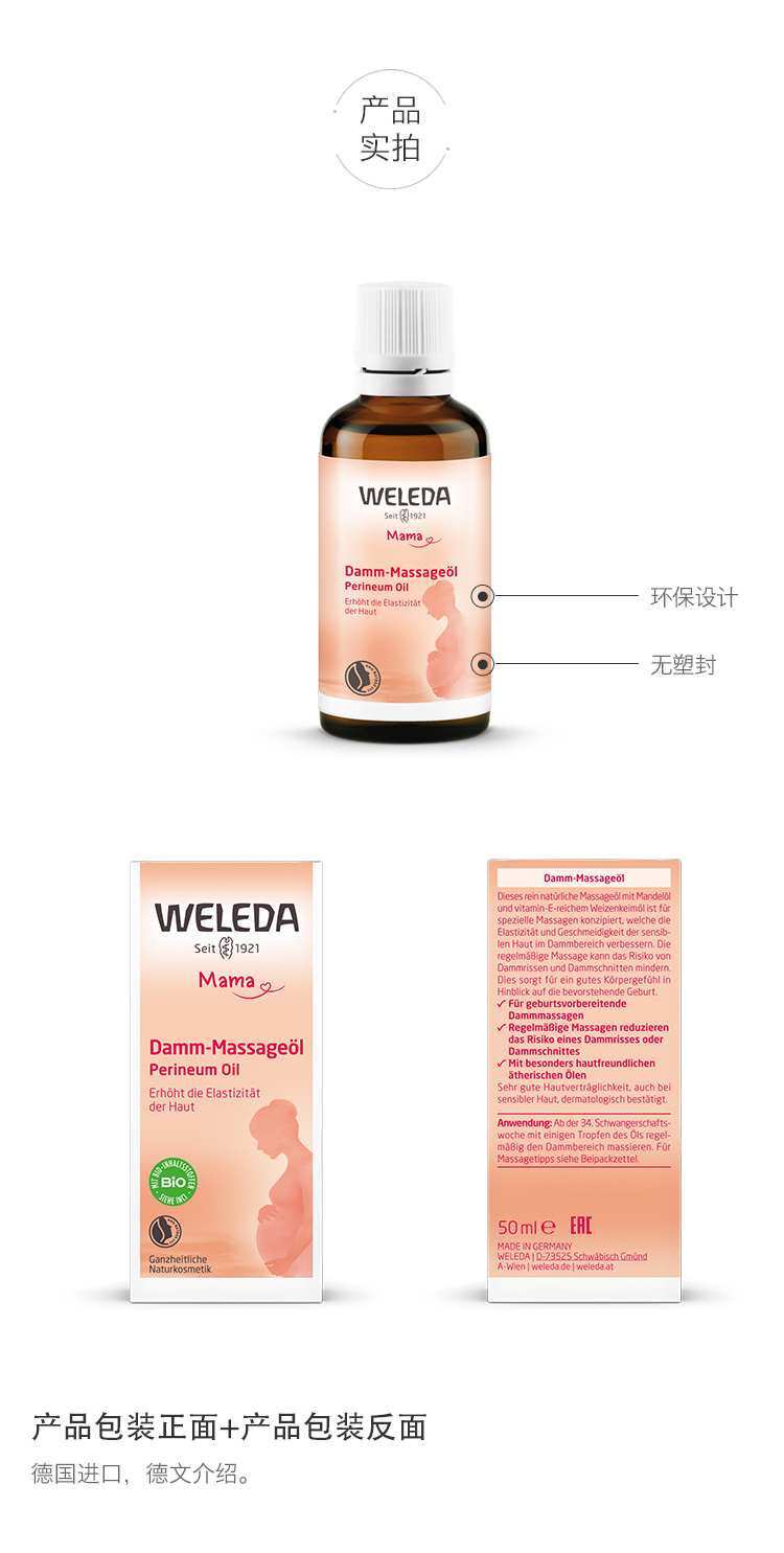 【品牌旗舰】Weleda维蕾德 孕妇身体按摩油 分娩会阴按摩油 顺产不侧切 50ml