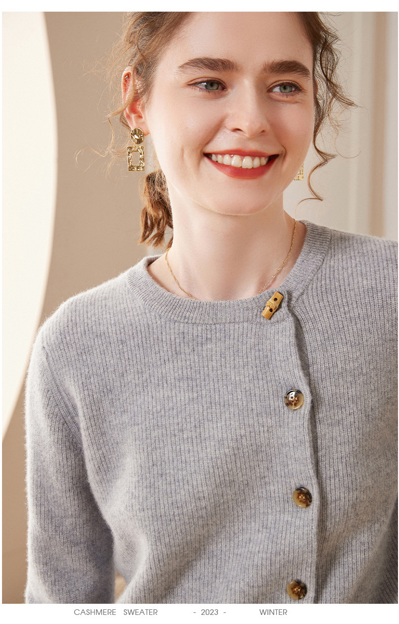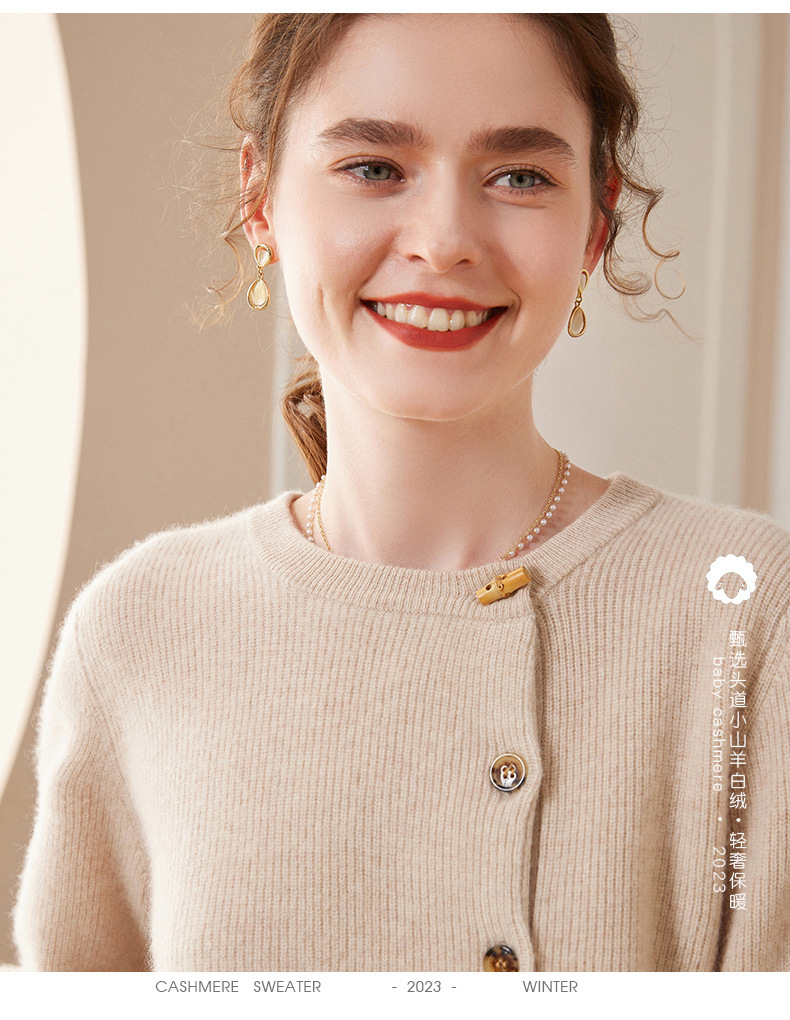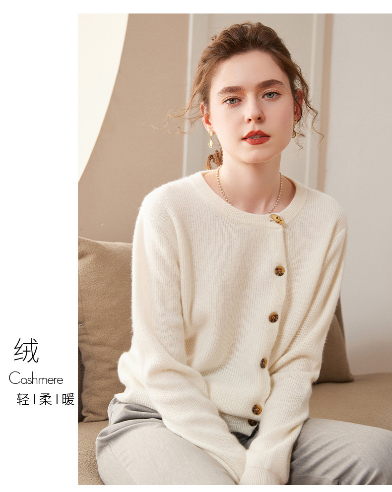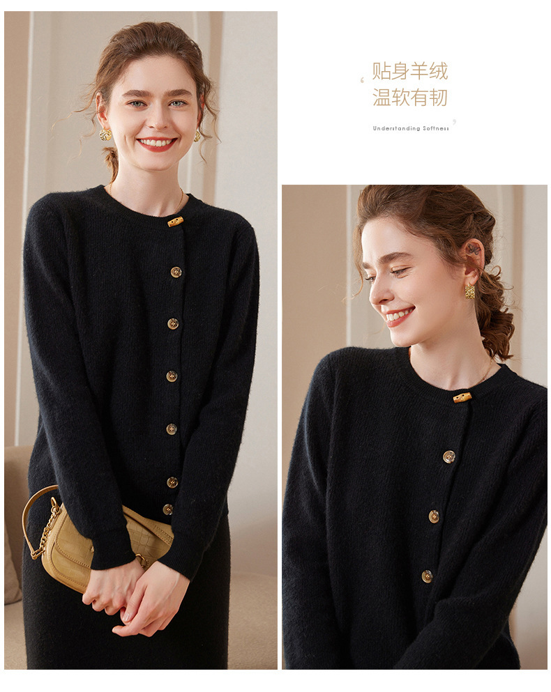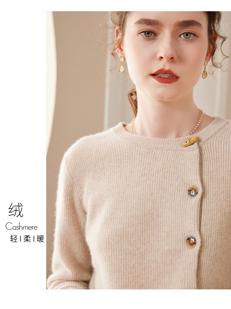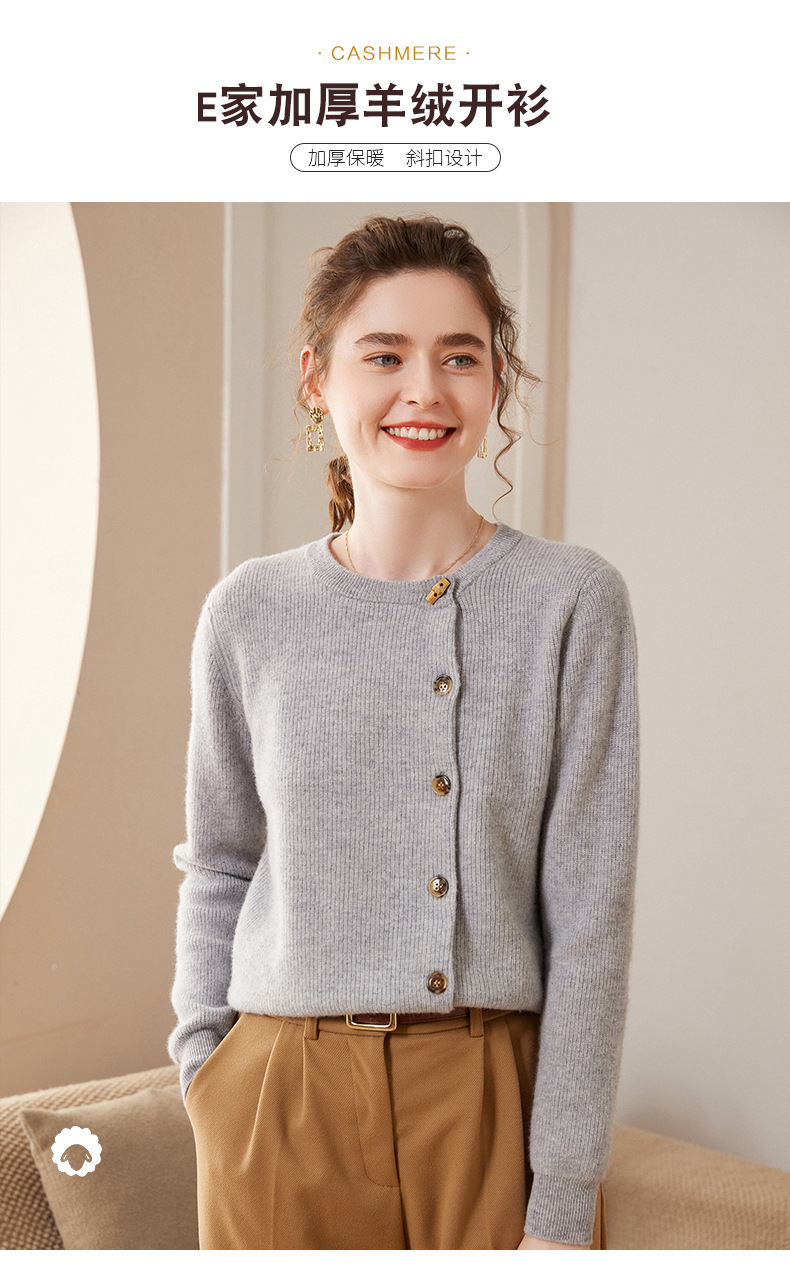 【高货QJ】全新升级【铂金会员422/天猫569/差价147】(13842) 洛诗琳秋冬新款圆领山羊绒开衫女加厚竹节扣设计感羊绒衫
