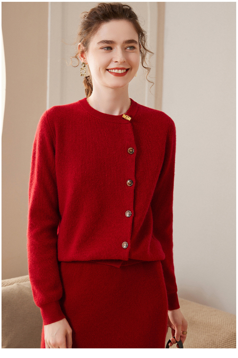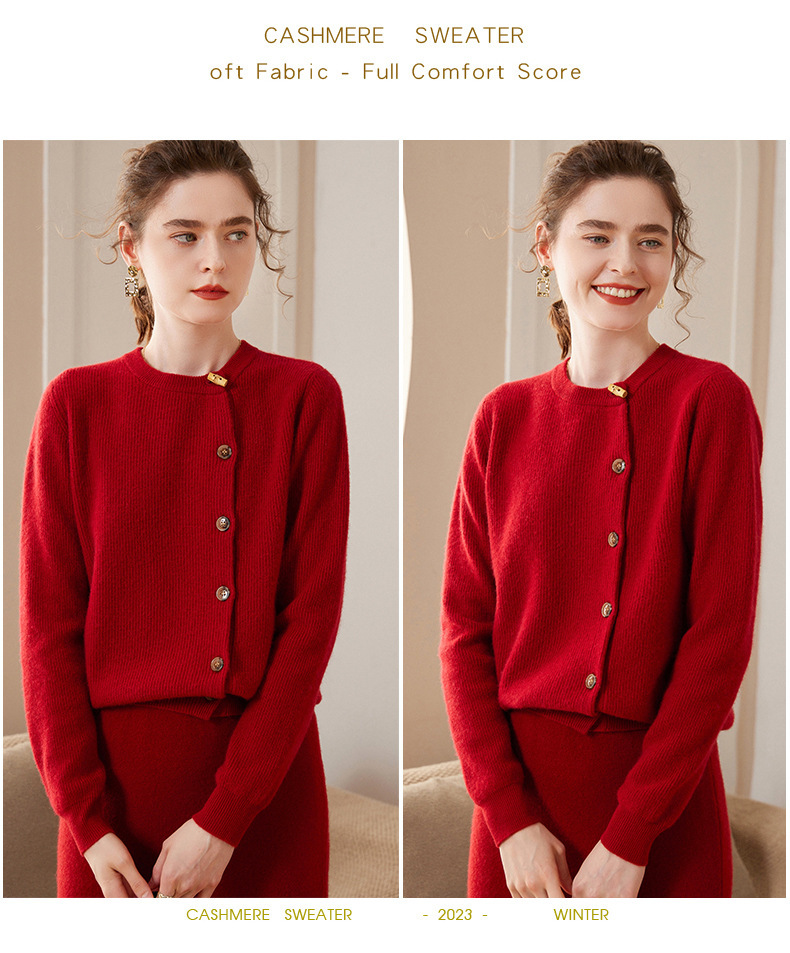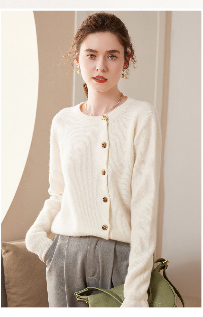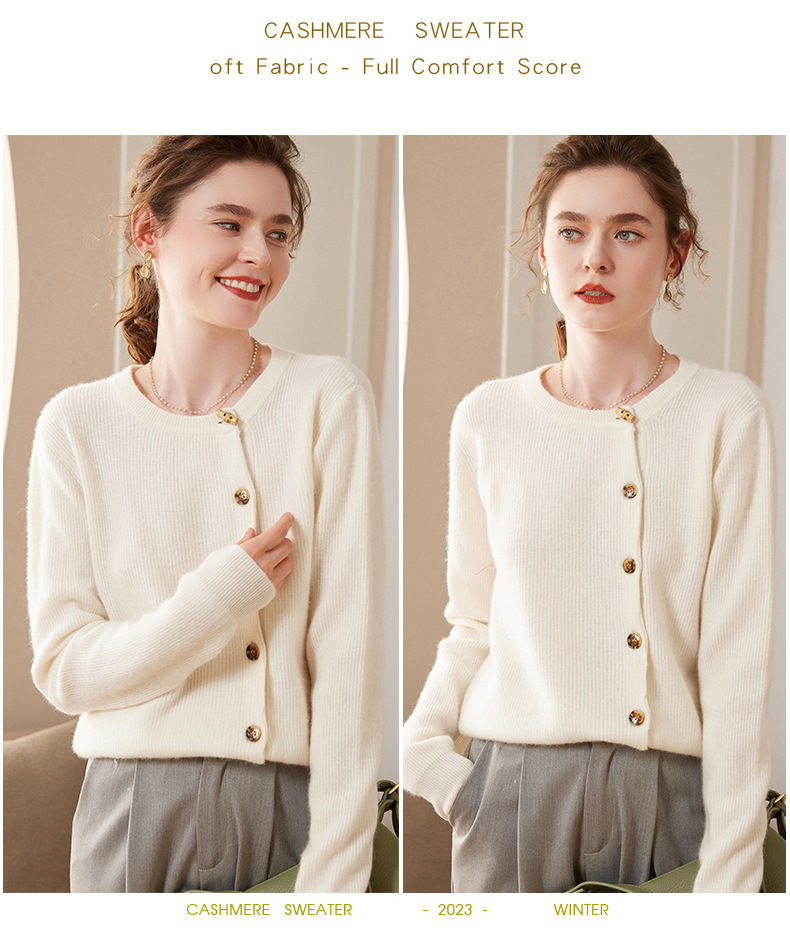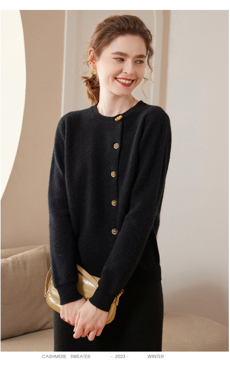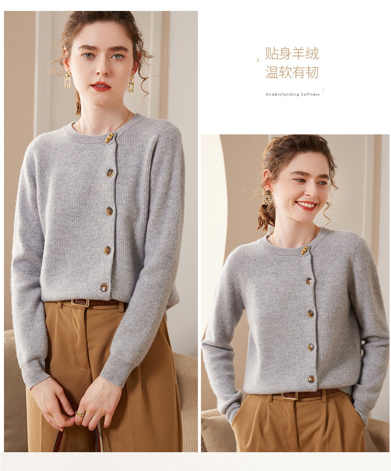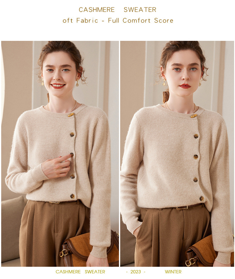 【高货QJ】全新升级【铂金会员422/天猫569/差价147】(13842) 洛诗琳秋冬新款圆领山羊绒开衫女加厚竹节扣设计感羊绒衫