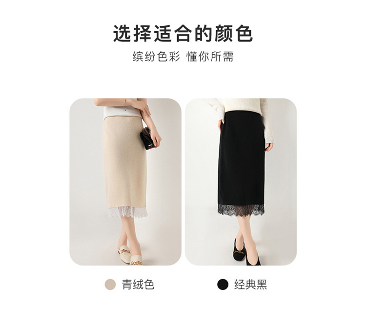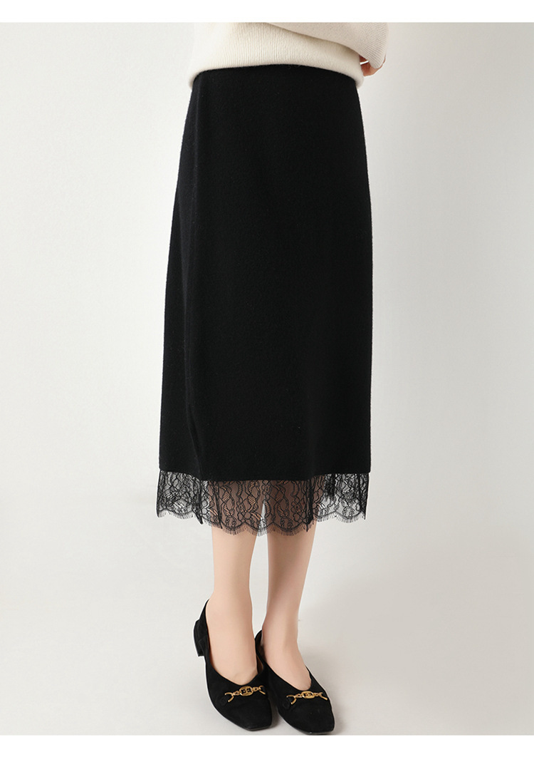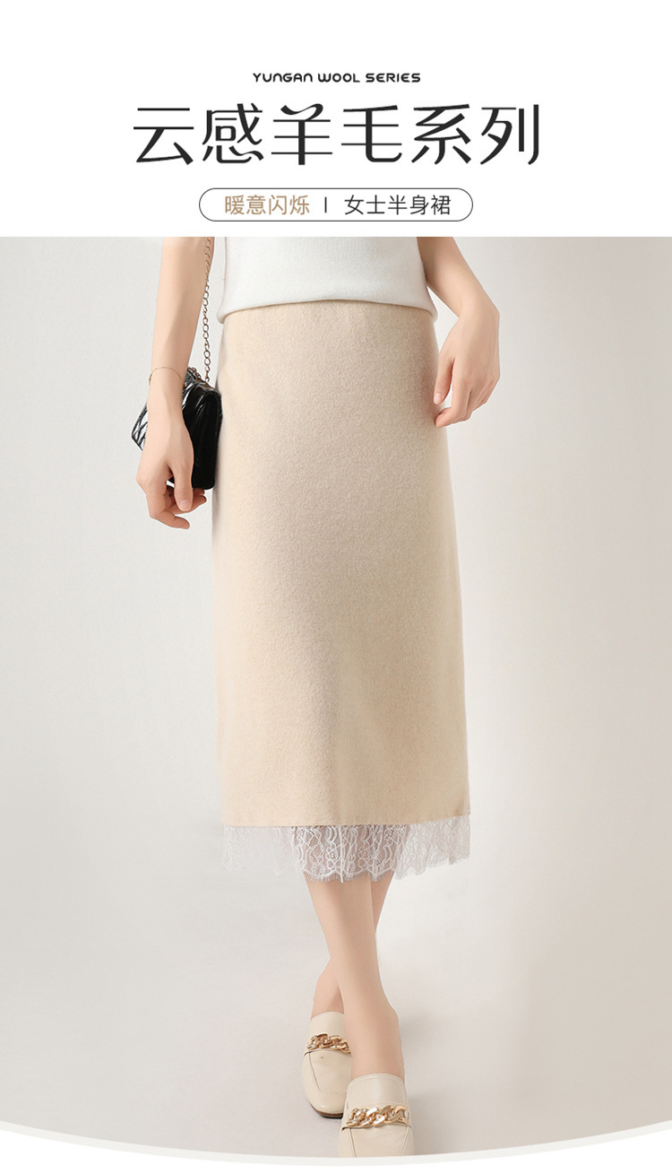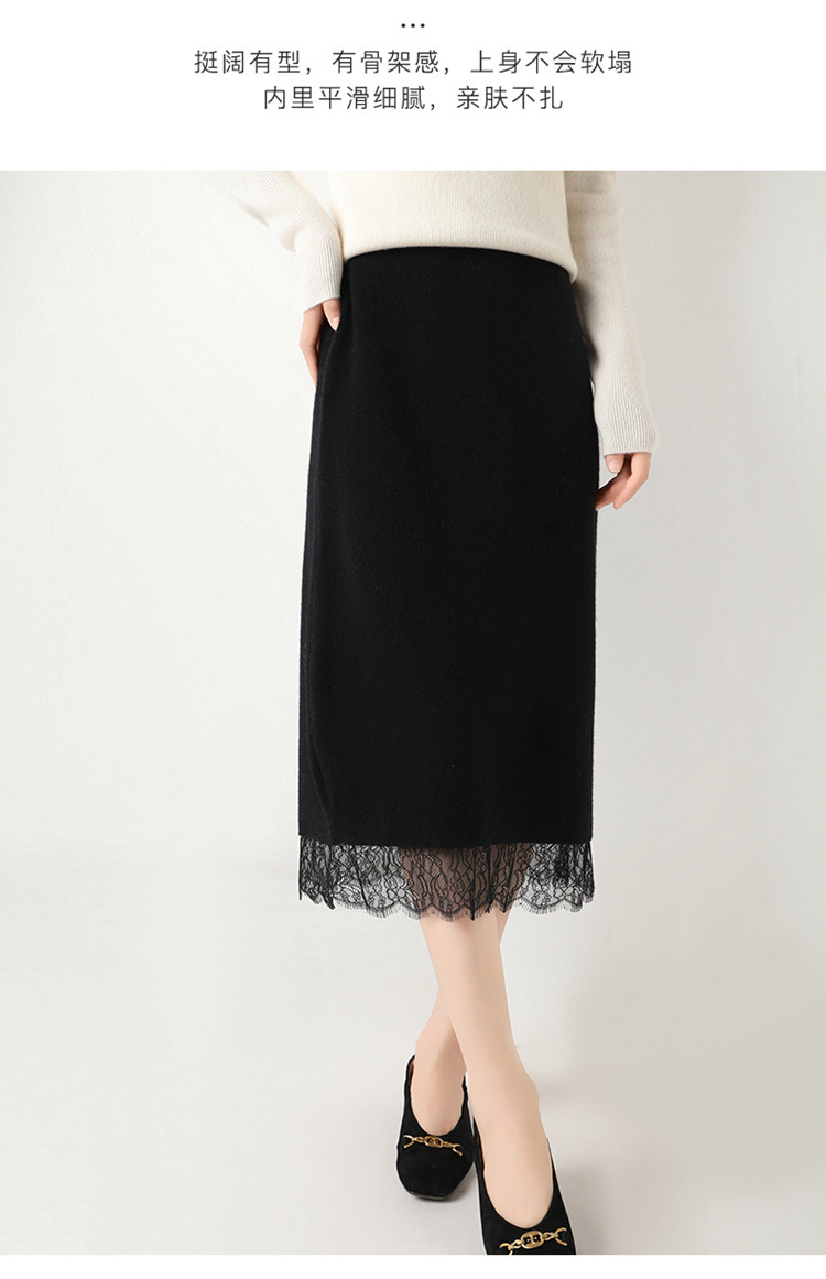【高货QJ】全新升级【铂金会员247/天猫329/差价82】(13320) 洛诗琳秋冬松紧腰中长款100羊毛蕾丝花边羊绒半身裙