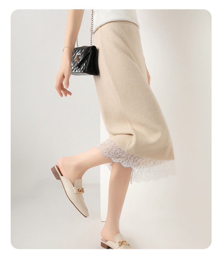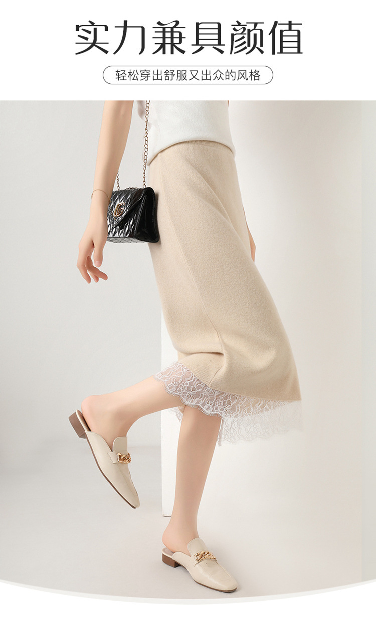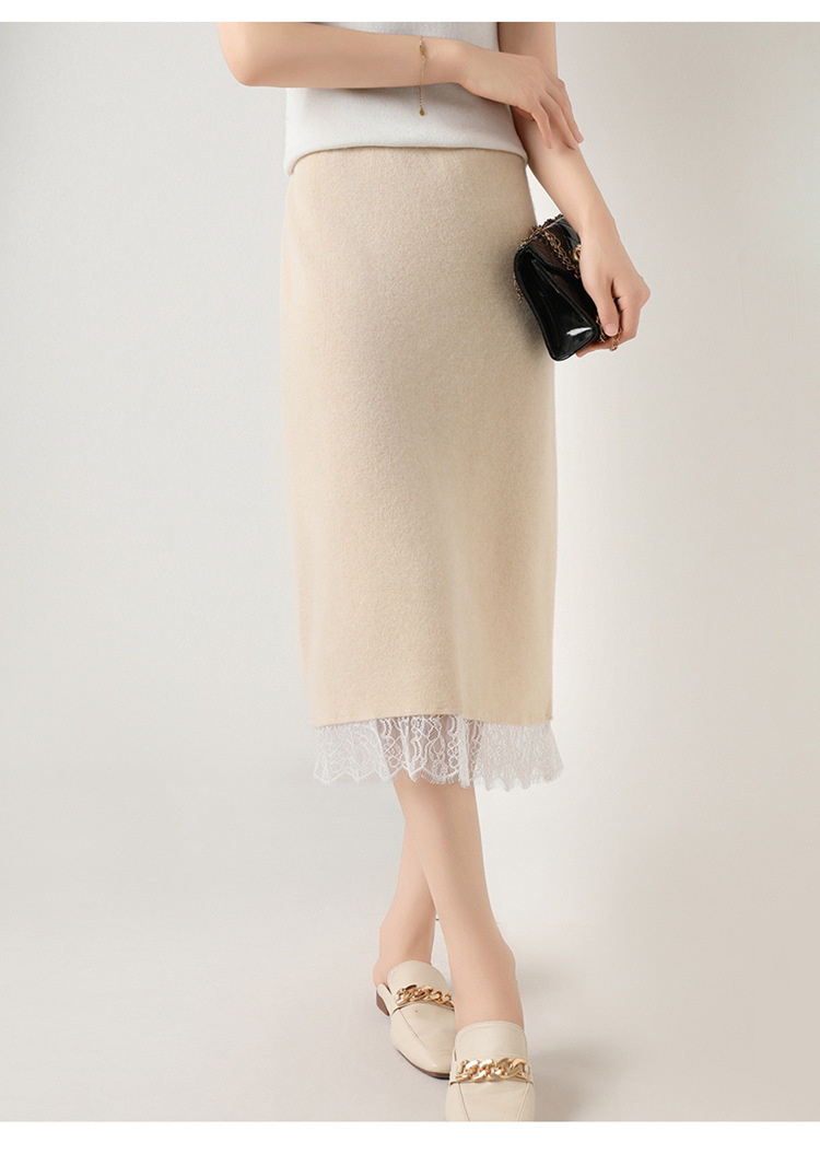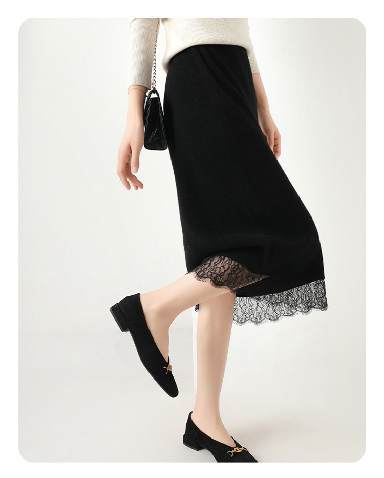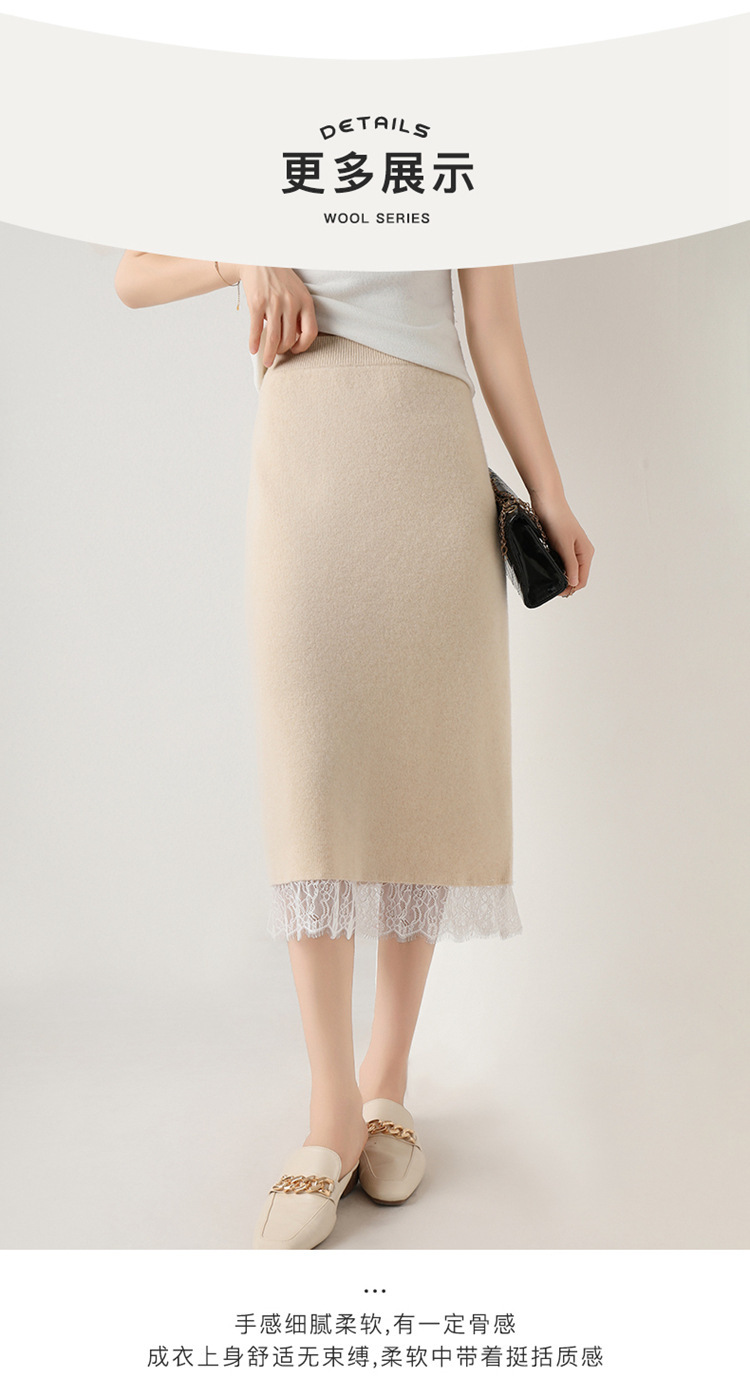 【高货QJ】全新升级【铂金会员247/天猫329/差价82】(13320) 洛诗琳秋冬松紧腰中长款100羊毛蕾丝花边羊绒半身裙