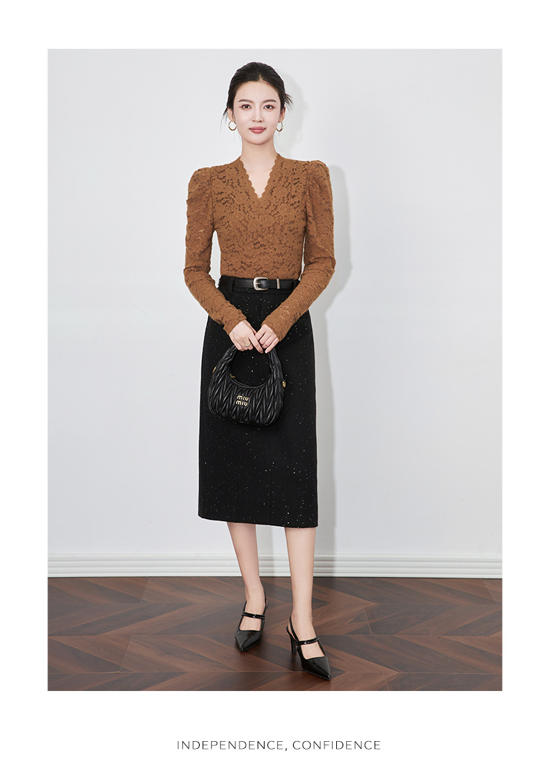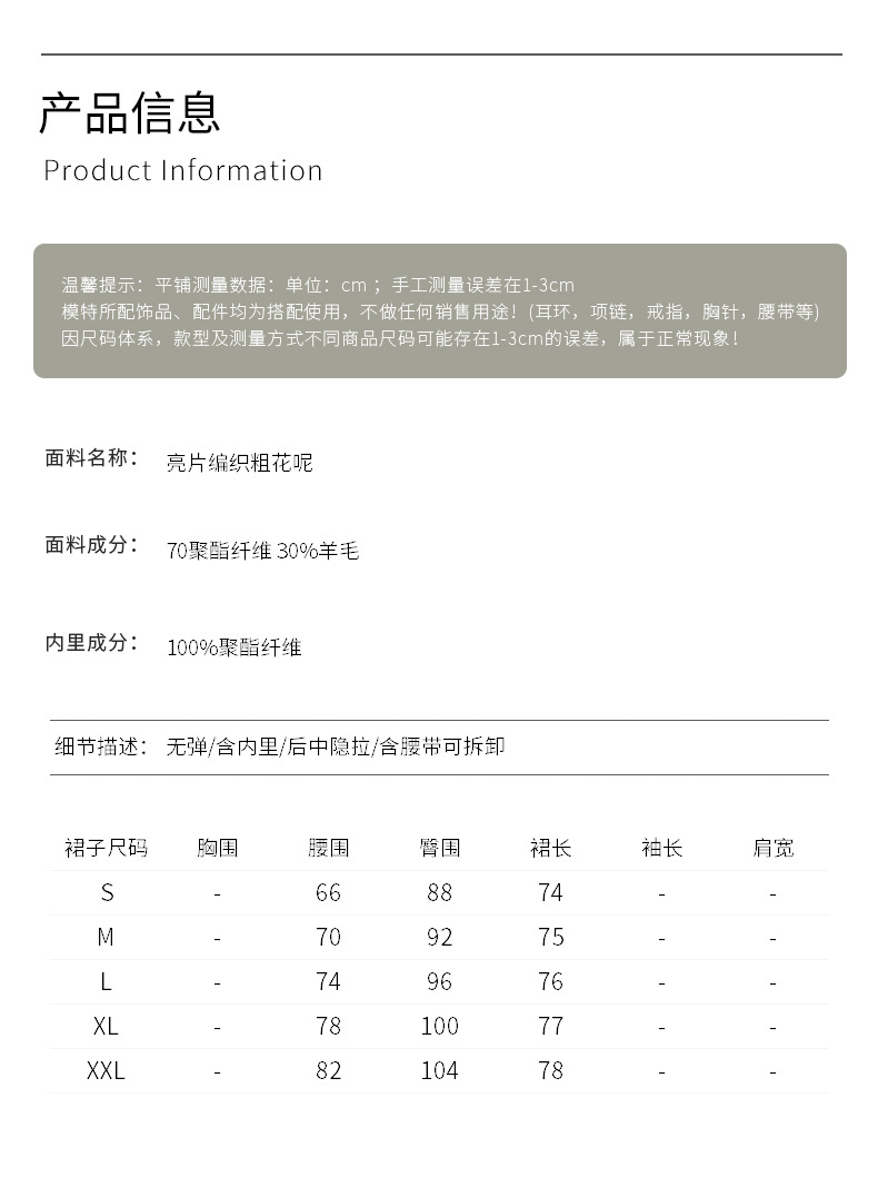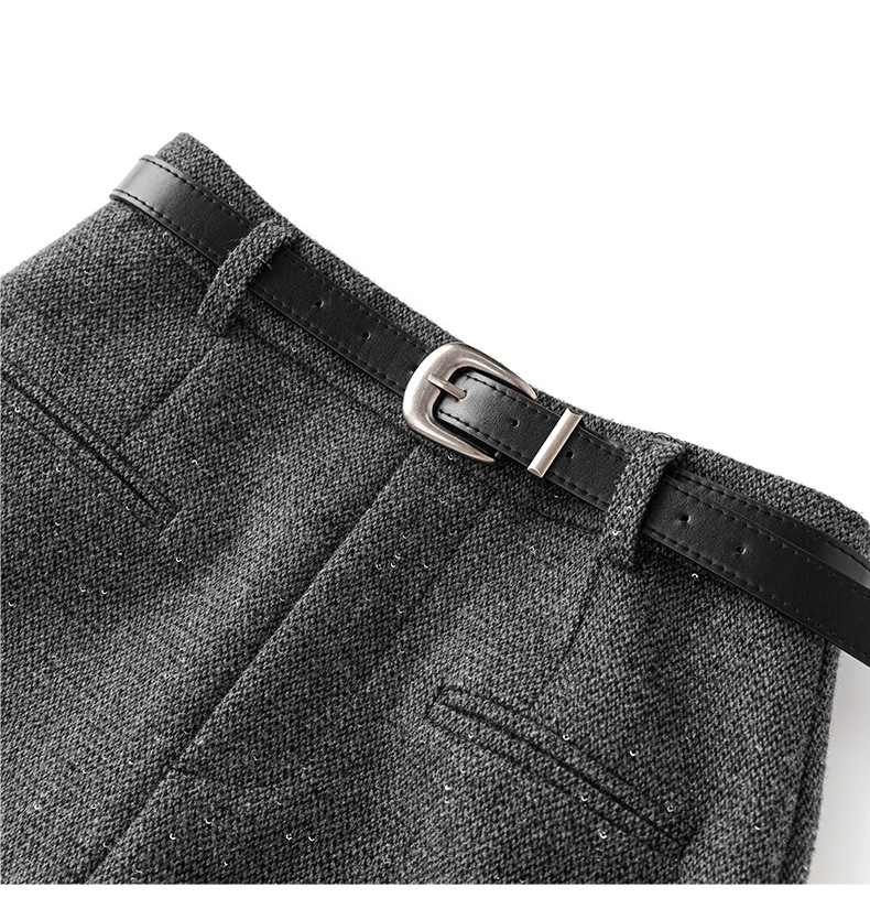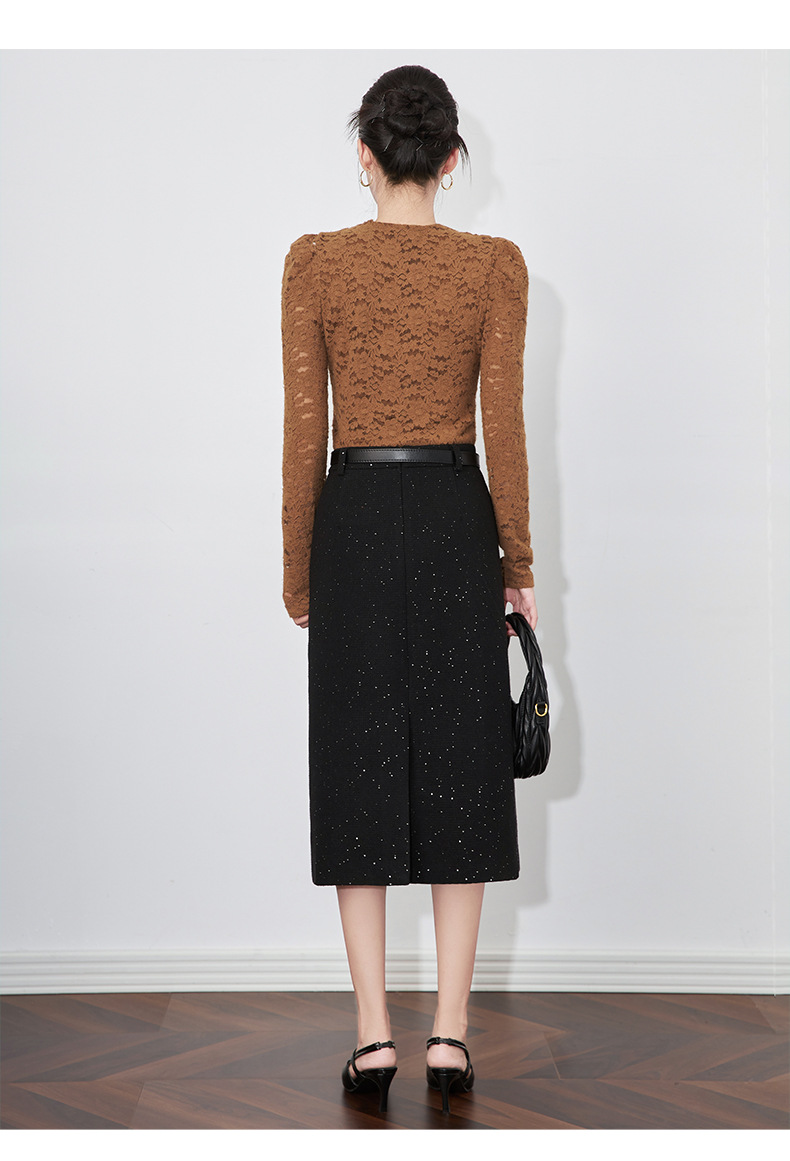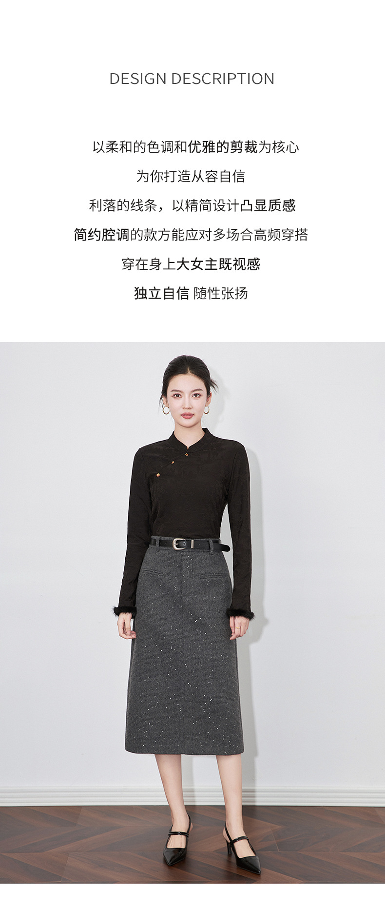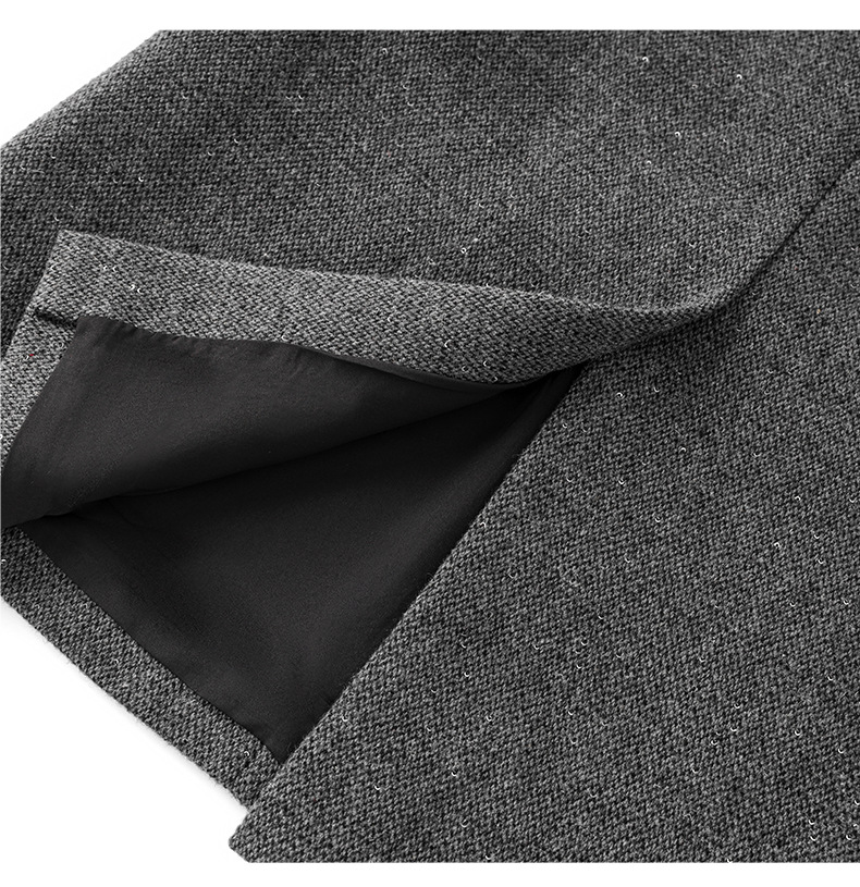 【高货wl】全新升级【铂金会员220/天猫299/差价79】(01622) 洛诗琳羊毛混纺亮片粗呢通勤显瘦直筒高腰包臀后开衩半裙