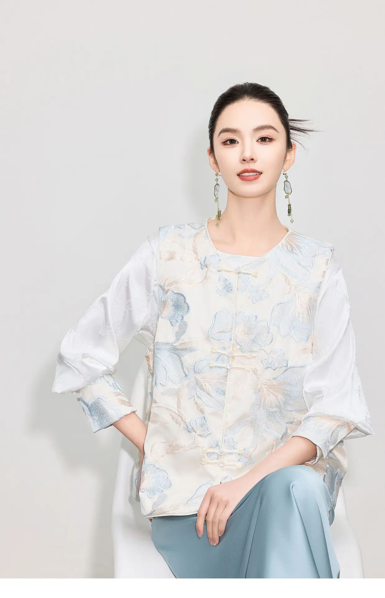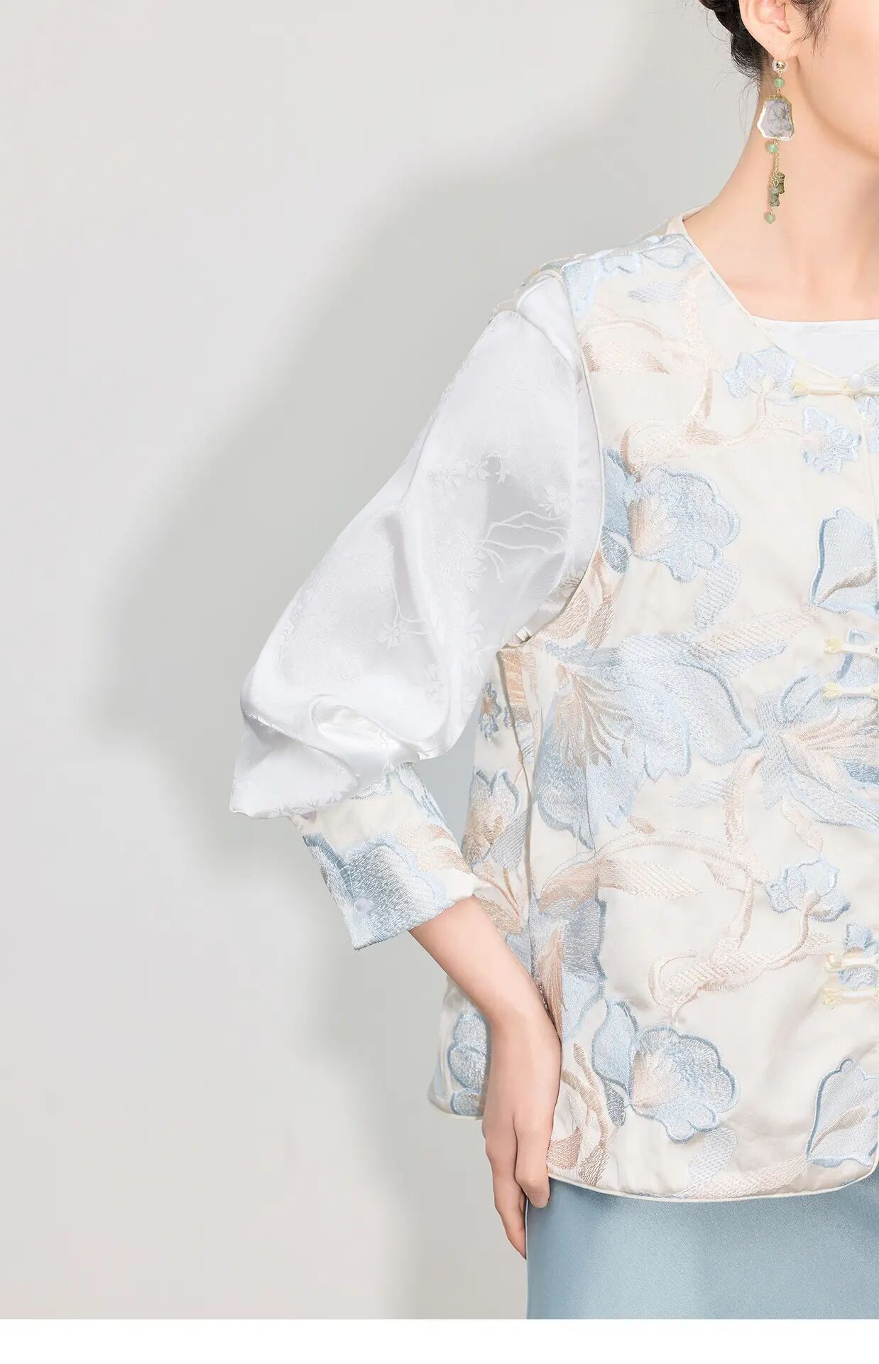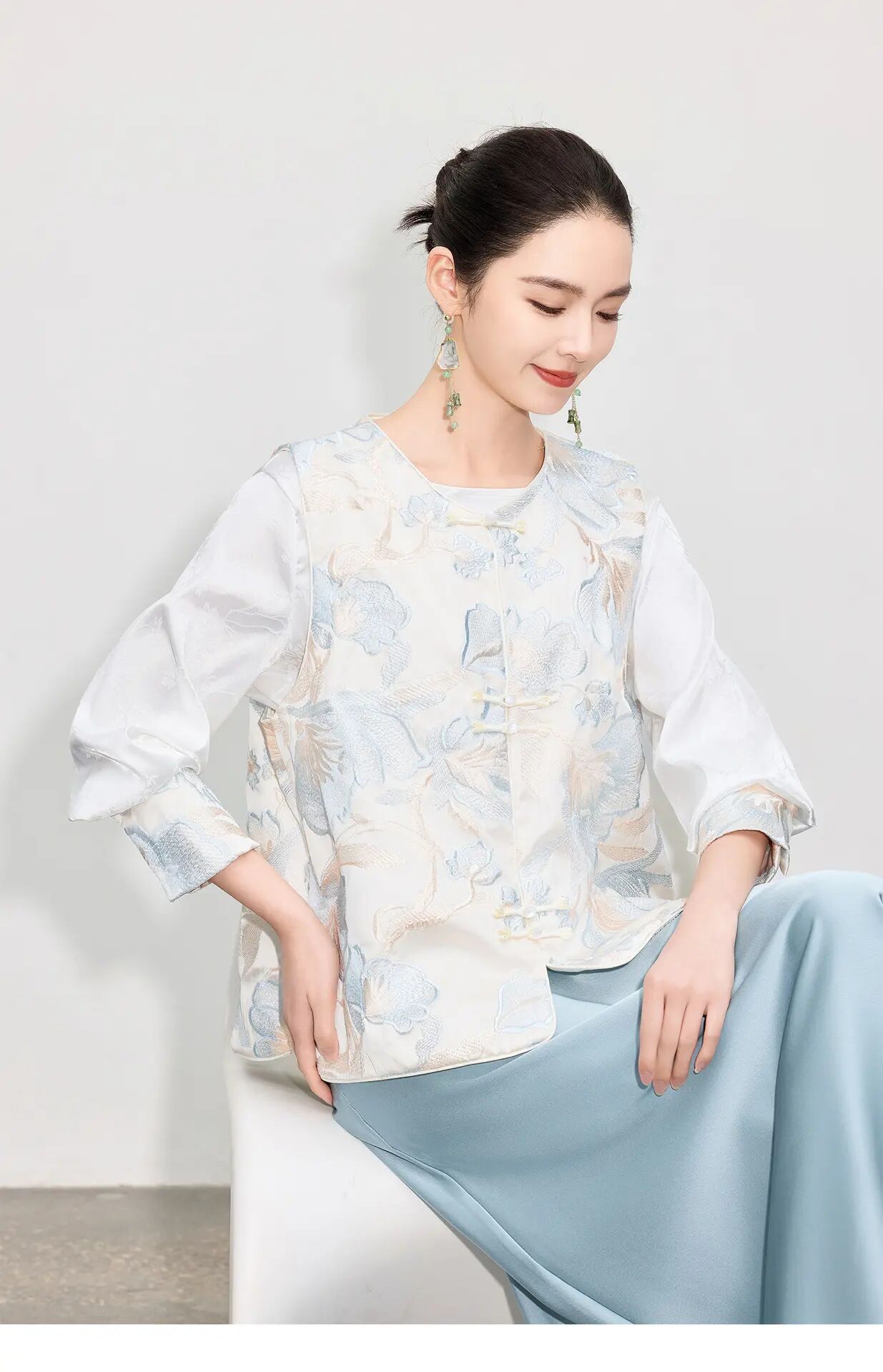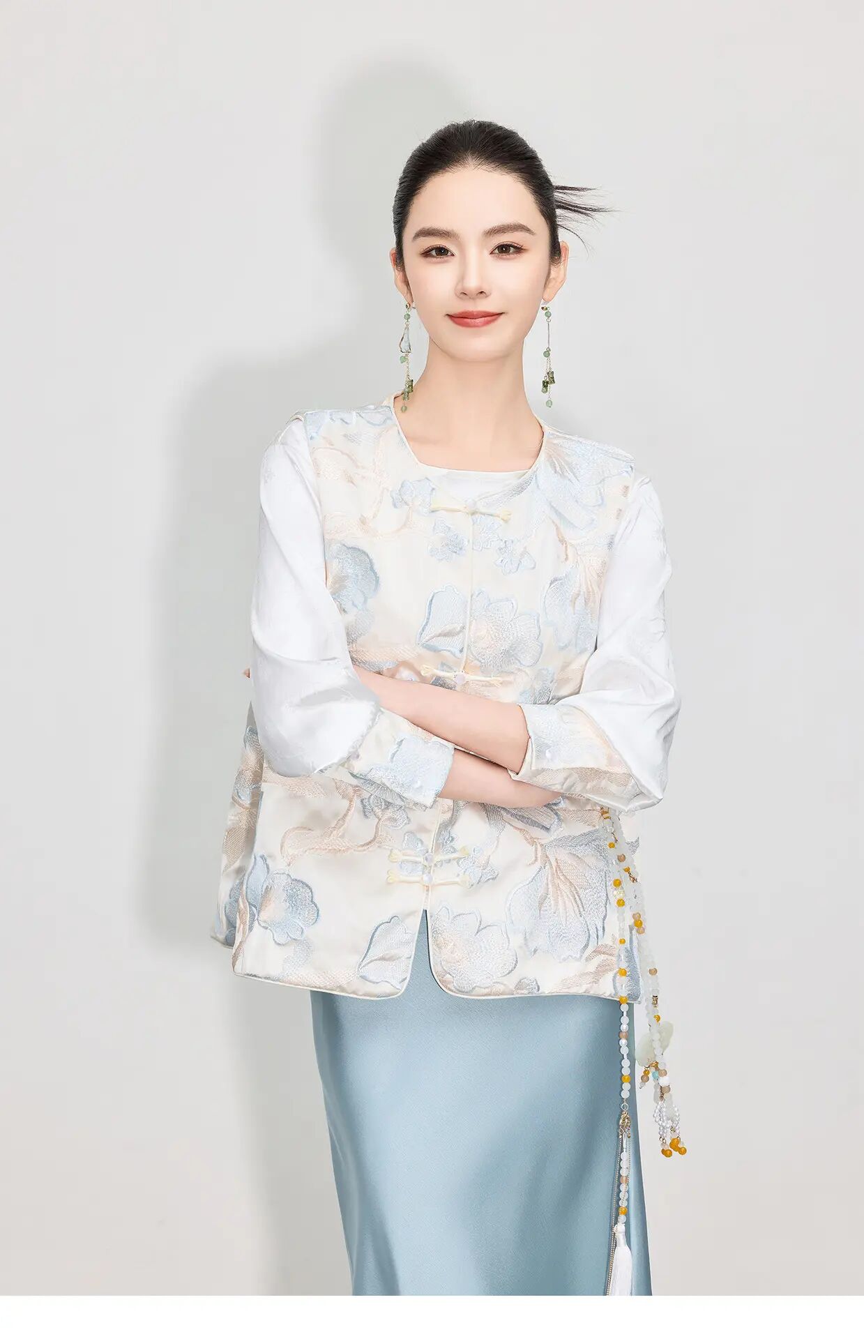 【自】全新升级【铂金会员257/天猫339/差价82】(84258) 洛诗琳2025春季新款复古新中式轻国风绣花设计感马甲上衣女