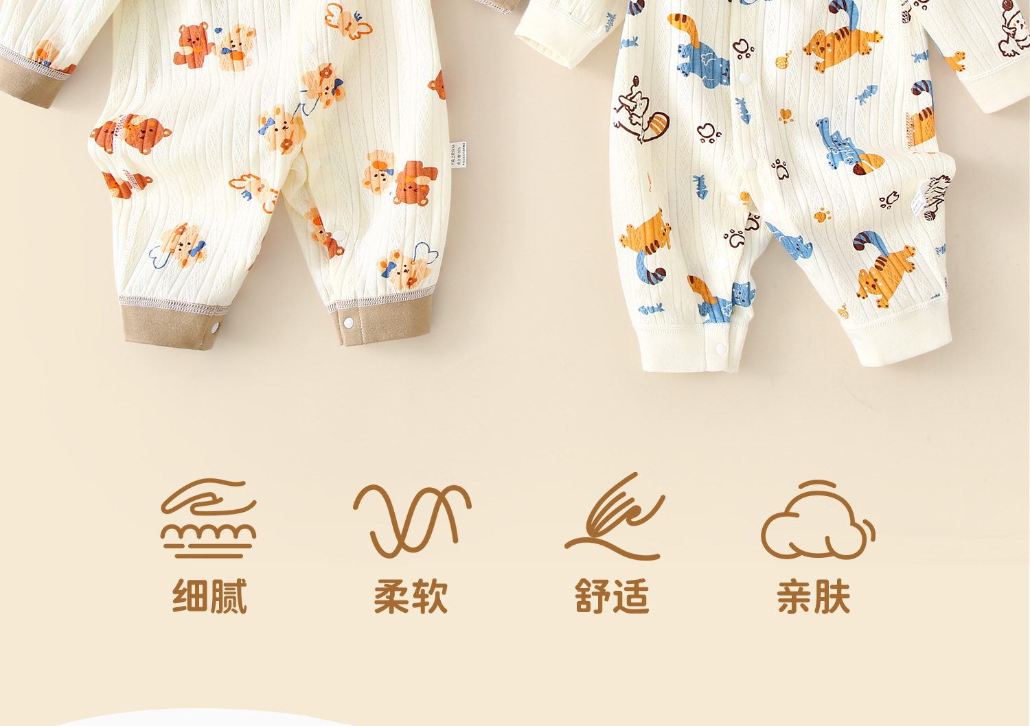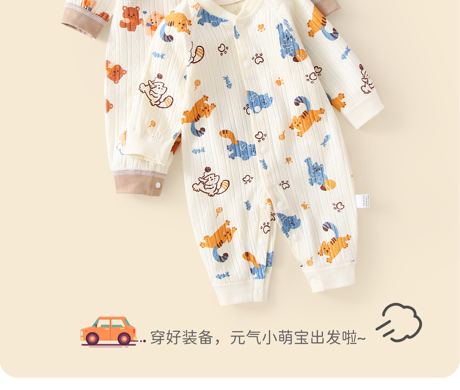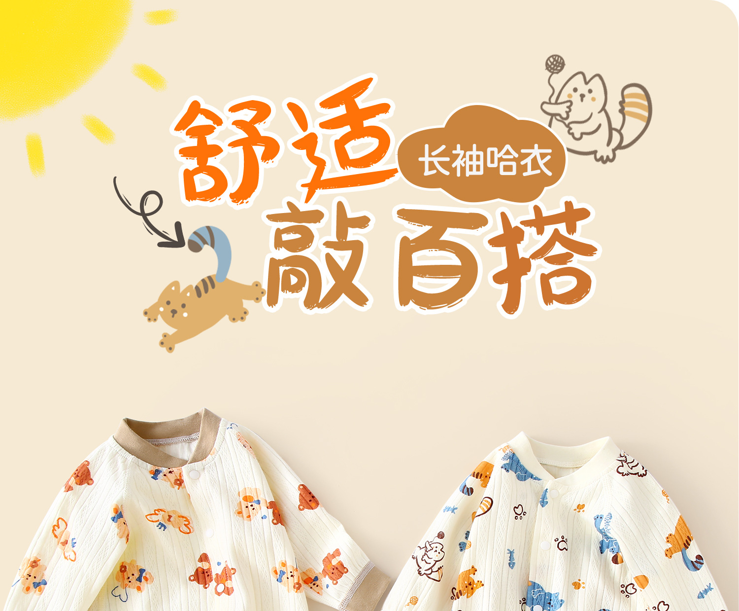 【舒适长袖哈衣,敲百搭~】春秋款宝宝秋季衣服 婴儿连体衣 满月新生幼儿秋装哈衣 外出睡衣-QQ