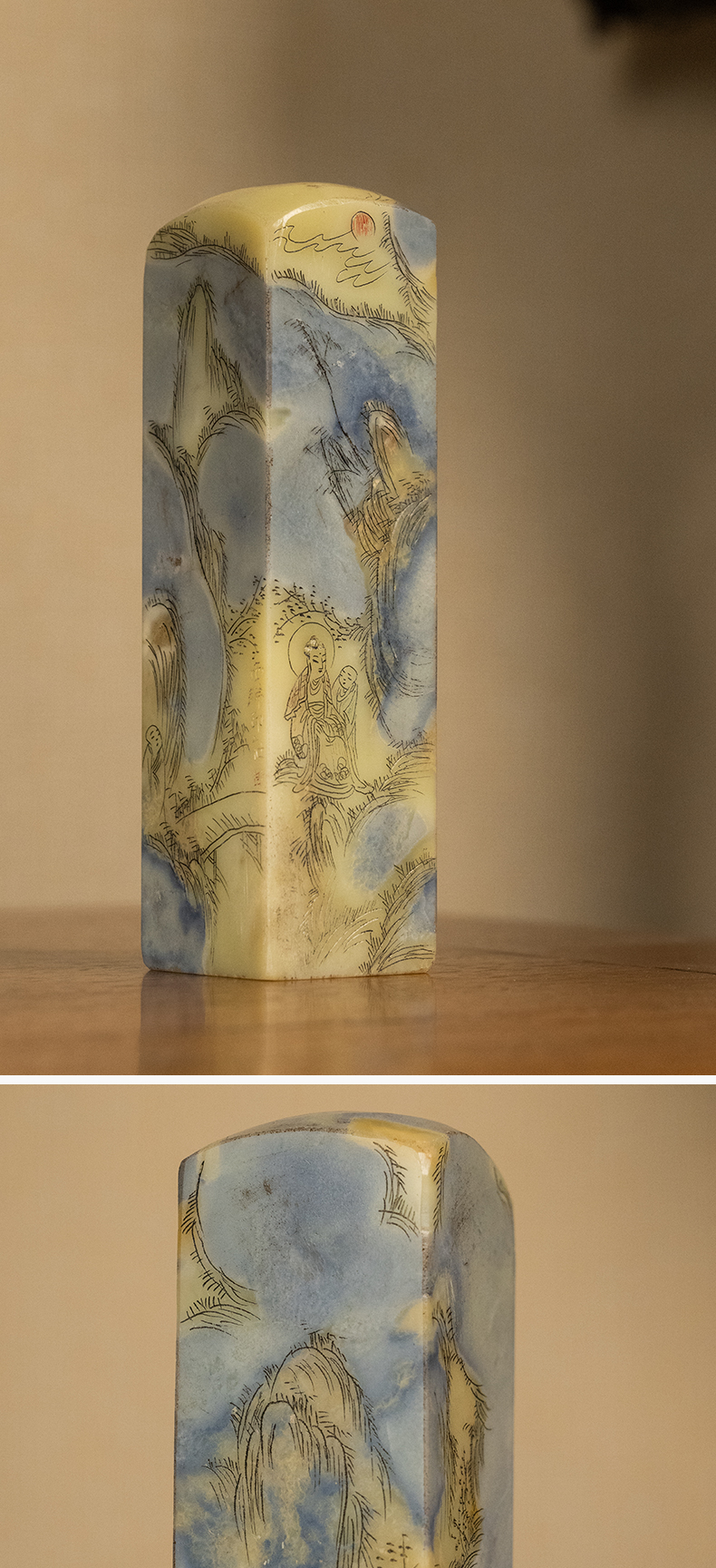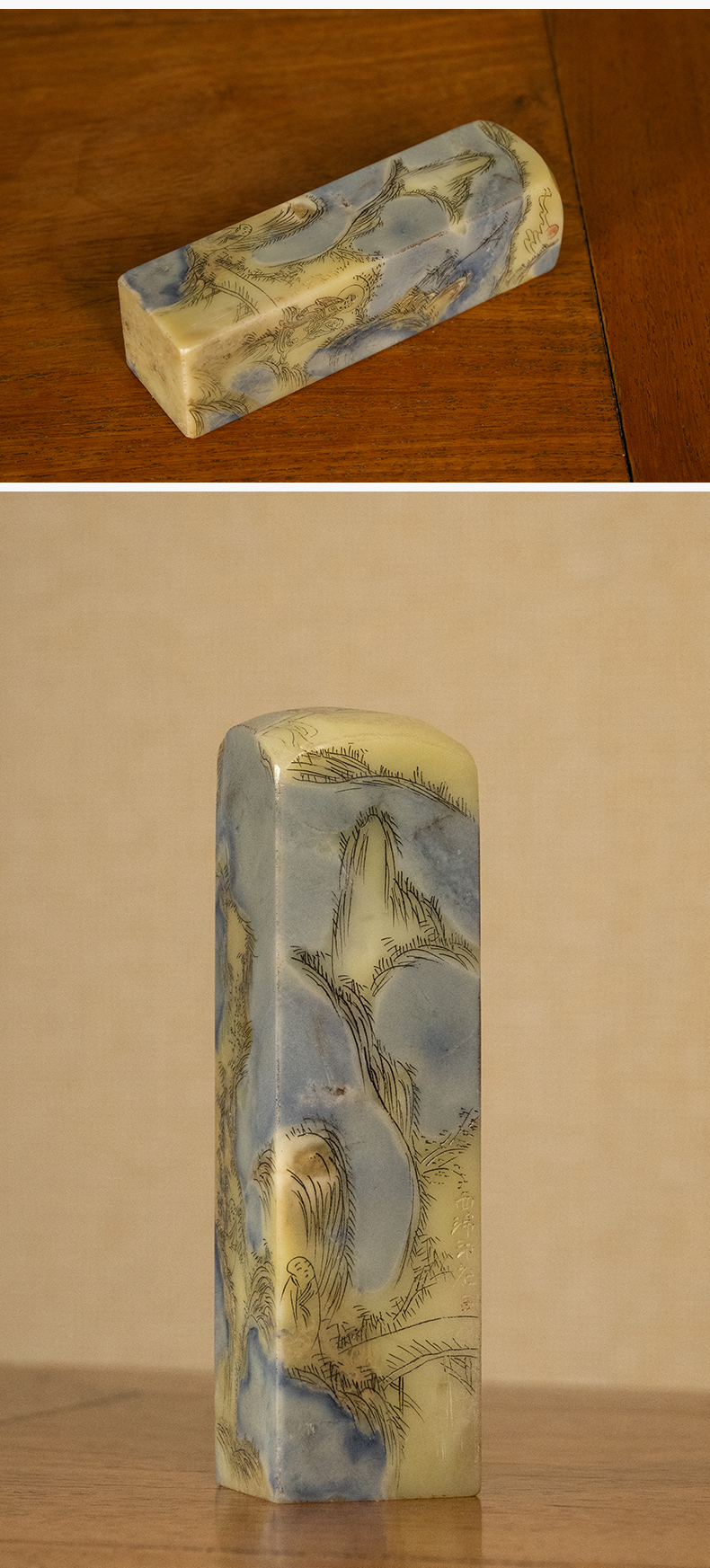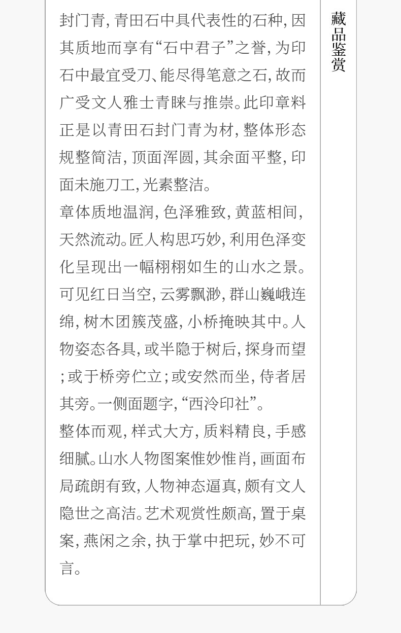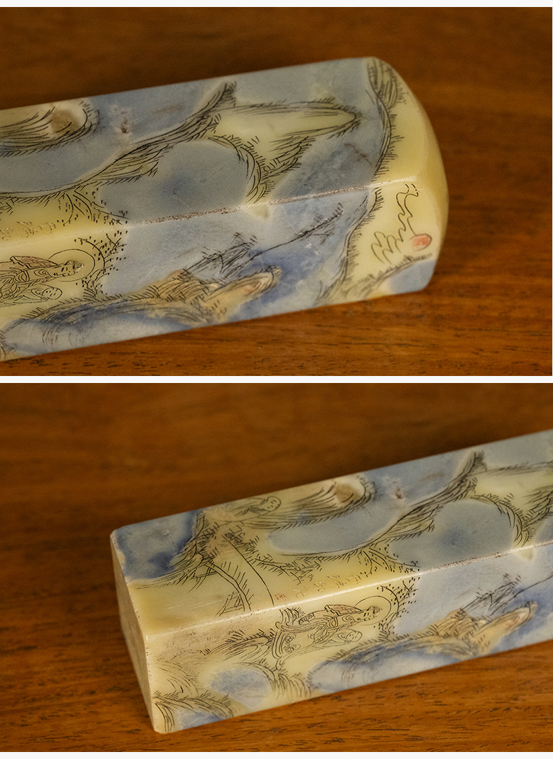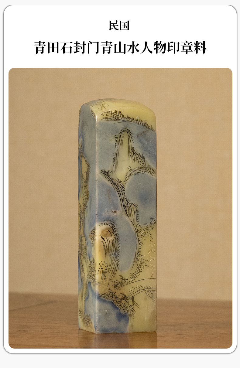 民国 青田石封门青山水人物印章料
