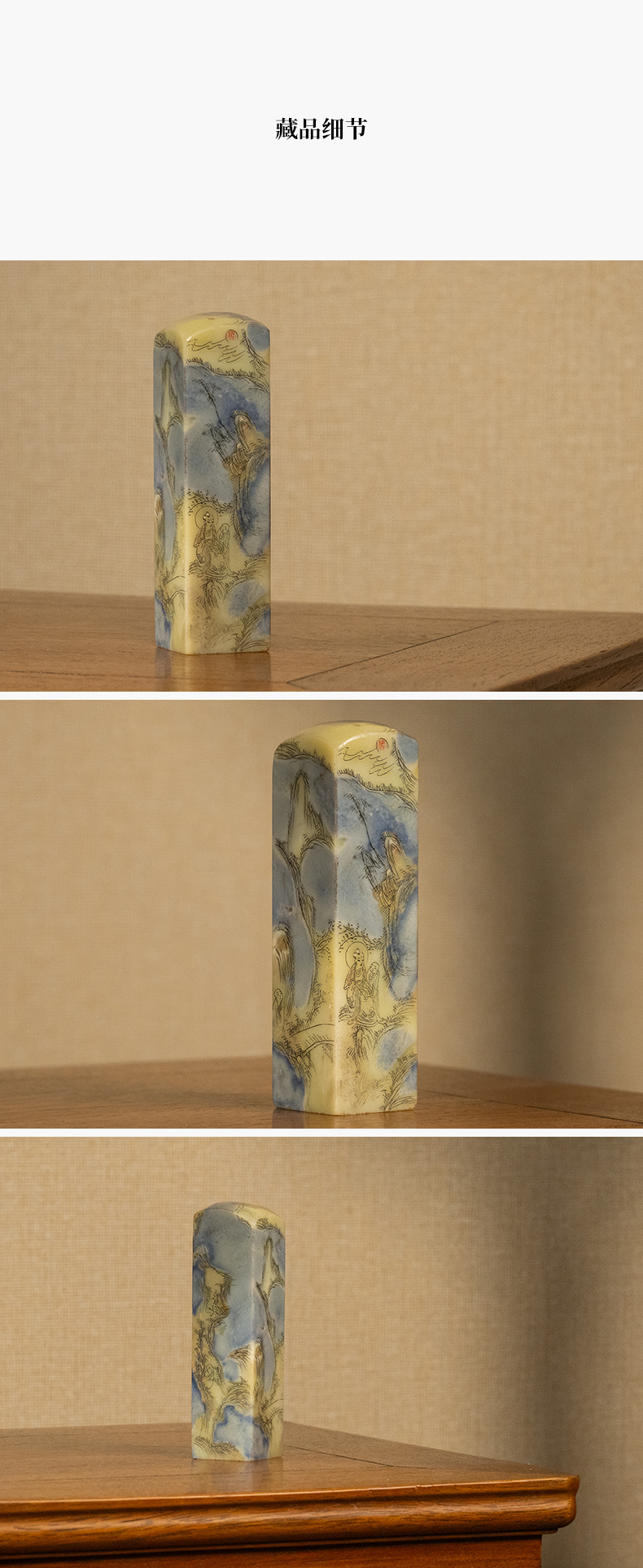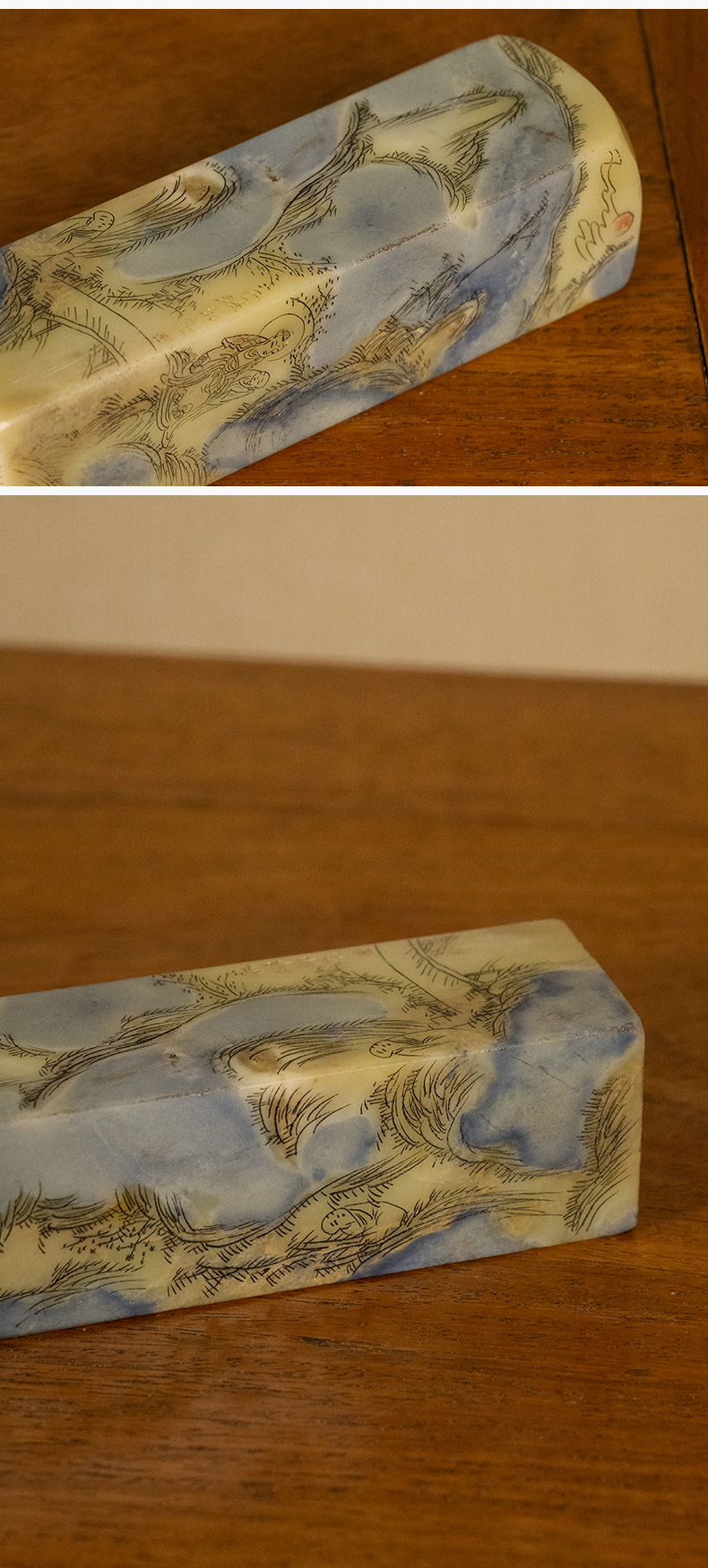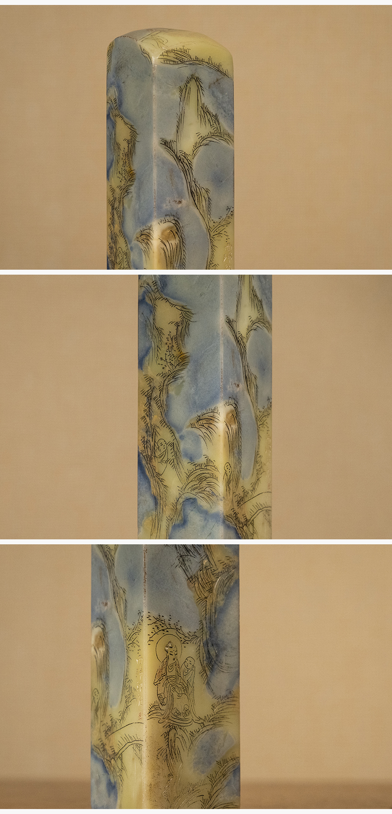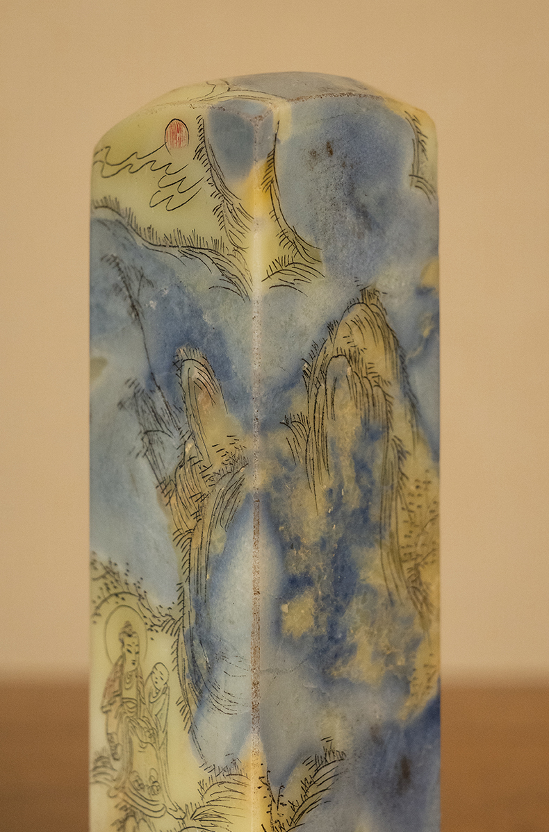 民国 青田石封门青山水人物印章料