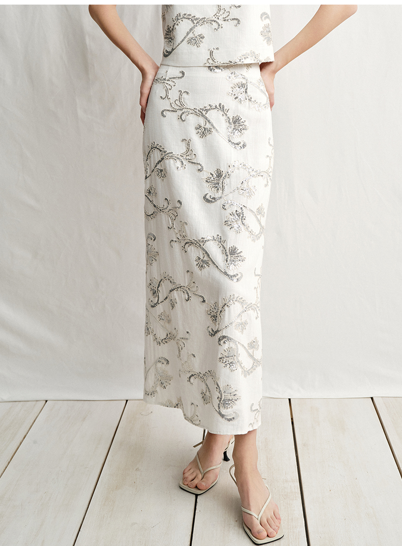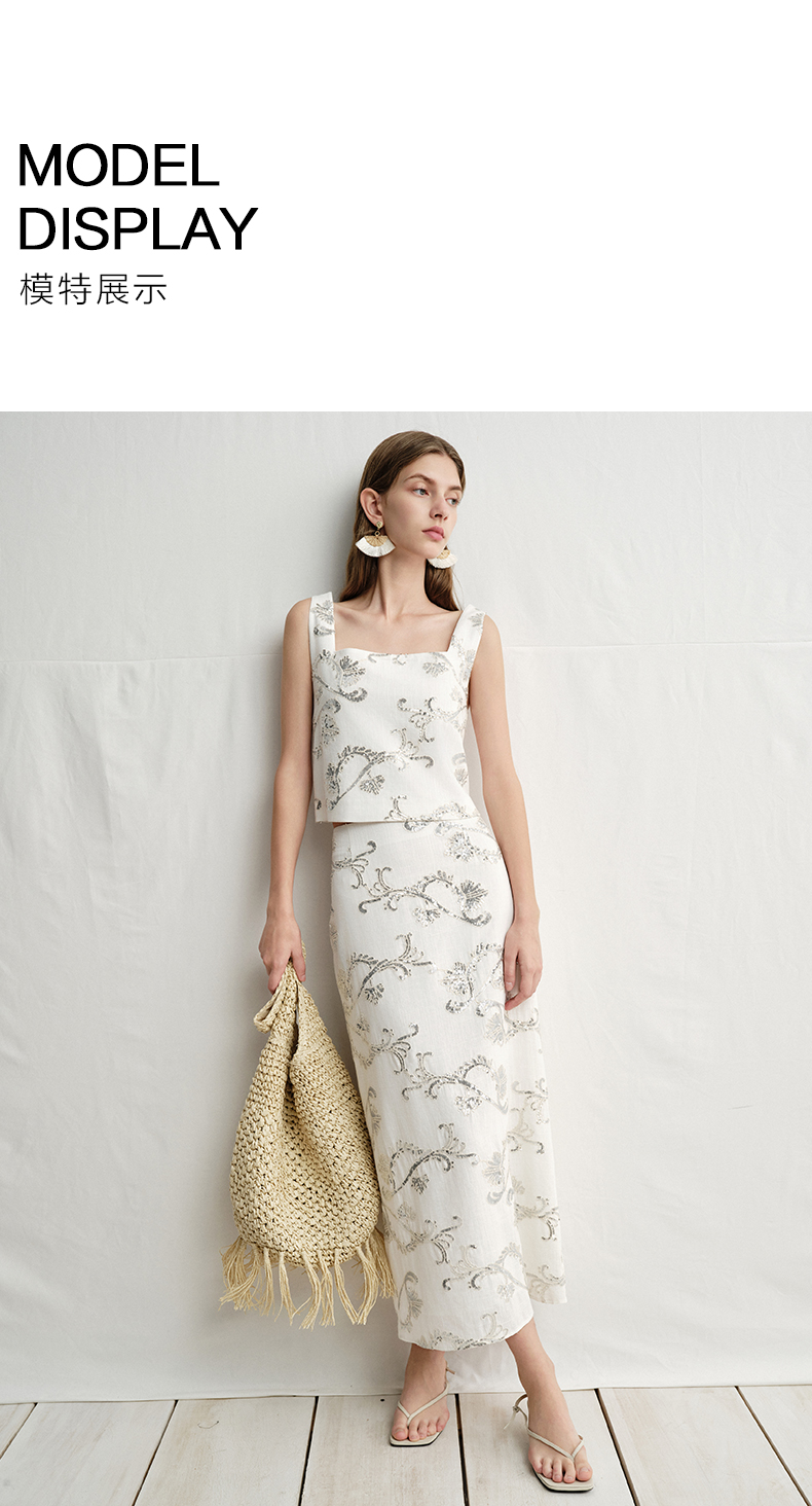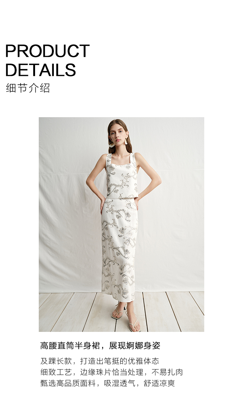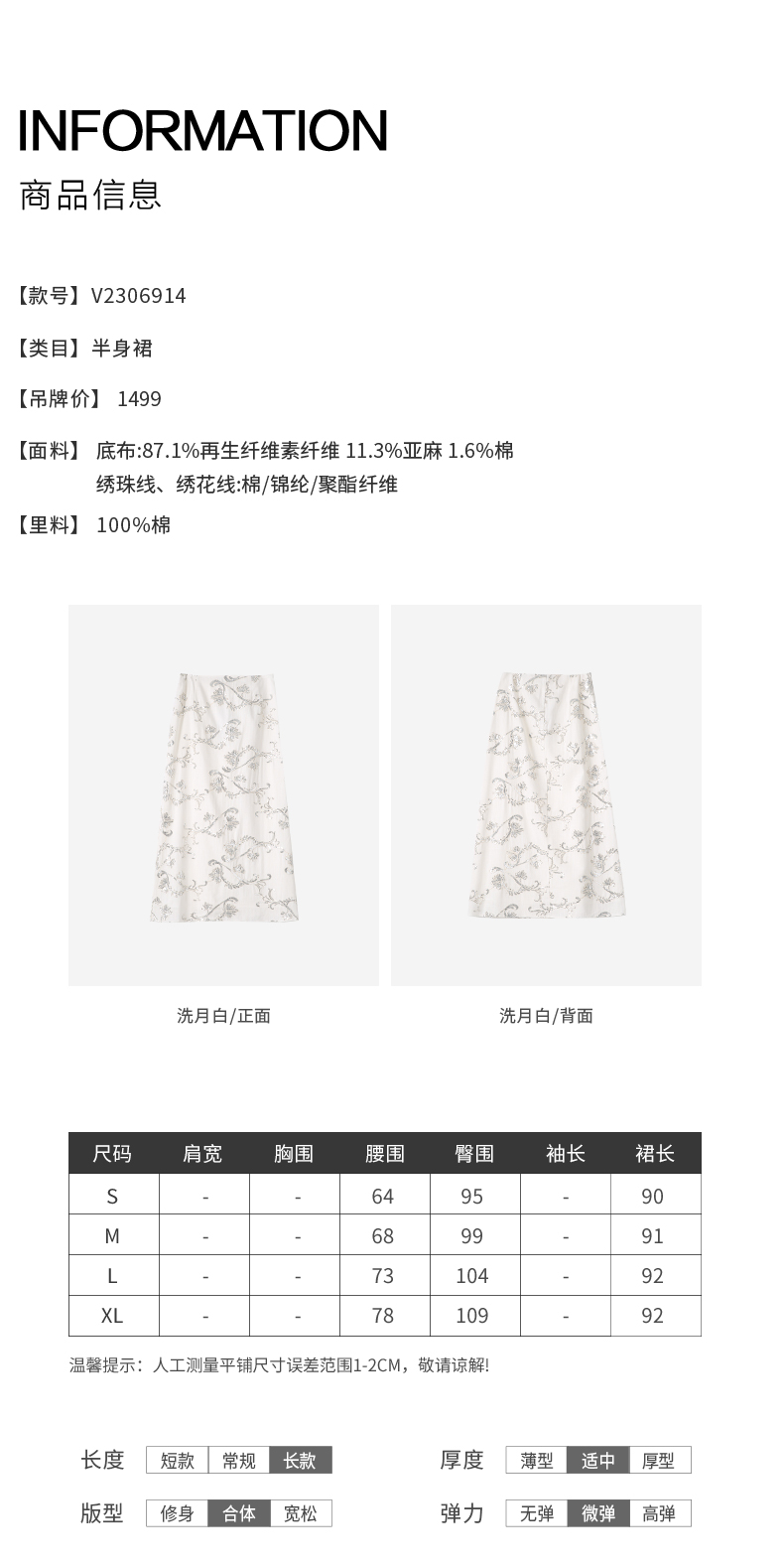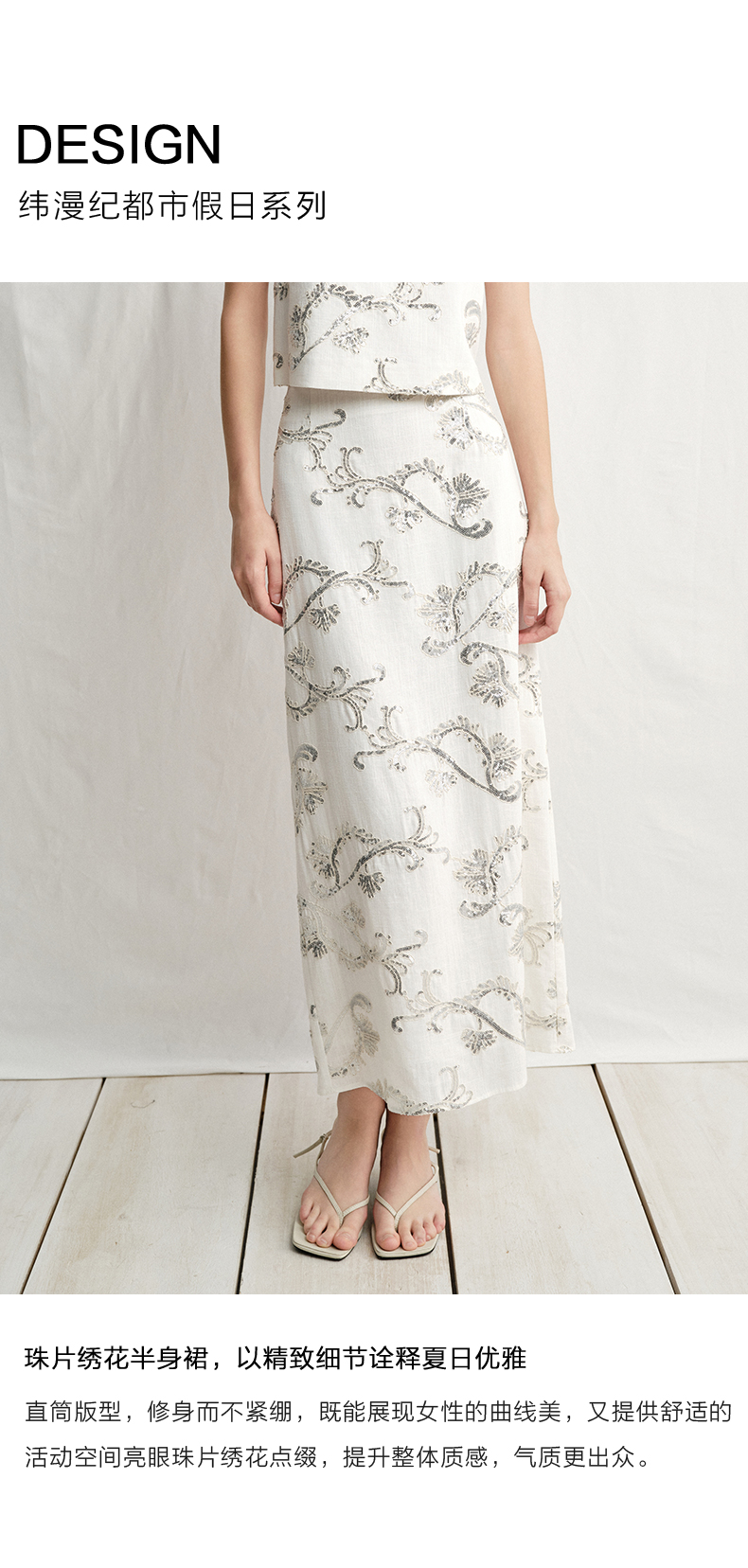 VIMAGE纬漫纪高腰显瘦百搭时髦刺绣半身裙2025夏季新款V2306914