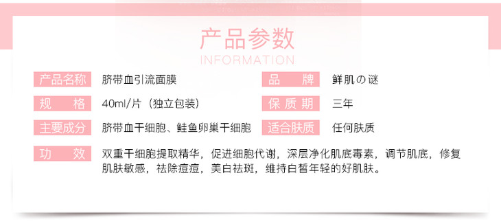 【正品直销】鮮肌の謎脐带血引流面膜40ml 单片装 提亮肤色 修复紧致 补水保湿!