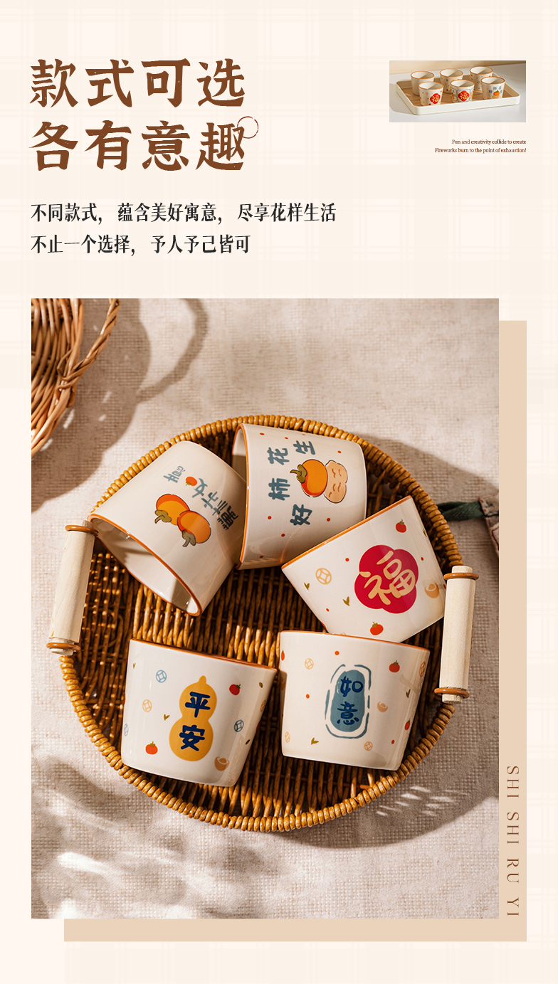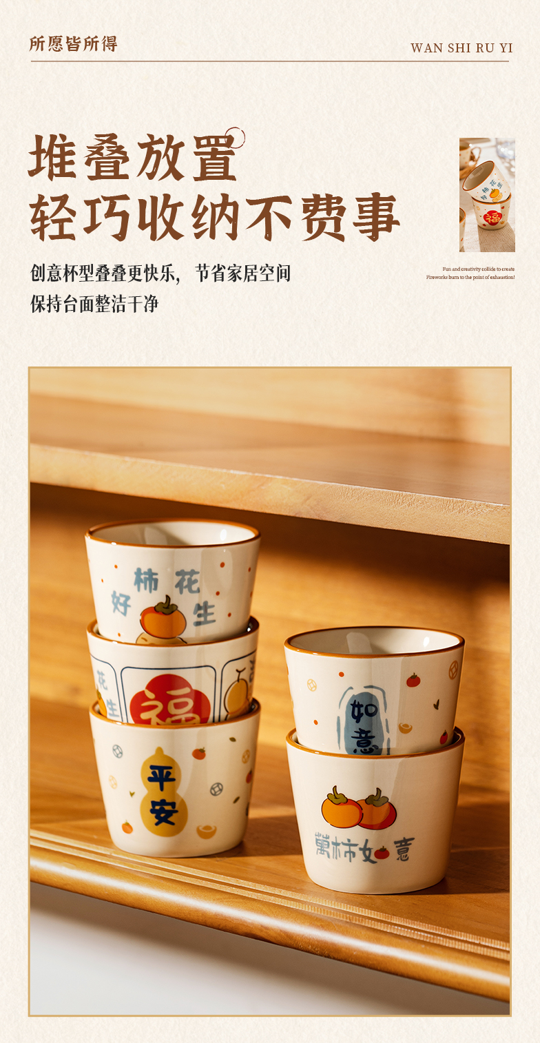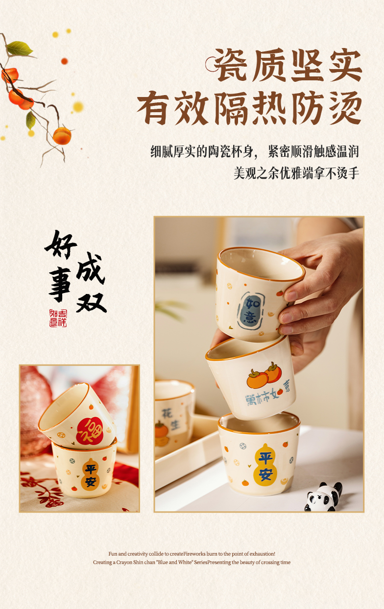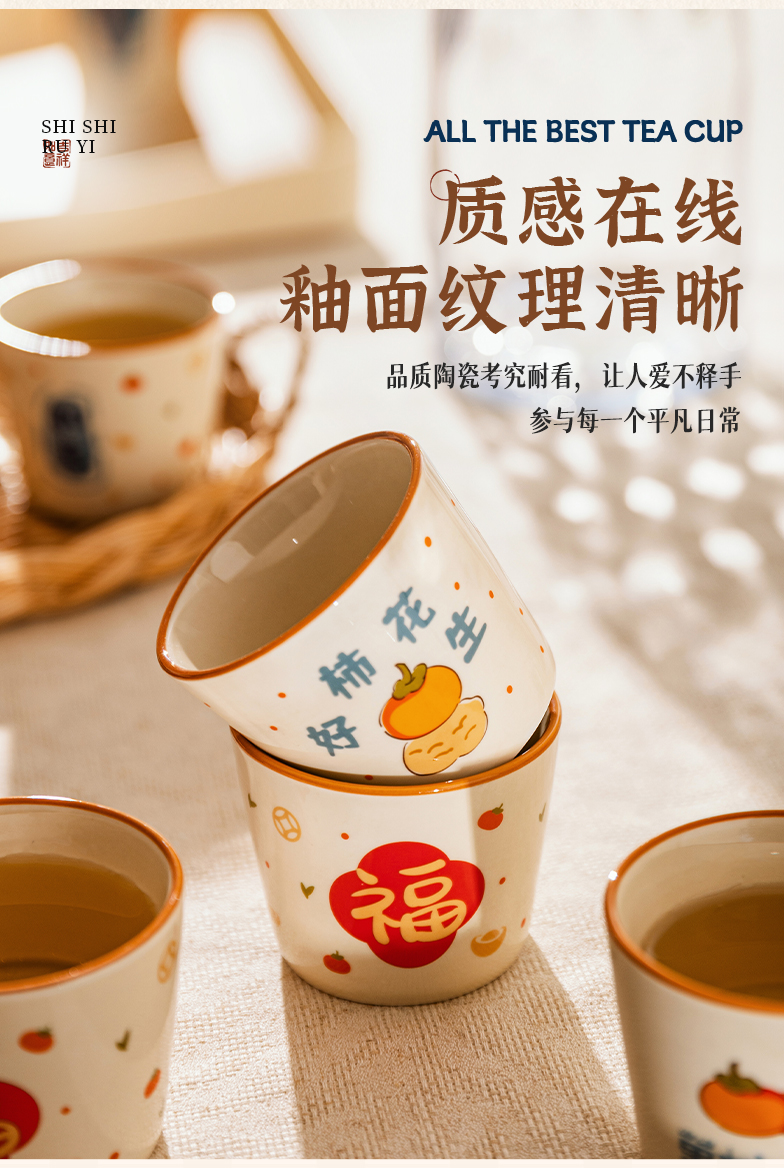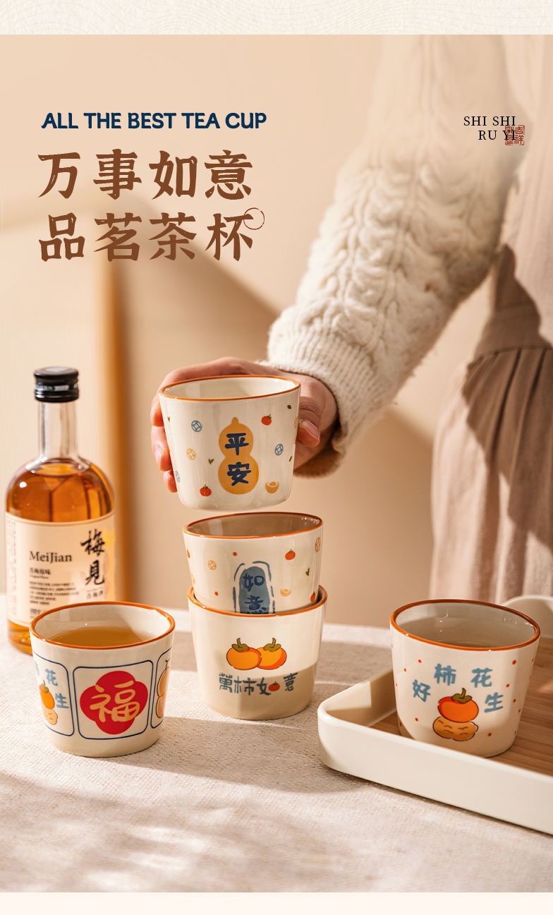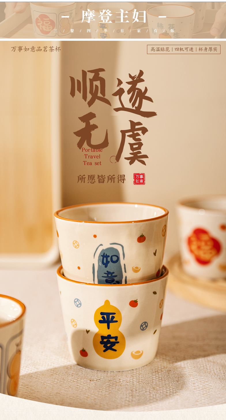 摩登主妇陶瓷小茶杯家用水杯主人杯茶具办公室杯子套装6只品茗杯