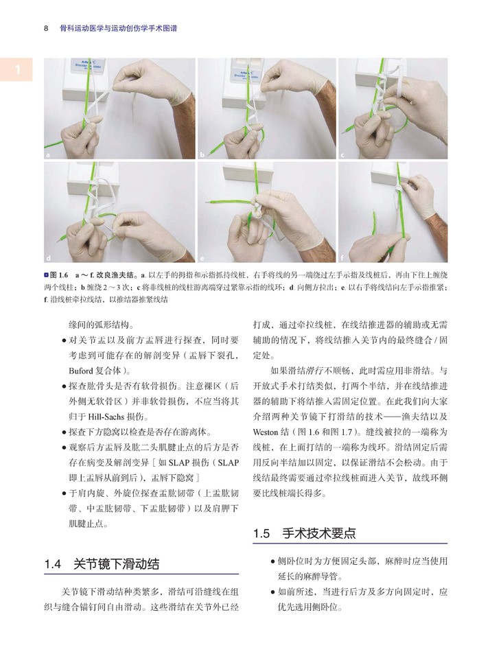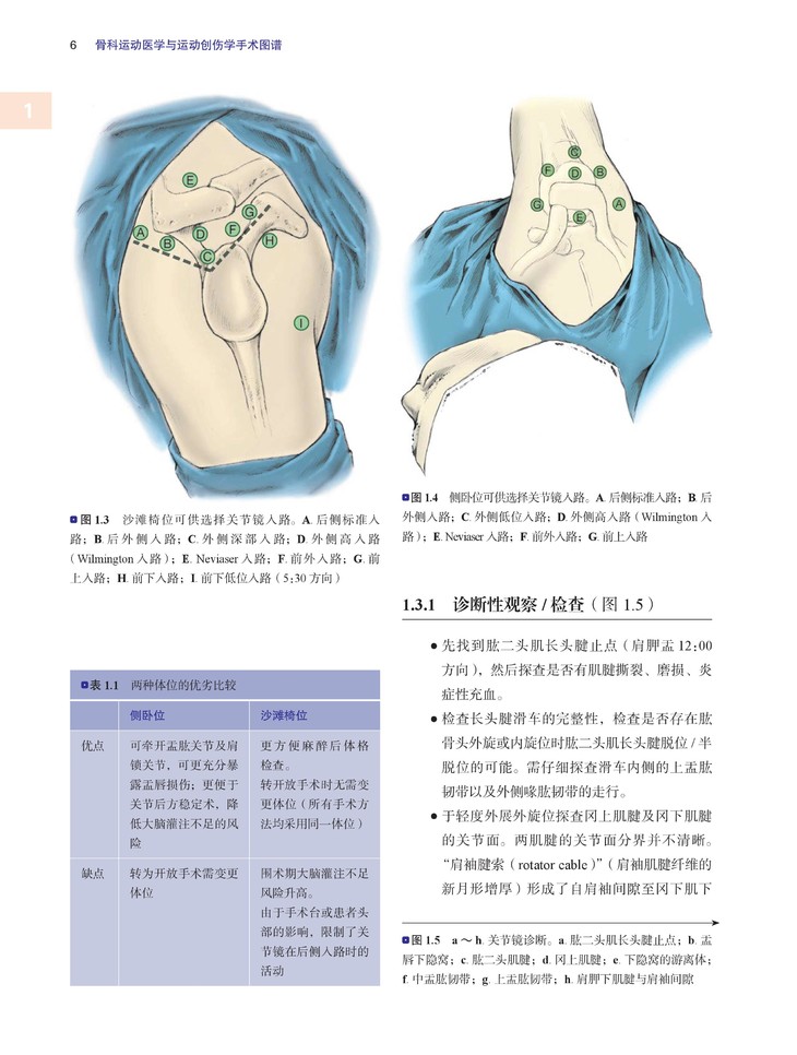 用关节镜图片、手绘图、X片、临床和手术照片等资料阐释了各个手术步骤。《骨科运动医学与运动创伤手术学图谱》对肩、肘、骨盆/髋、膝、踝/足进行分章节的描述。