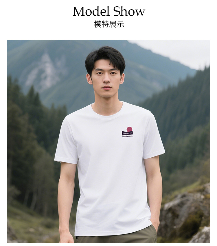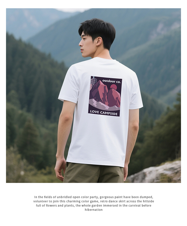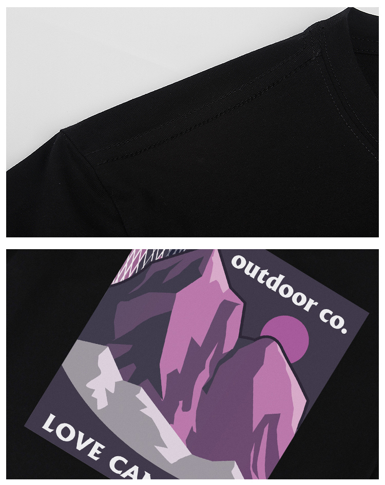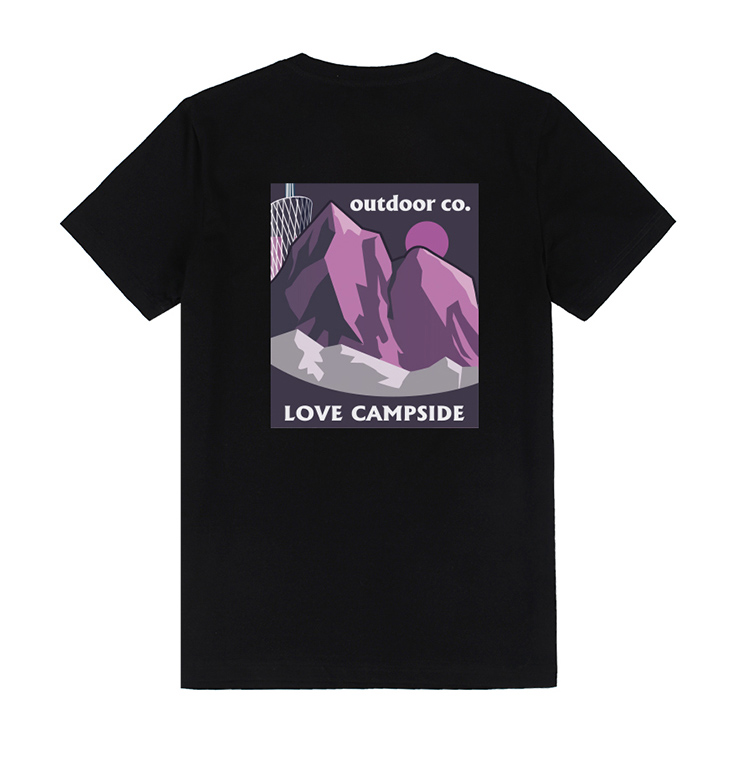 自由基地夏季新品山峰广州塔创意露营风印花图案合体版型短袖t恤 NMT-2226