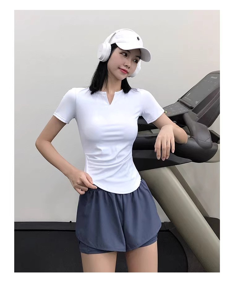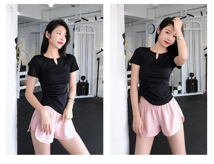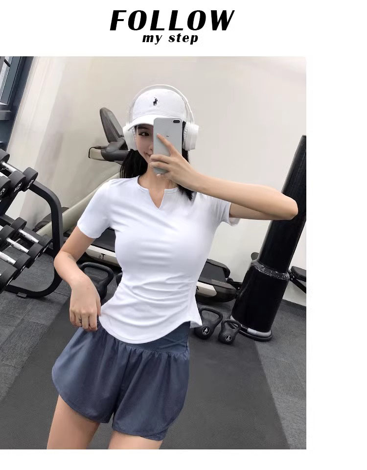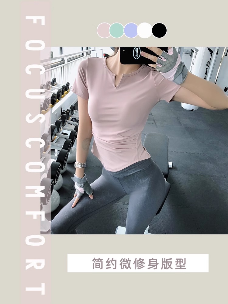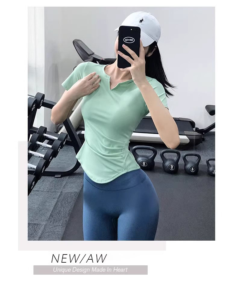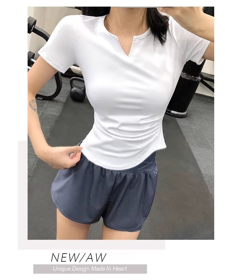 跃牌【美西西系列】紧身运动上衣女短袖短款性感修身健身服网红速干衣瑜伽T恤DX-226
