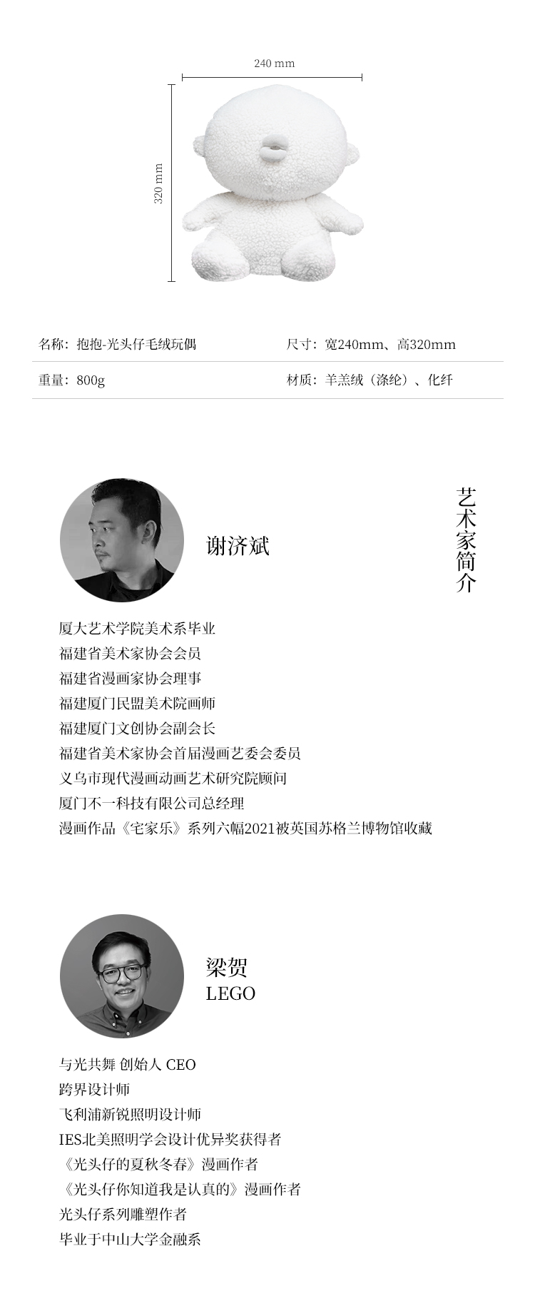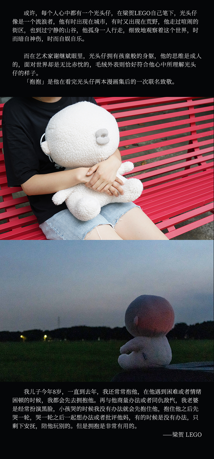 与光共舞 光头仔「抱抱」毛绒玩偶