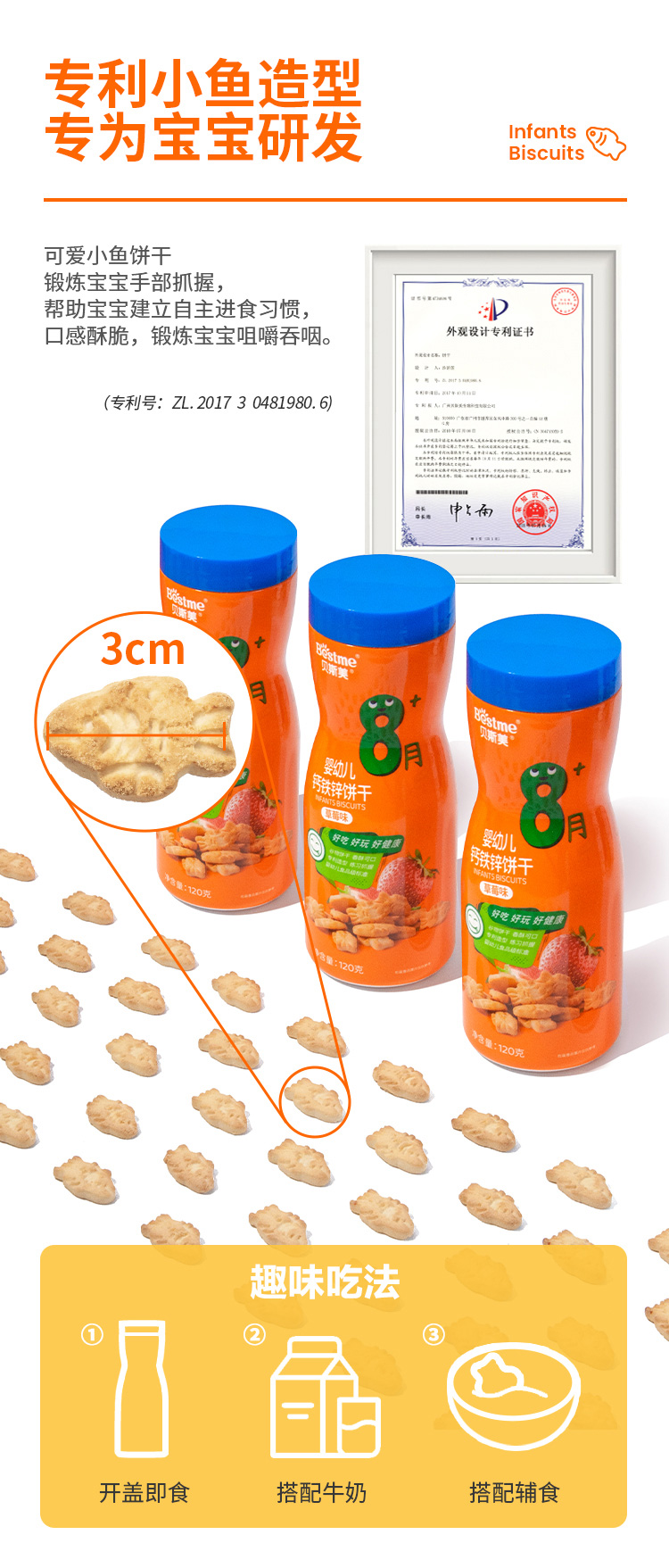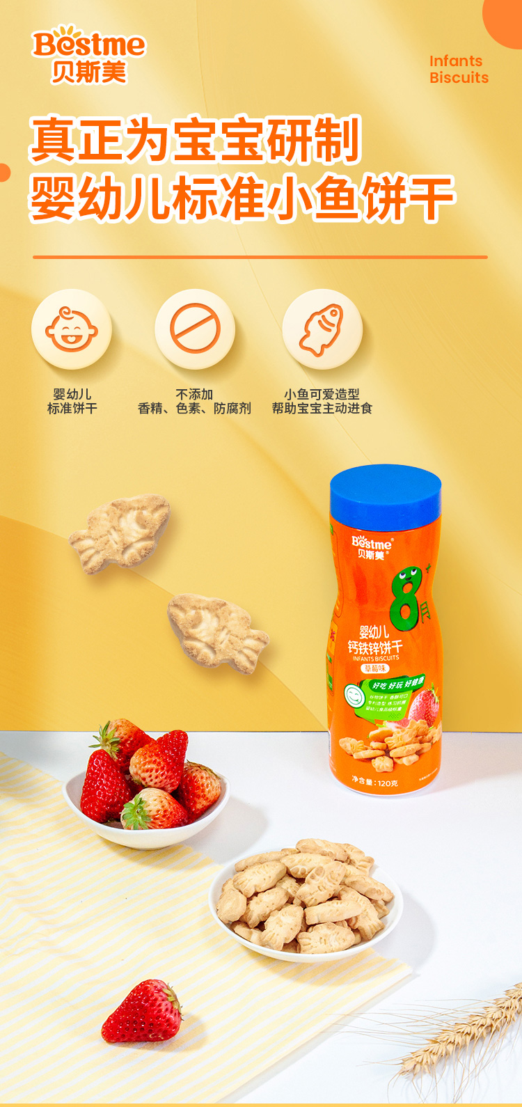 贝斯美婴幼儿钙铁锌饼干120g(草莓味)