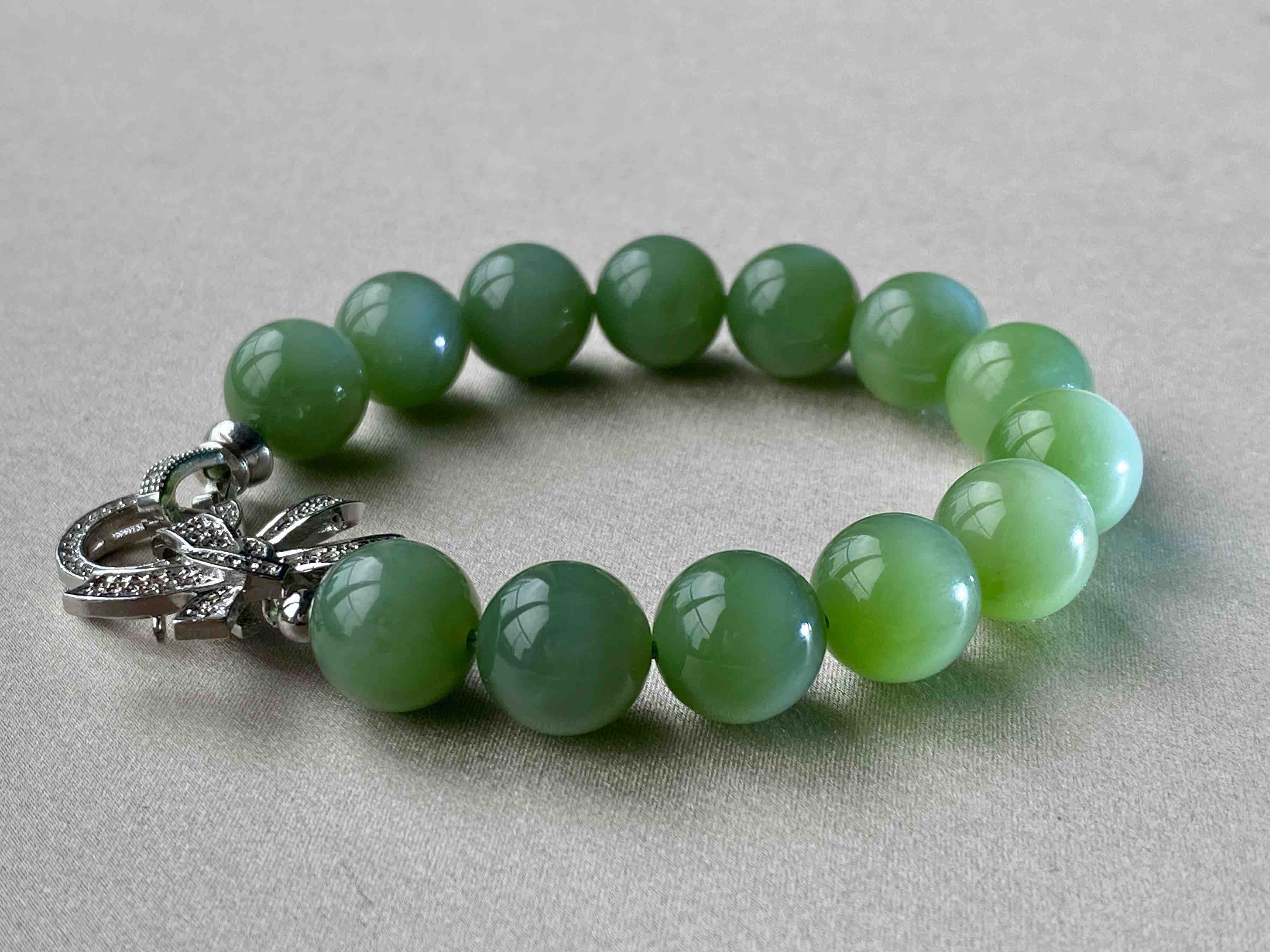 主石:12mm圆珠/粉绿/无裂无黑点