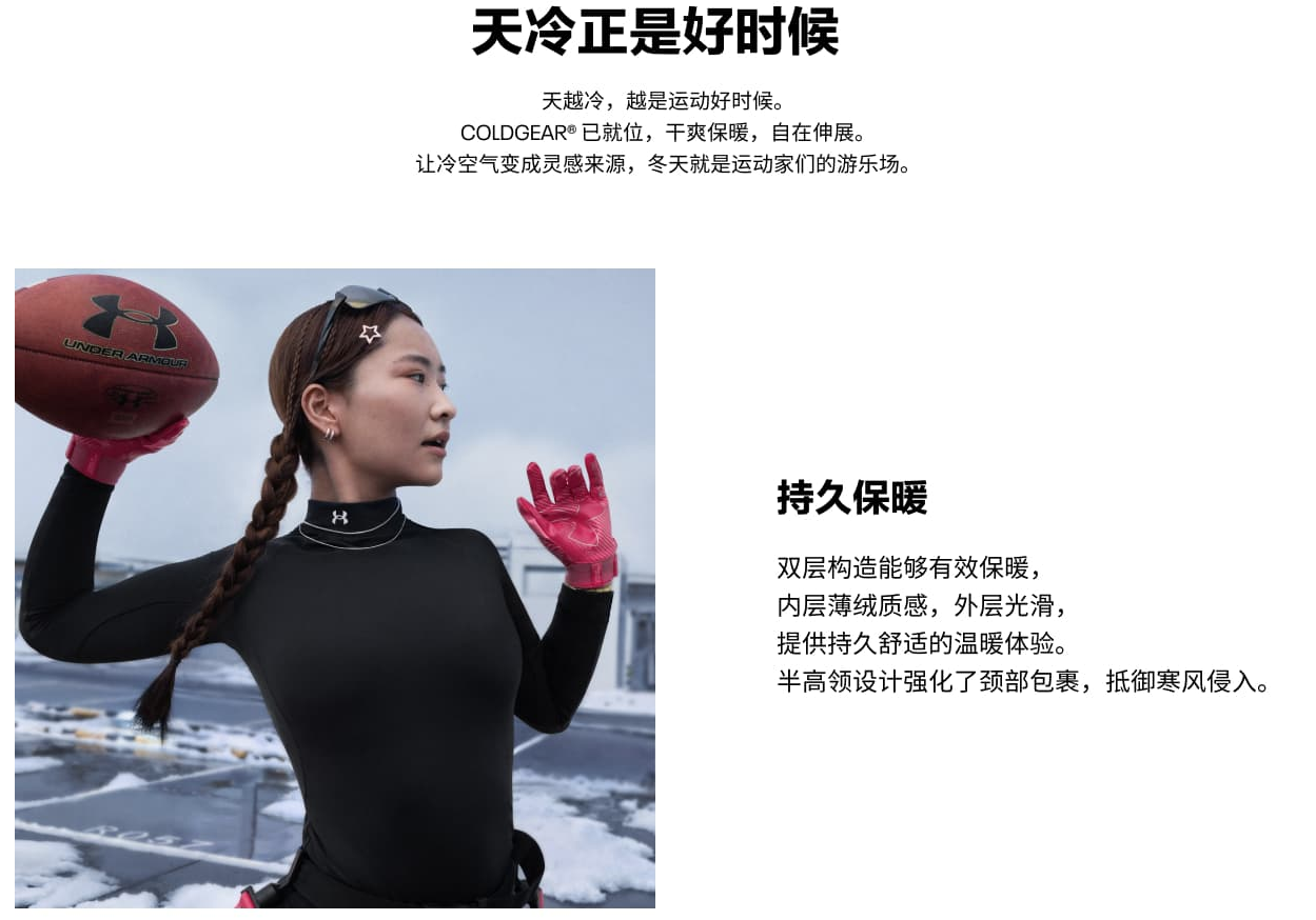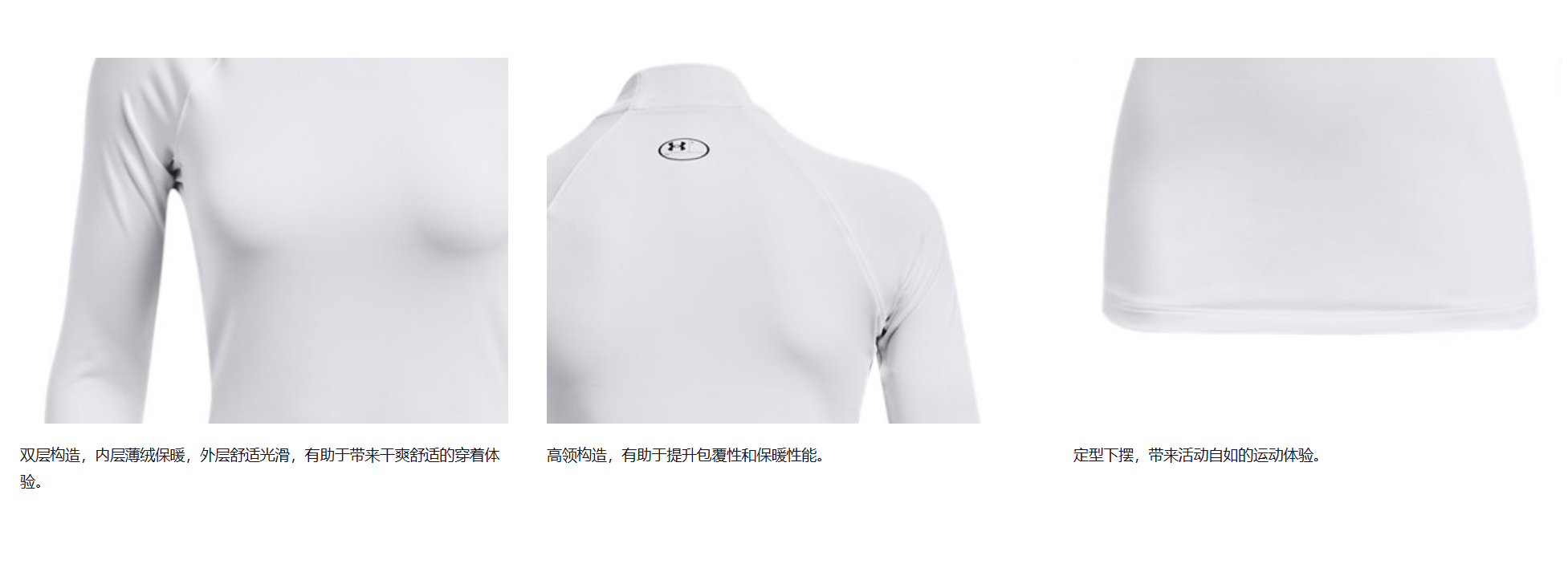 【Coldgear冬训紧身衣】安德玛女子UA Authentics高领运动上衣1368702-100