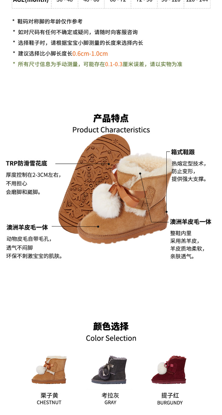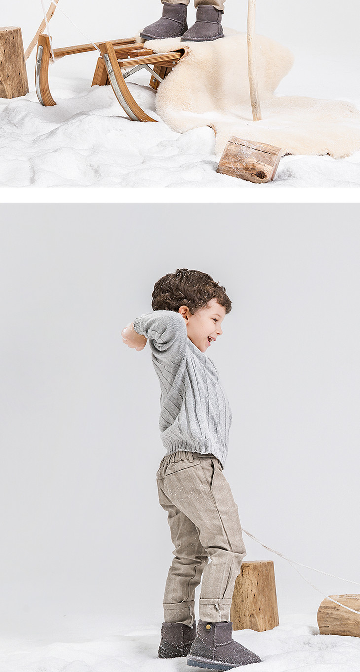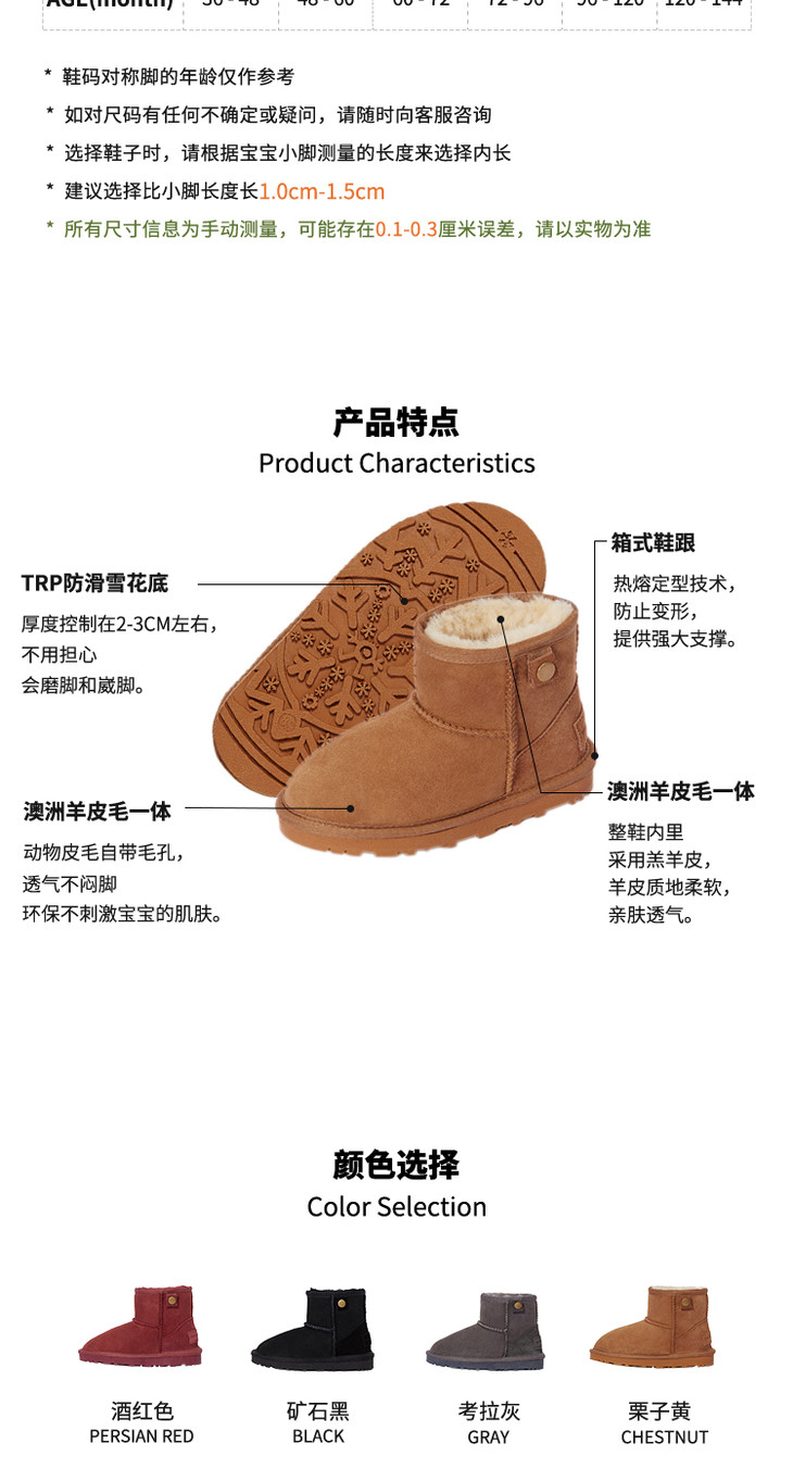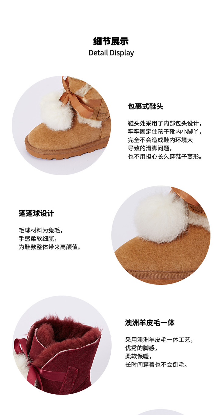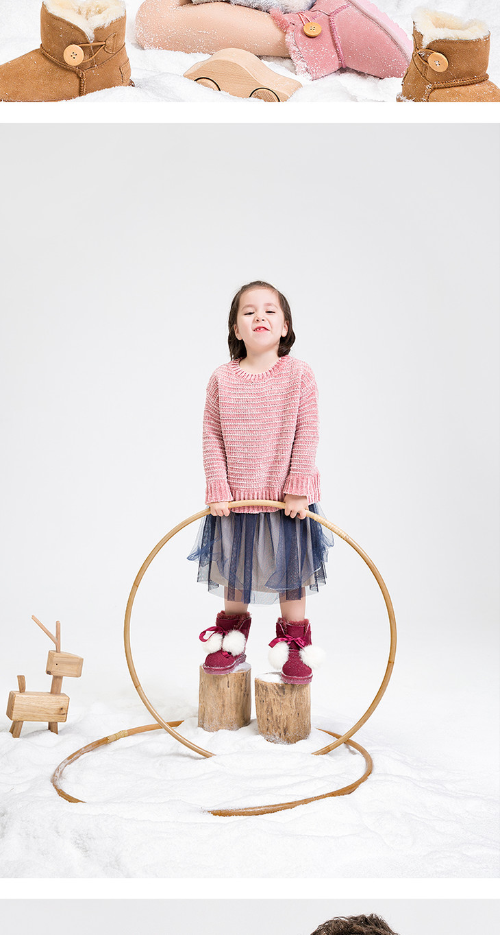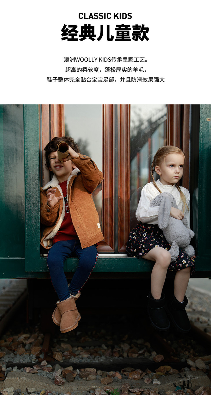 现货 澳洲woollykids小羊沃利儿童雪地靴男童女童鞋冬保暖毛球经典木扣真皮短靴