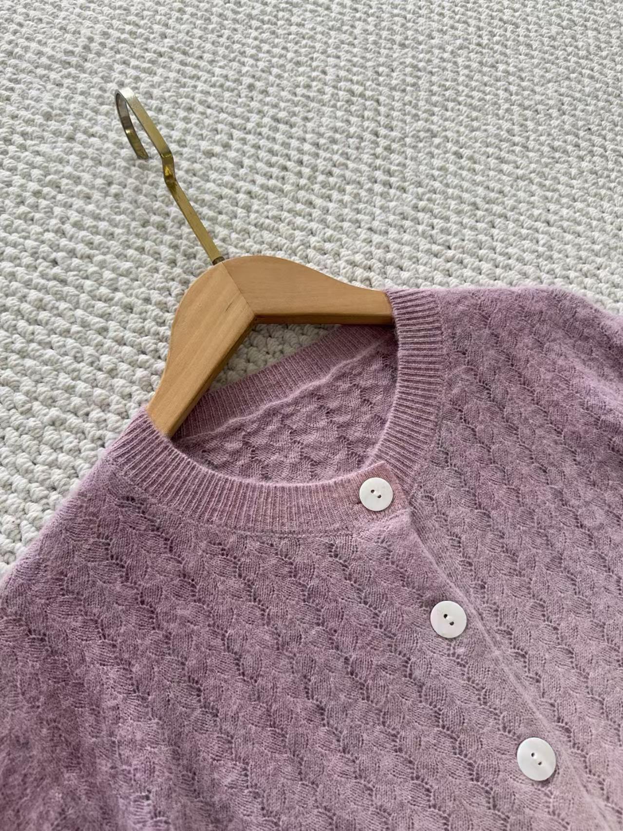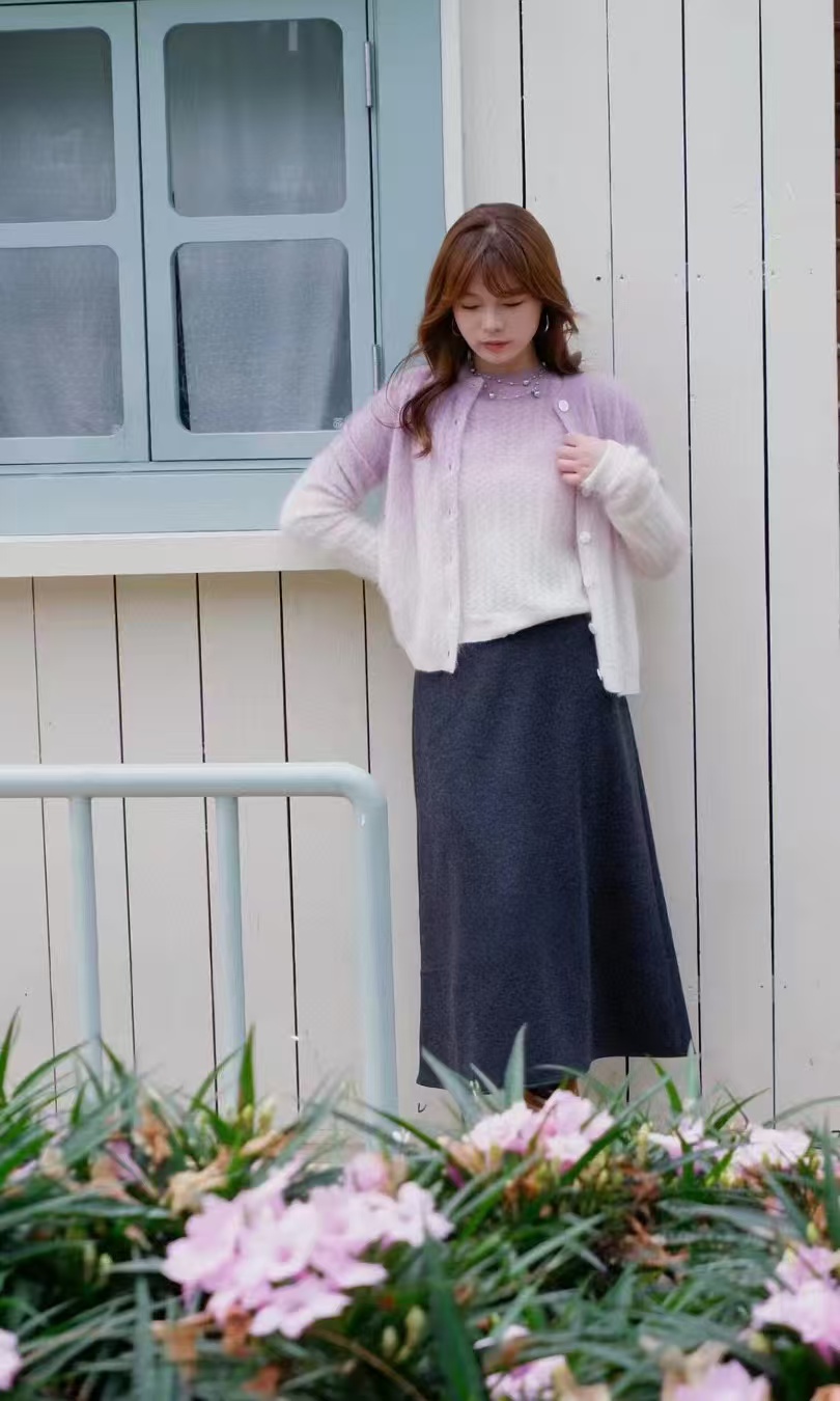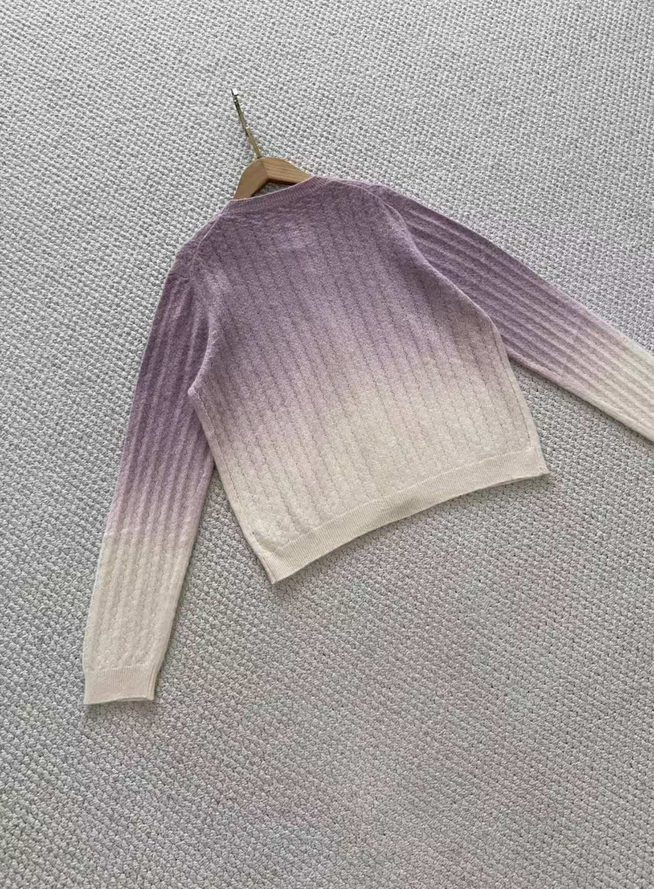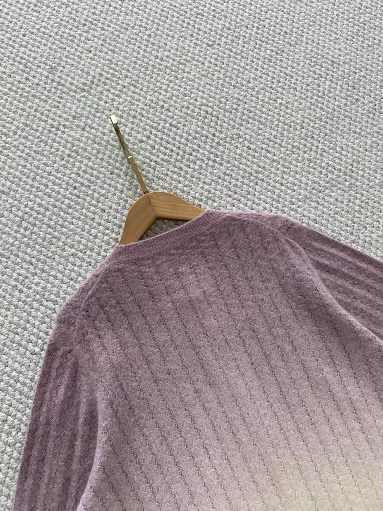 ba*紫色羊毛针织开衫,这款渐变马海毛开衫 是秋日穿搭的氛围作弊器,从淡紫到米白的晕染过渡 像把莫奈的调色盘穿在身上 自带柔光滤镜,细腻马海毛触感软乎乎 贴身穿也无’负担,圆领单排扣设计 风格百搭 可单穿可叠搭。