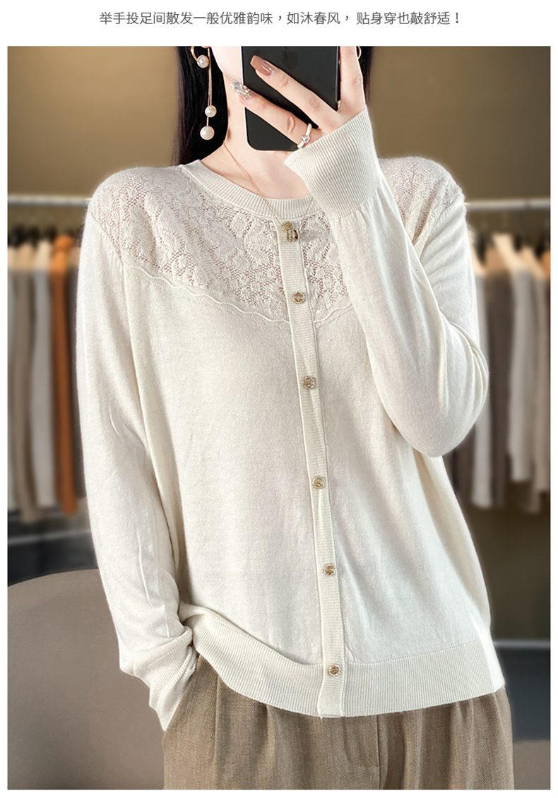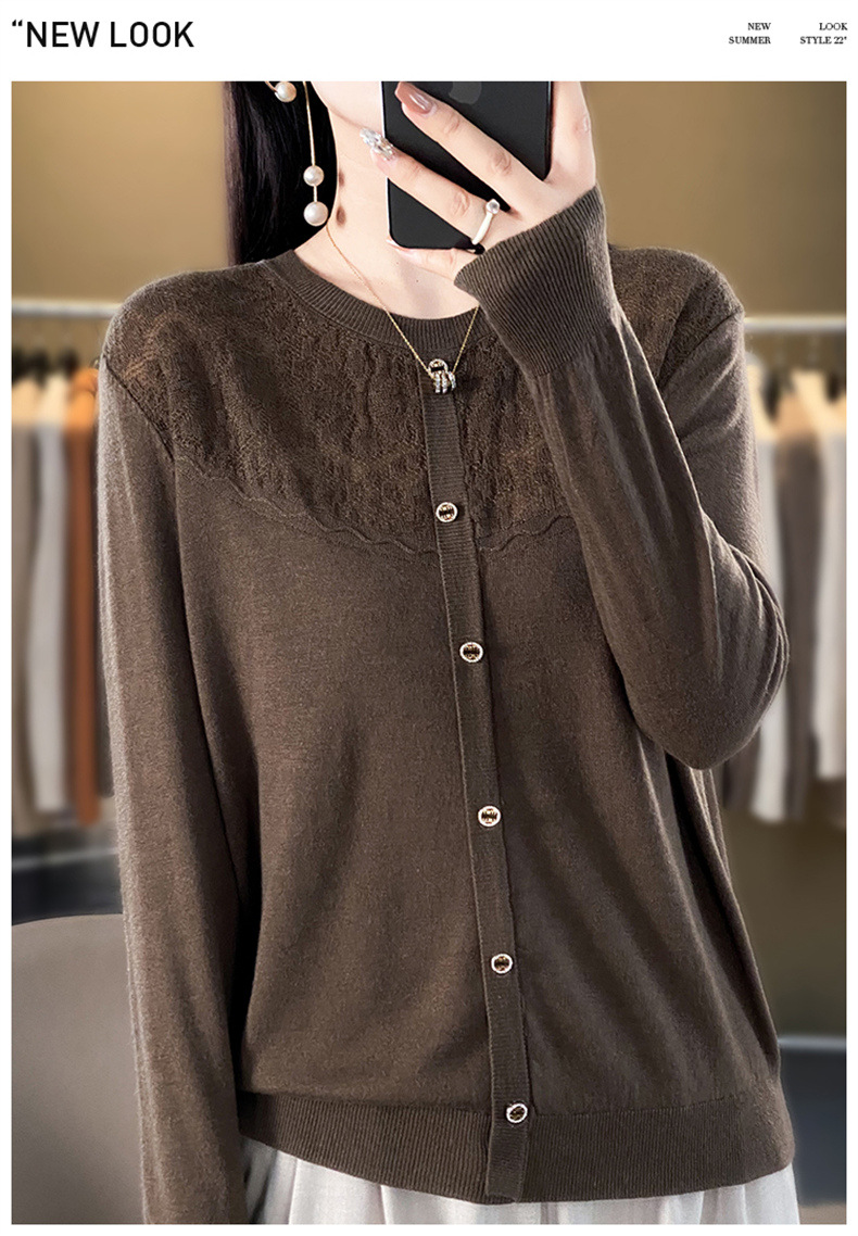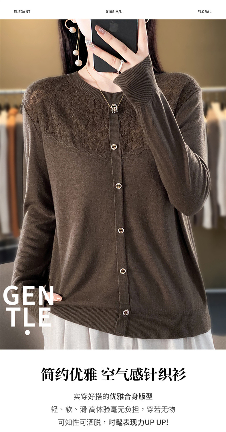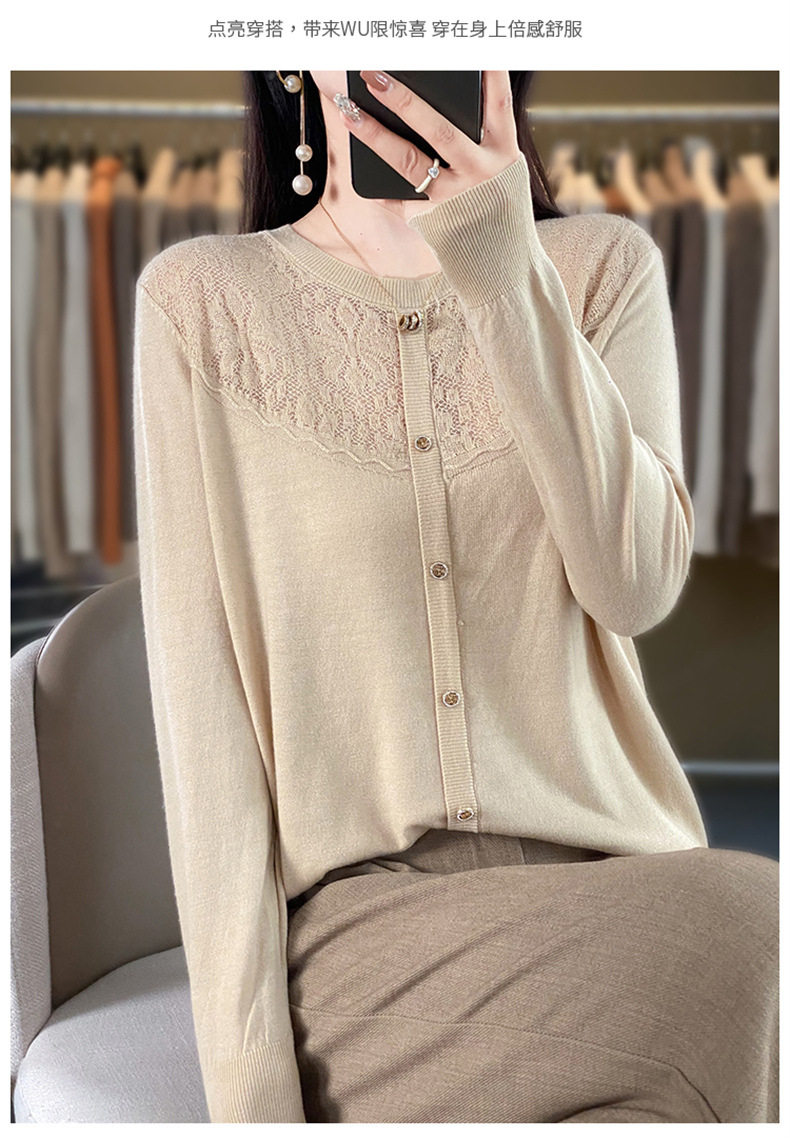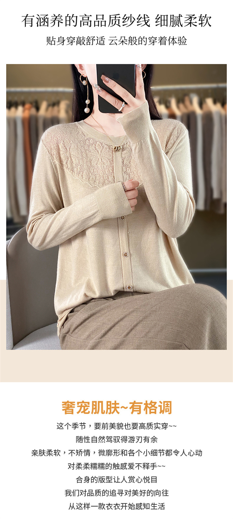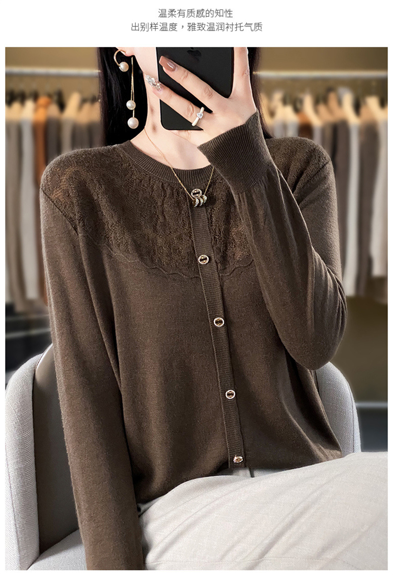 QHJY-JY906秋冬新款精纺圆领开衫女装羊毛针织毛衣外套复古绞花保暖上衣