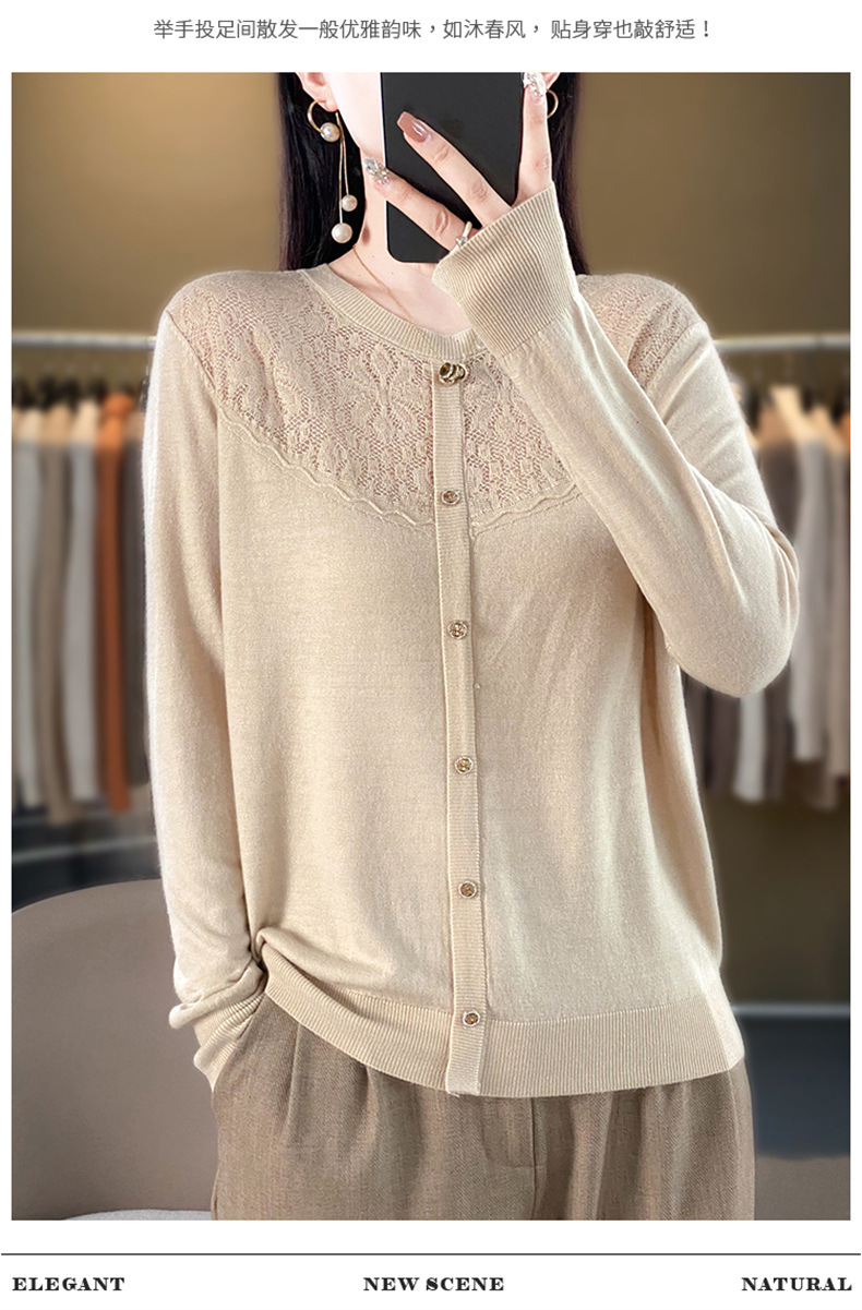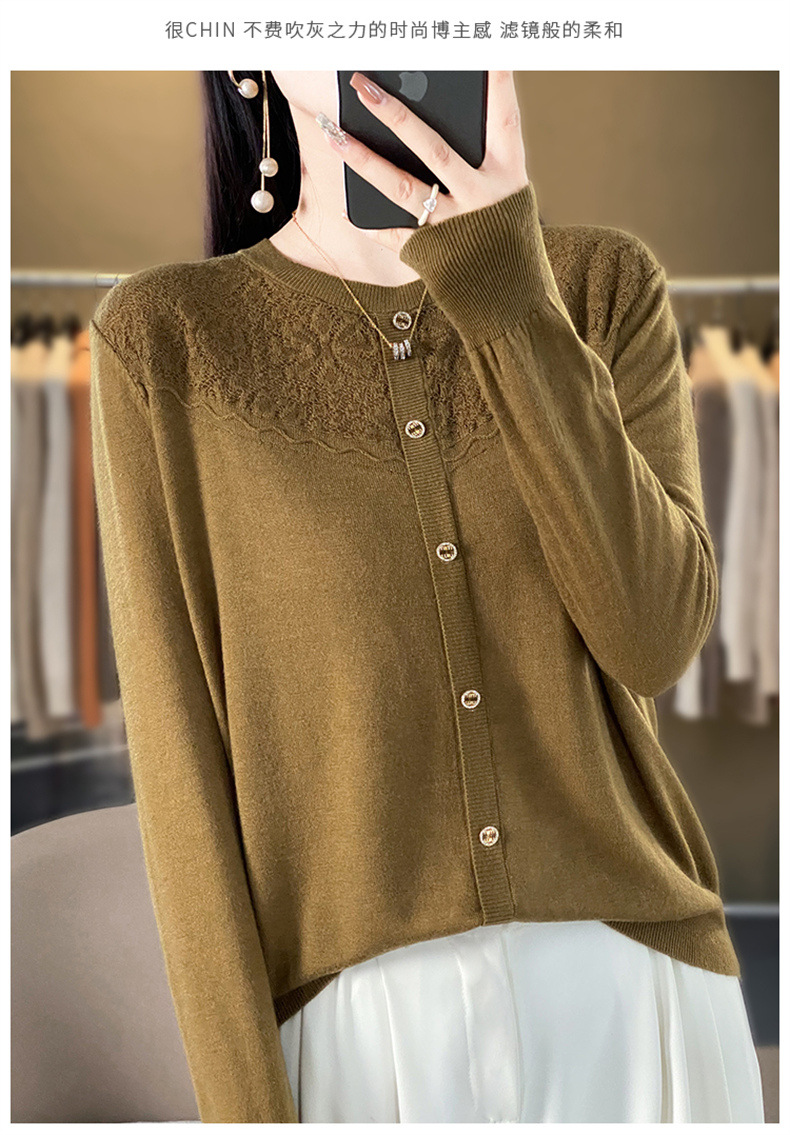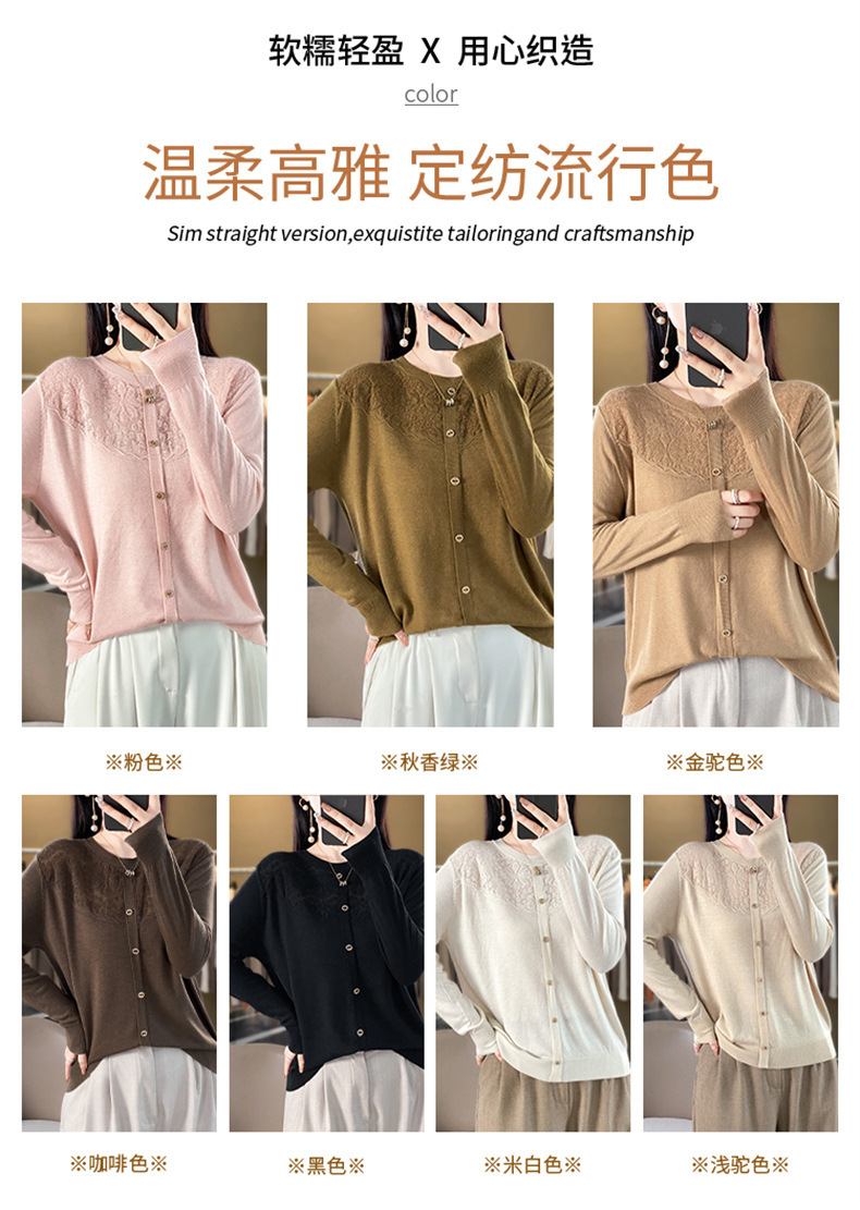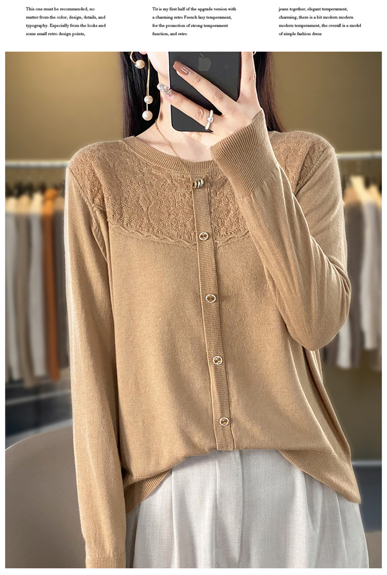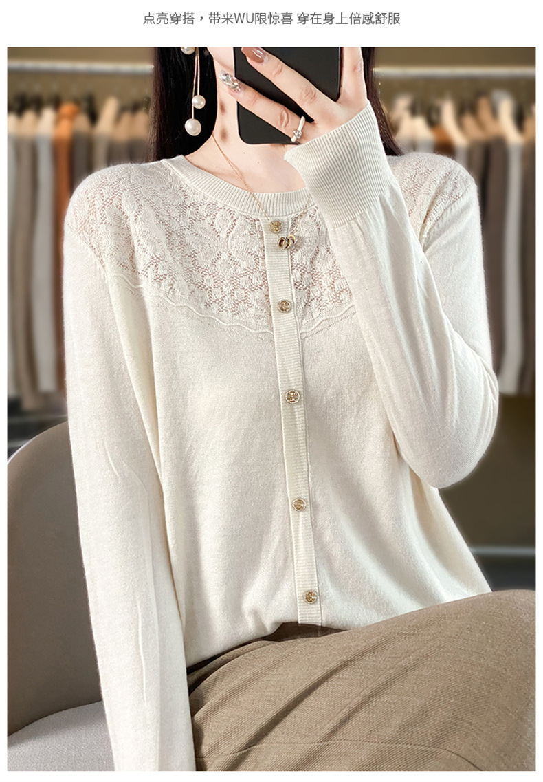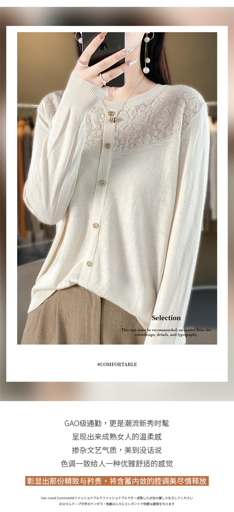 QHJY-JY906秋冬新款精纺圆领开衫女装羊毛针织毛衣外套复古绞花保暖上衣
