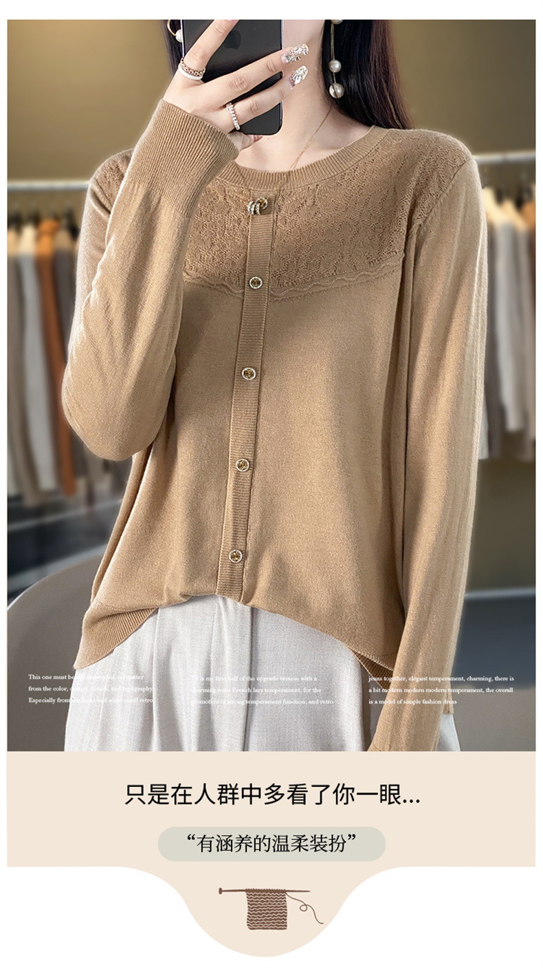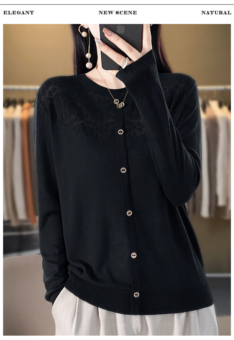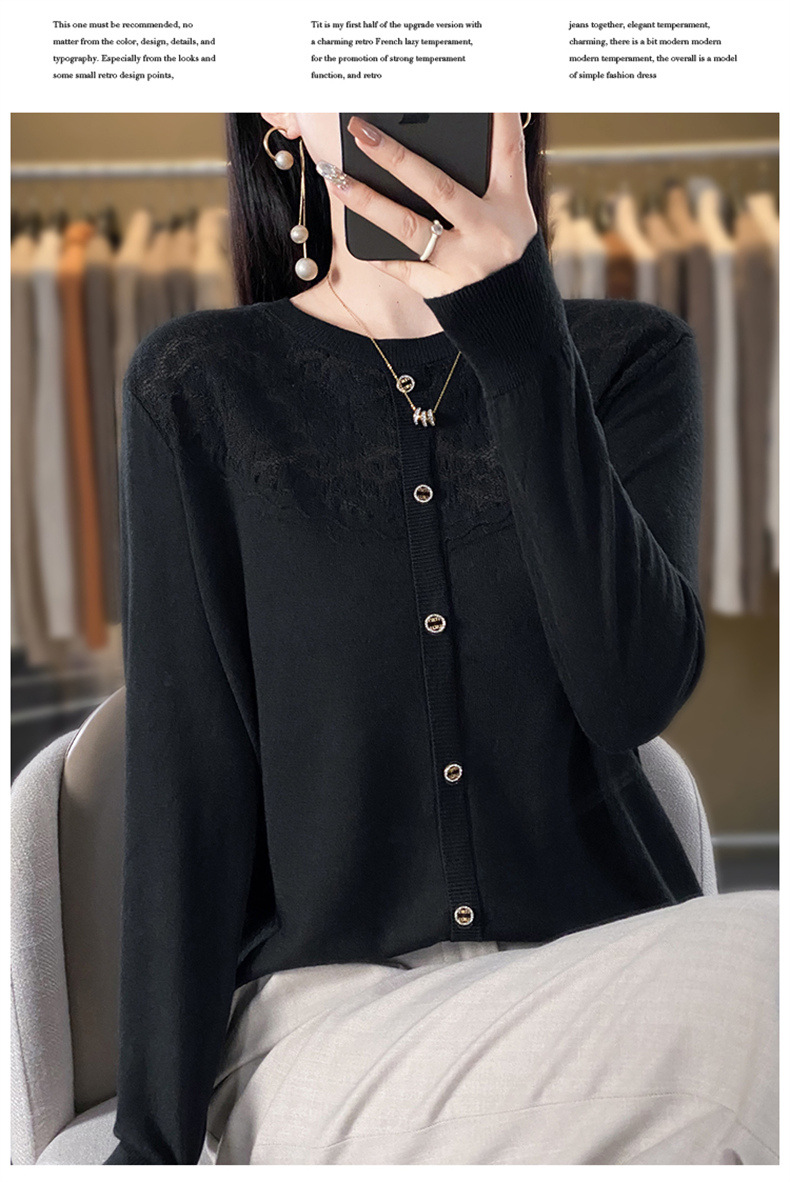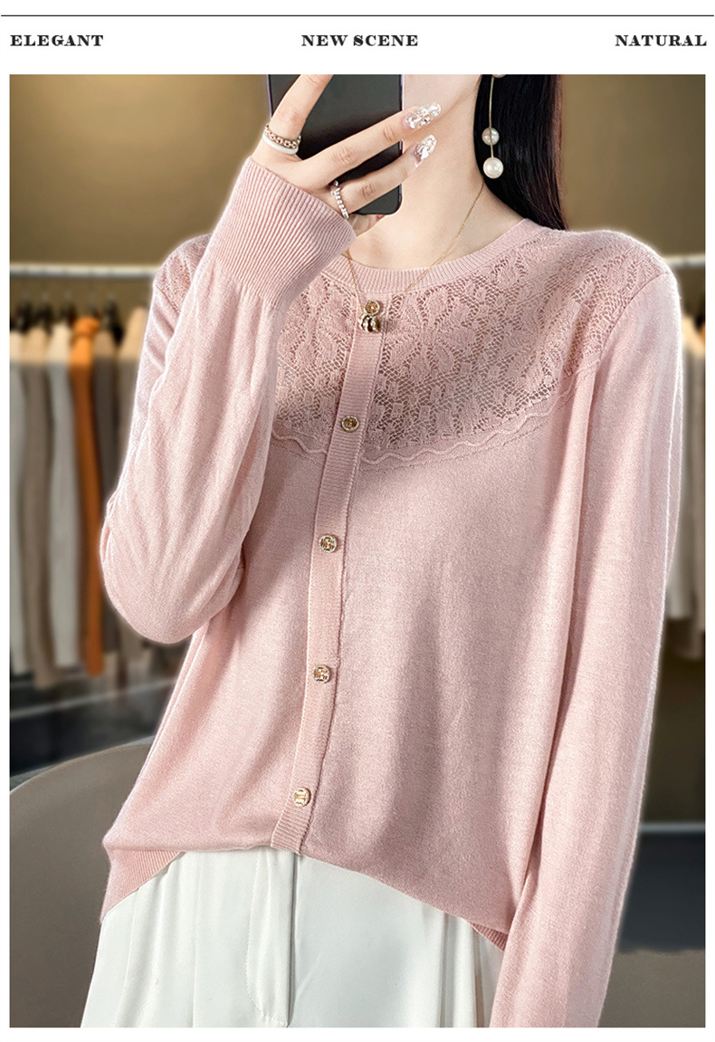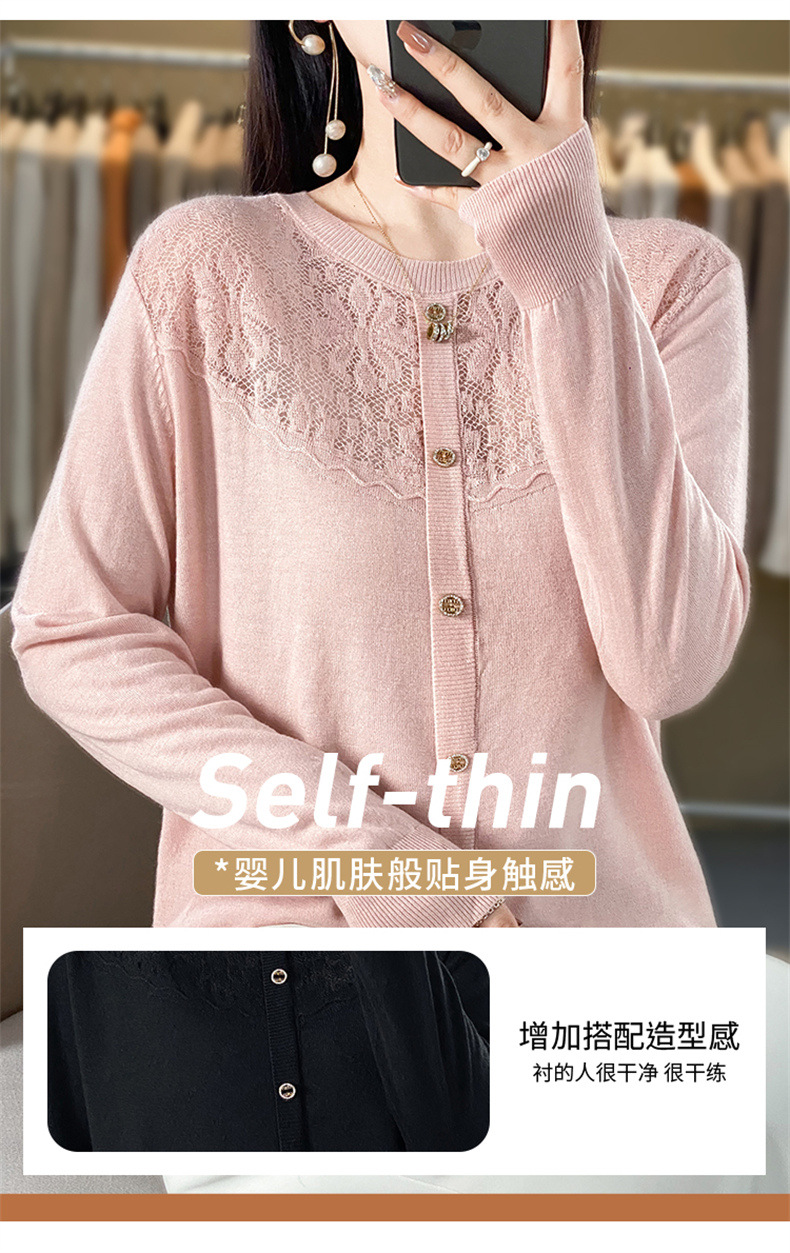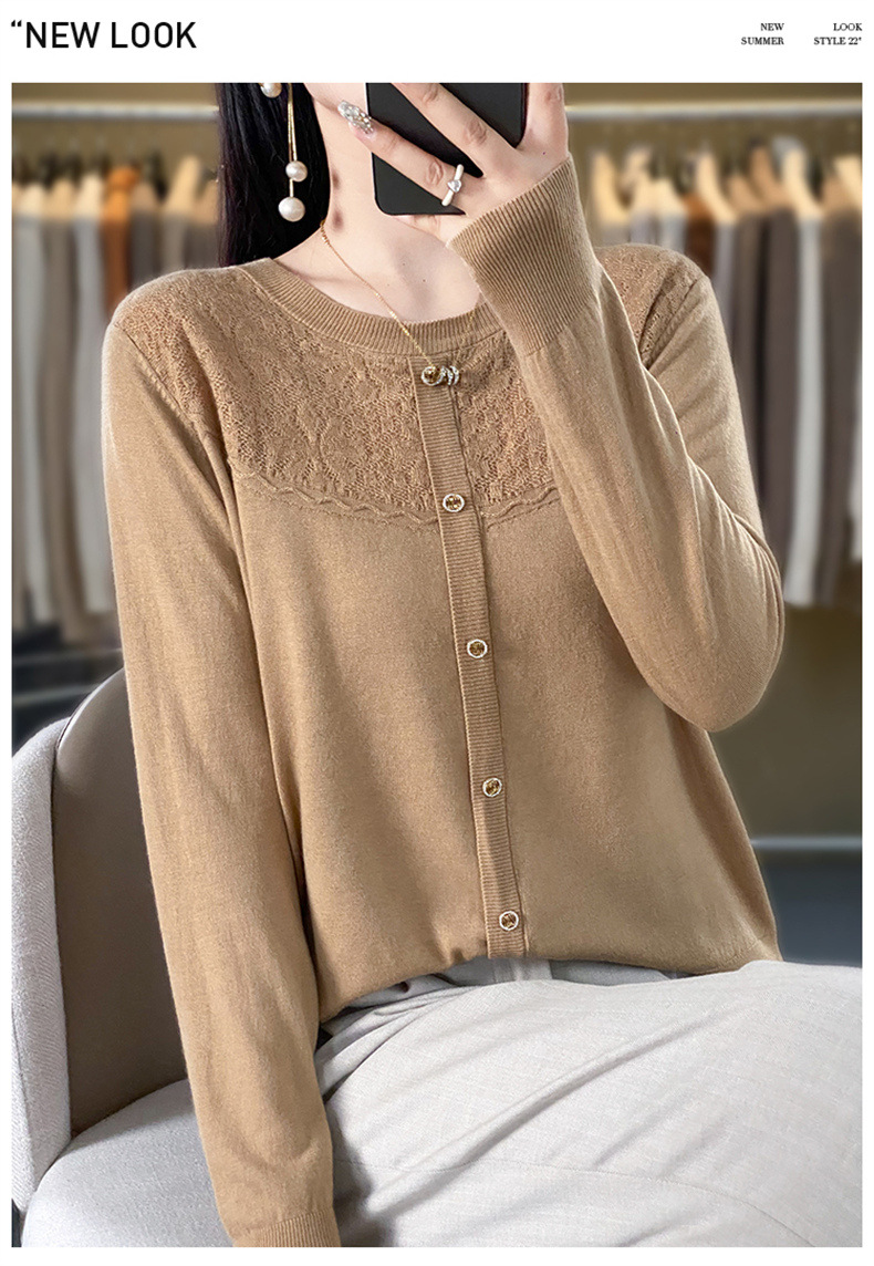 QHJY-JY906秋冬新款精纺圆领开衫女装羊毛针织毛衣外套复古绞花保暖上衣