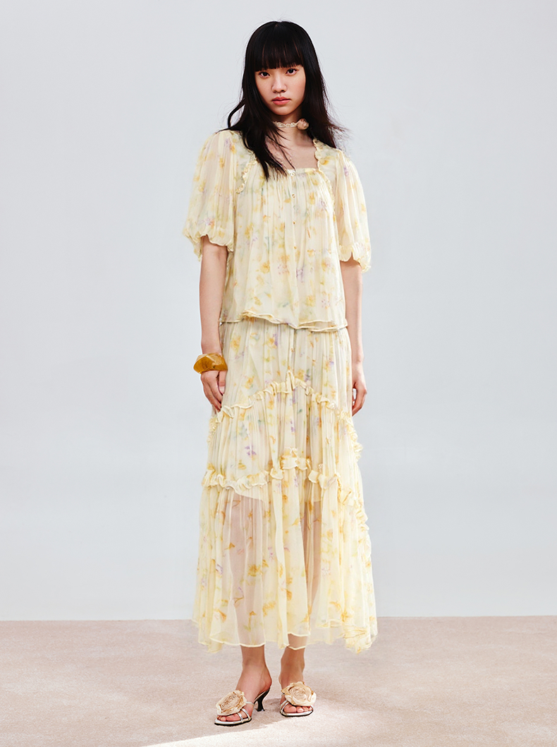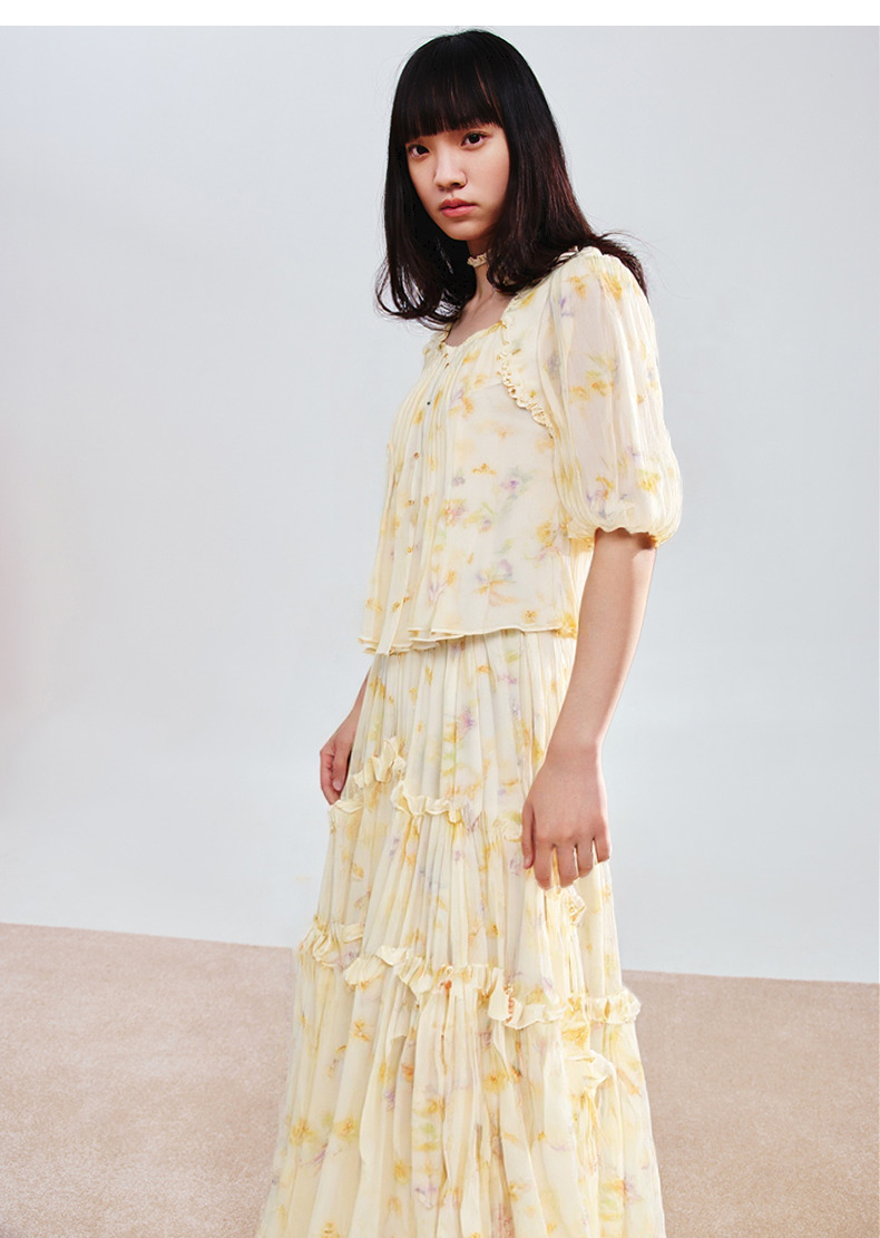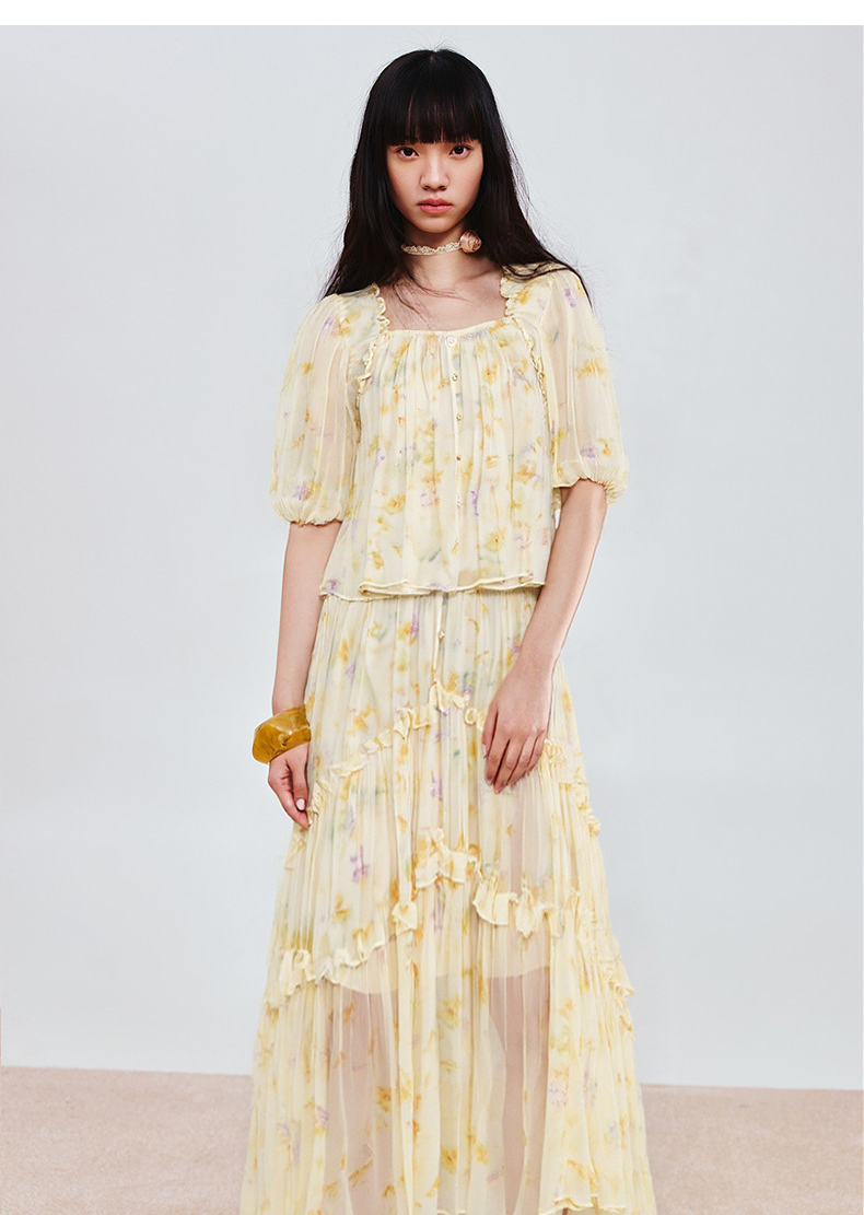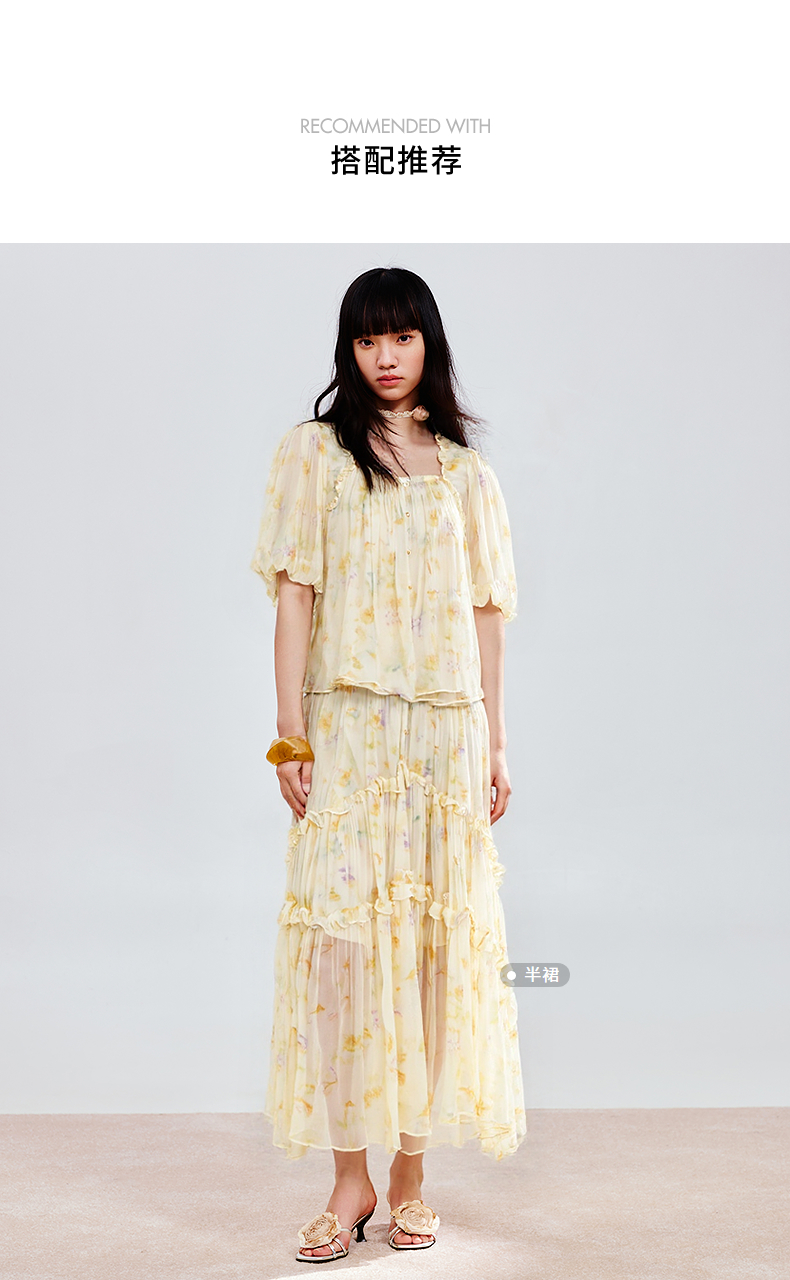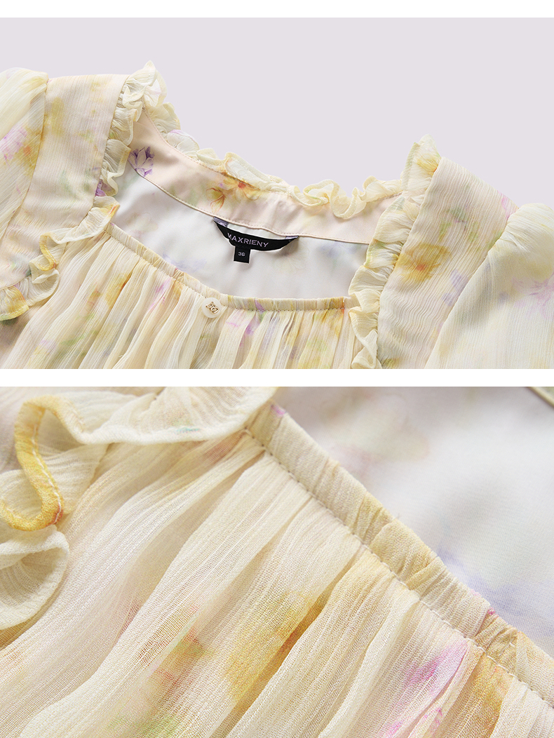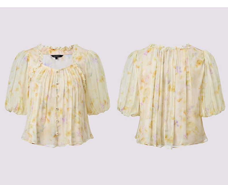 MAXRIENY25年夏季新款日落繁花宫廷风灯笼袖显瘦印花甜美上衣(货号:MF86TP269)