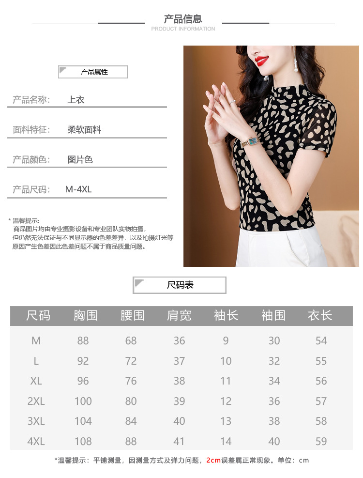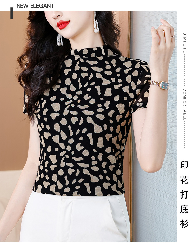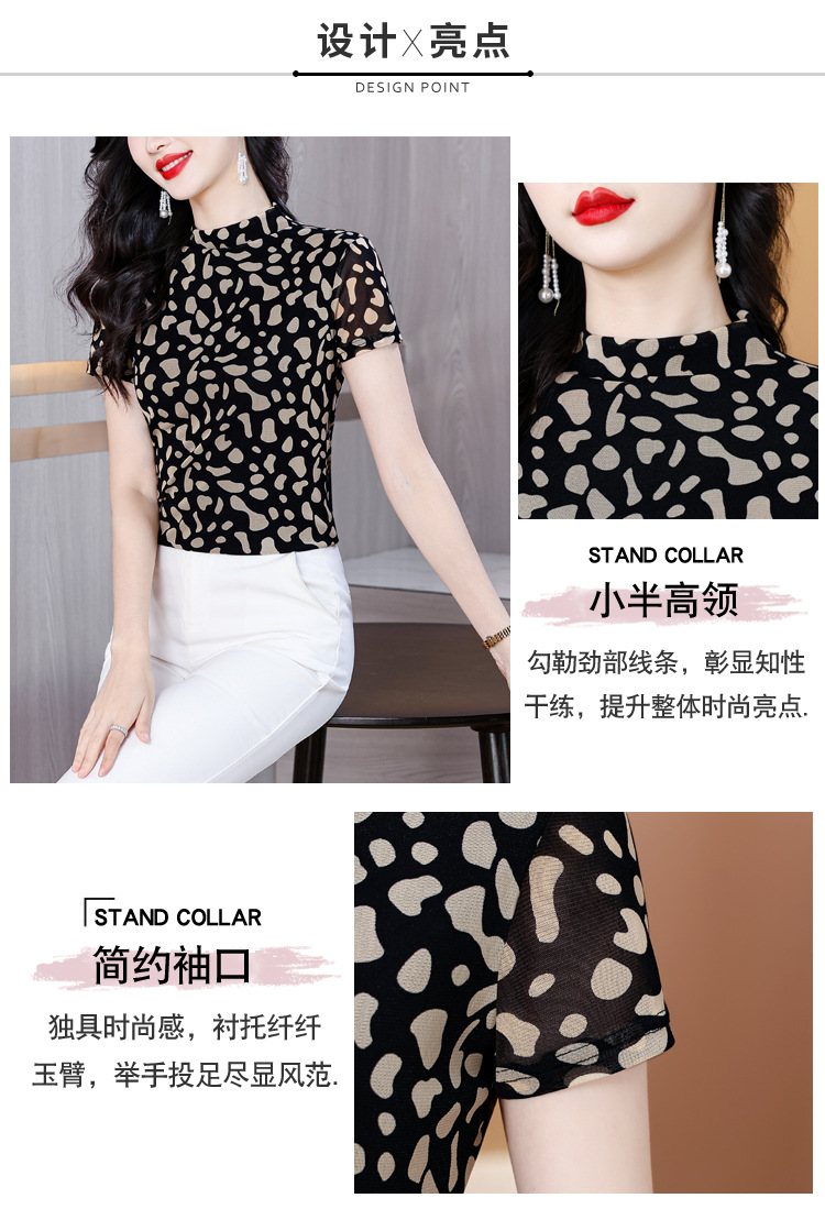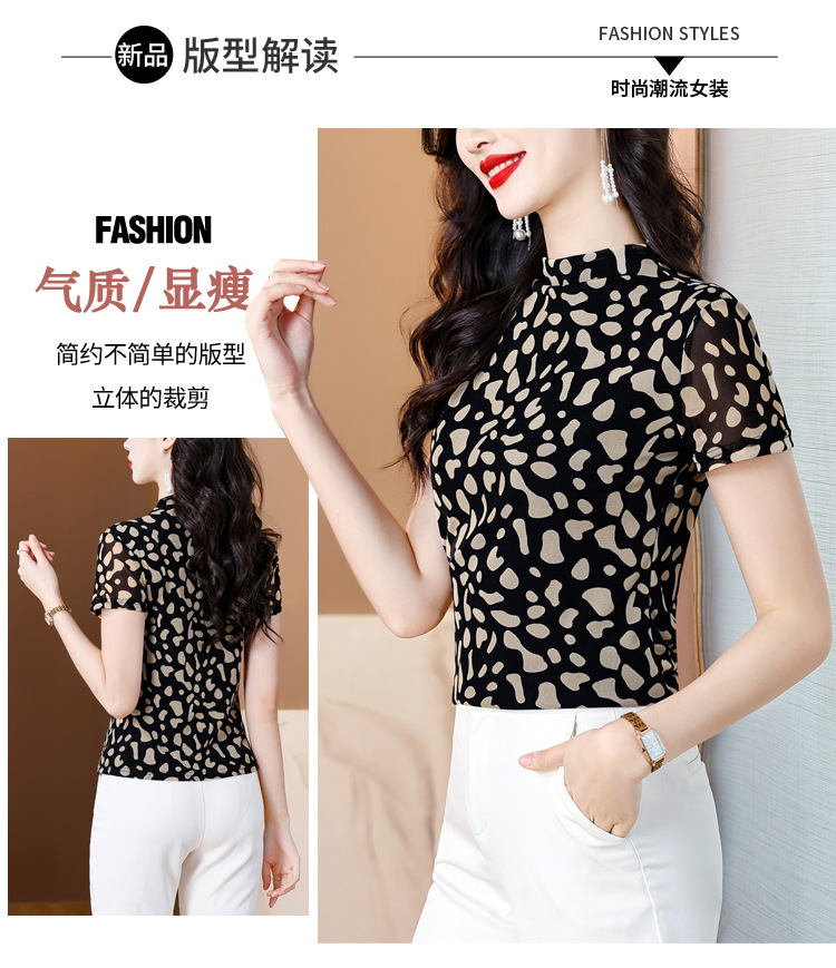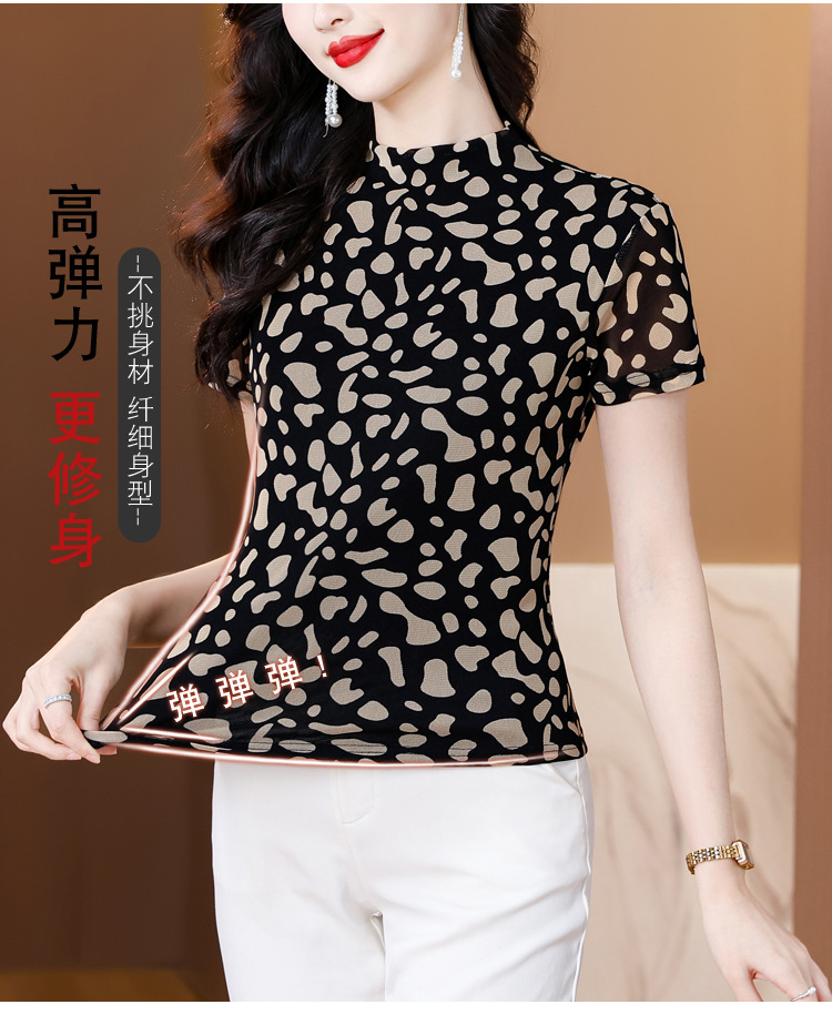 印花网纱t恤短袖修身显瘦小衫K-B12N2699