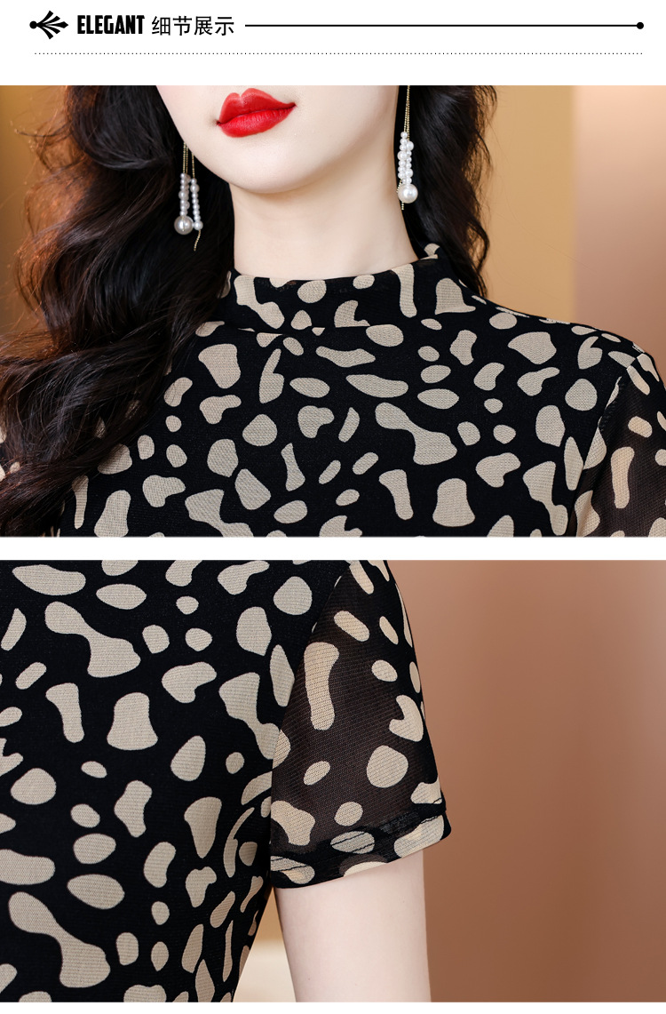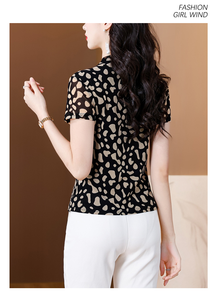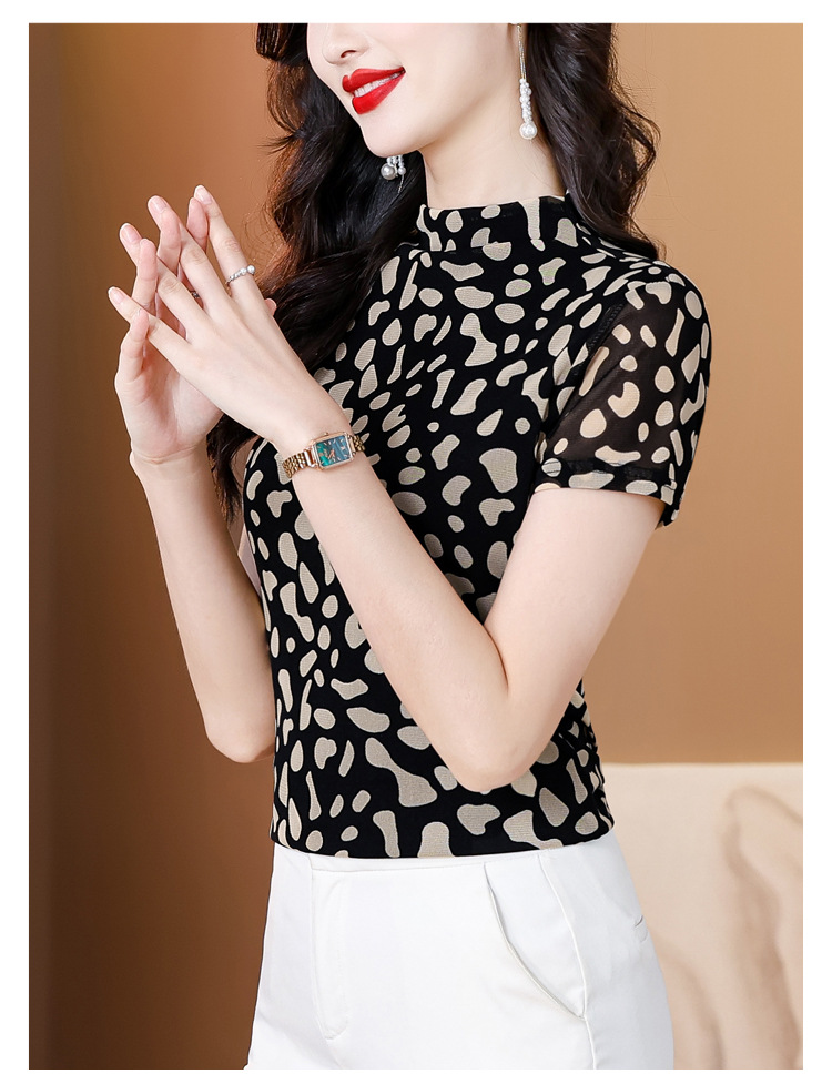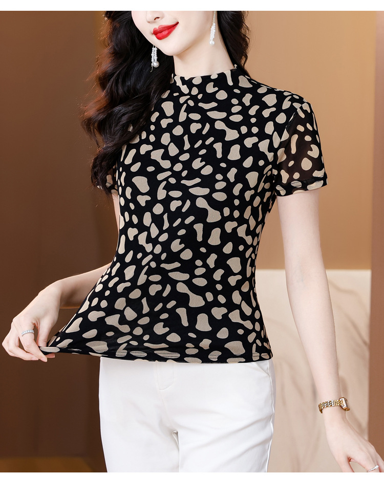 印花网纱t恤短袖修身显瘦小衫K-B12N2699