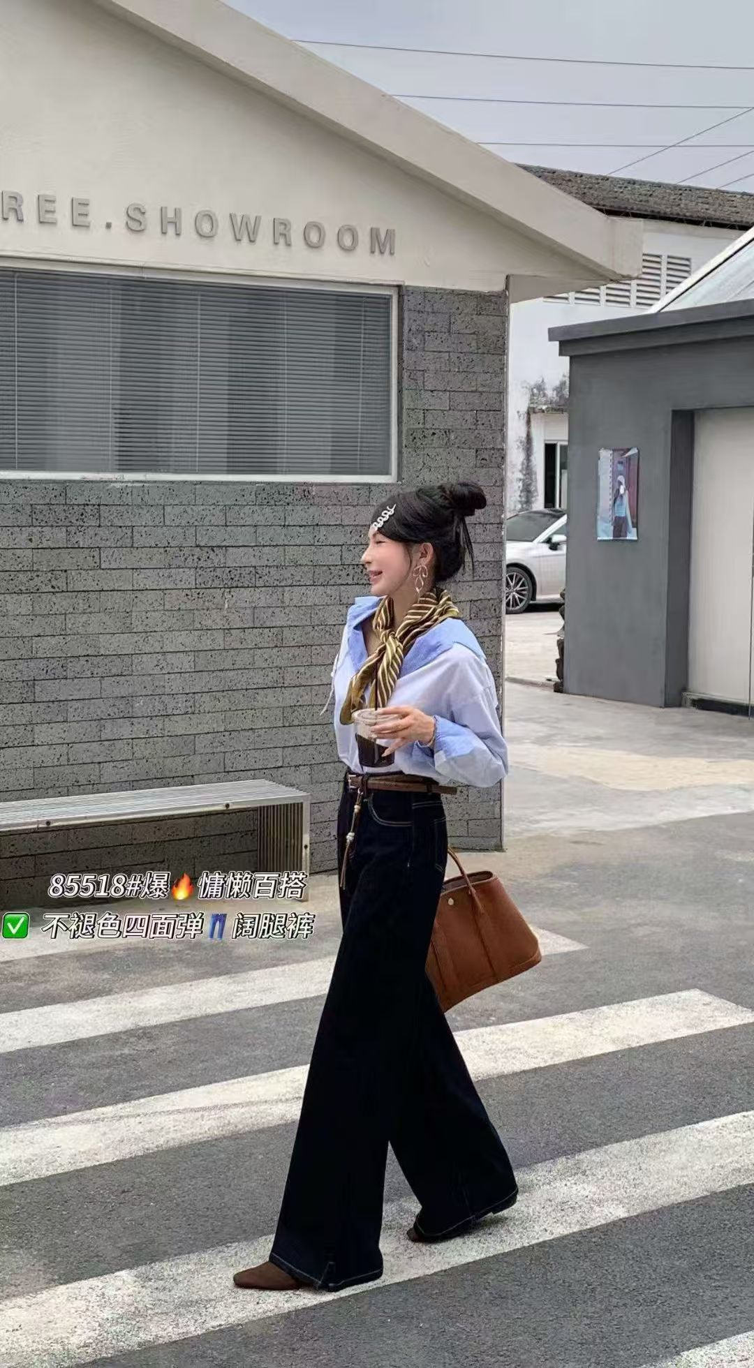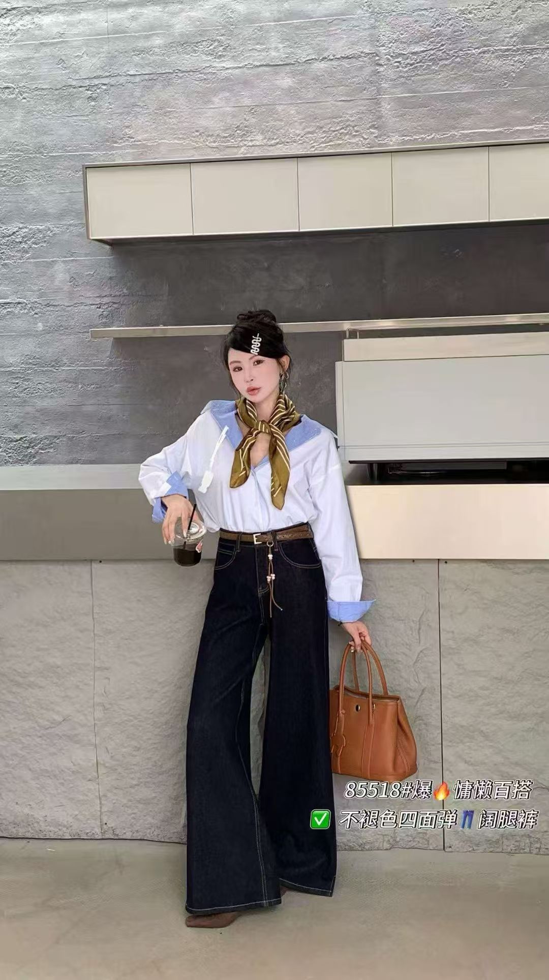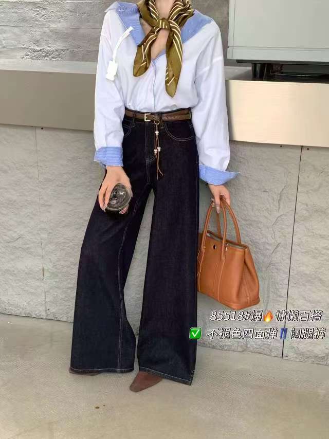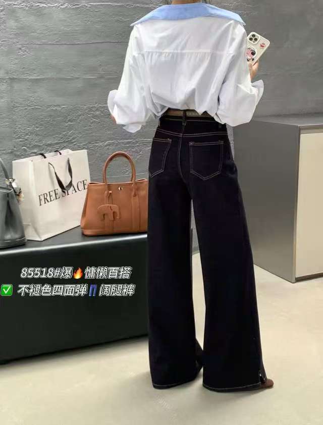 12.12错过没有!清货不退【爆款牛仔】2025秋季新品~四面弹85518单宁蓝长款拖地小开叉牛仔裤-喜出