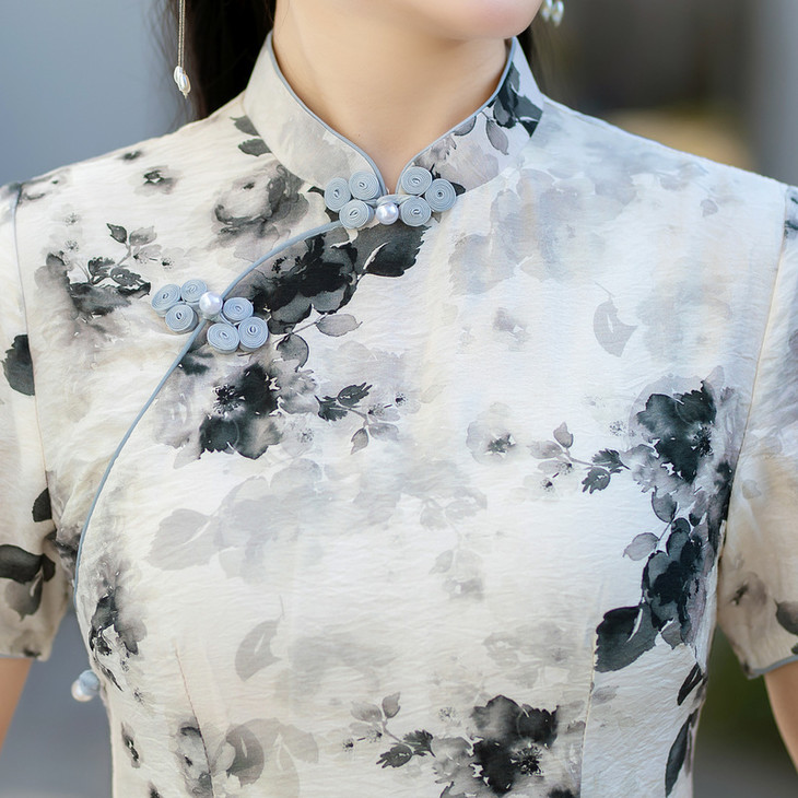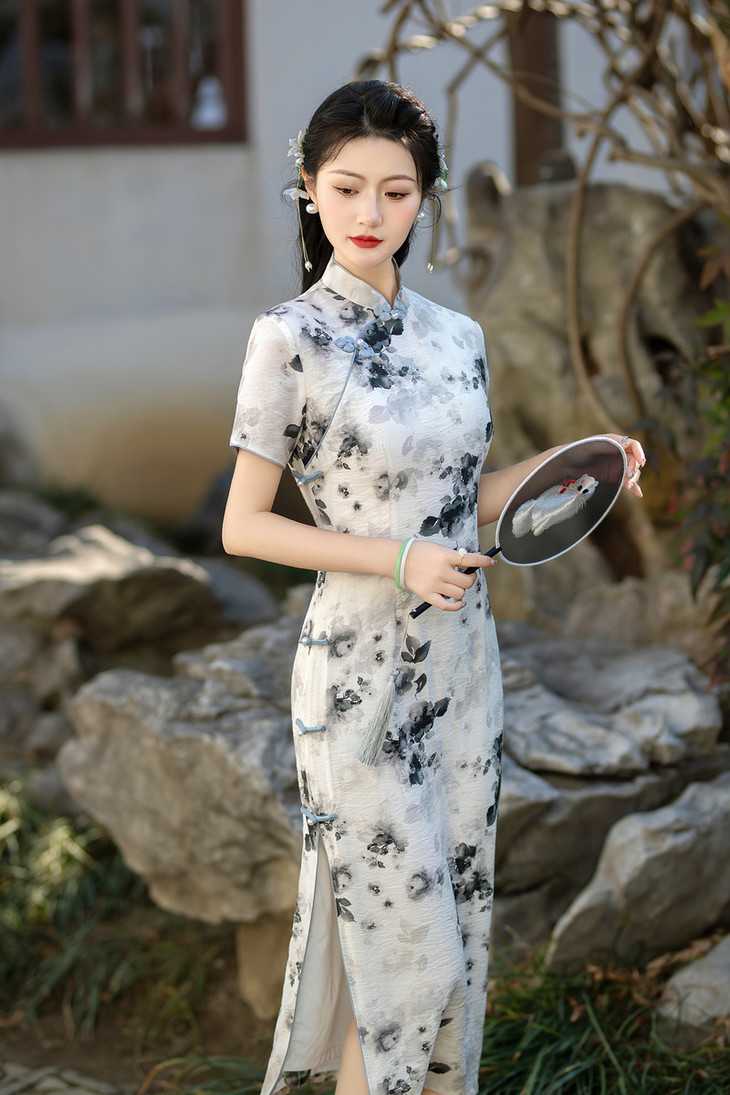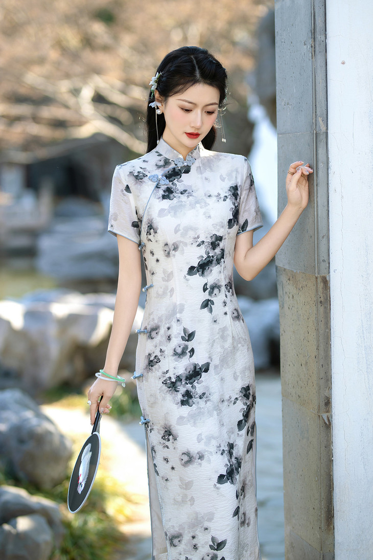 优雅修身,天丝麻年轻款水墨画旗袍ZA205