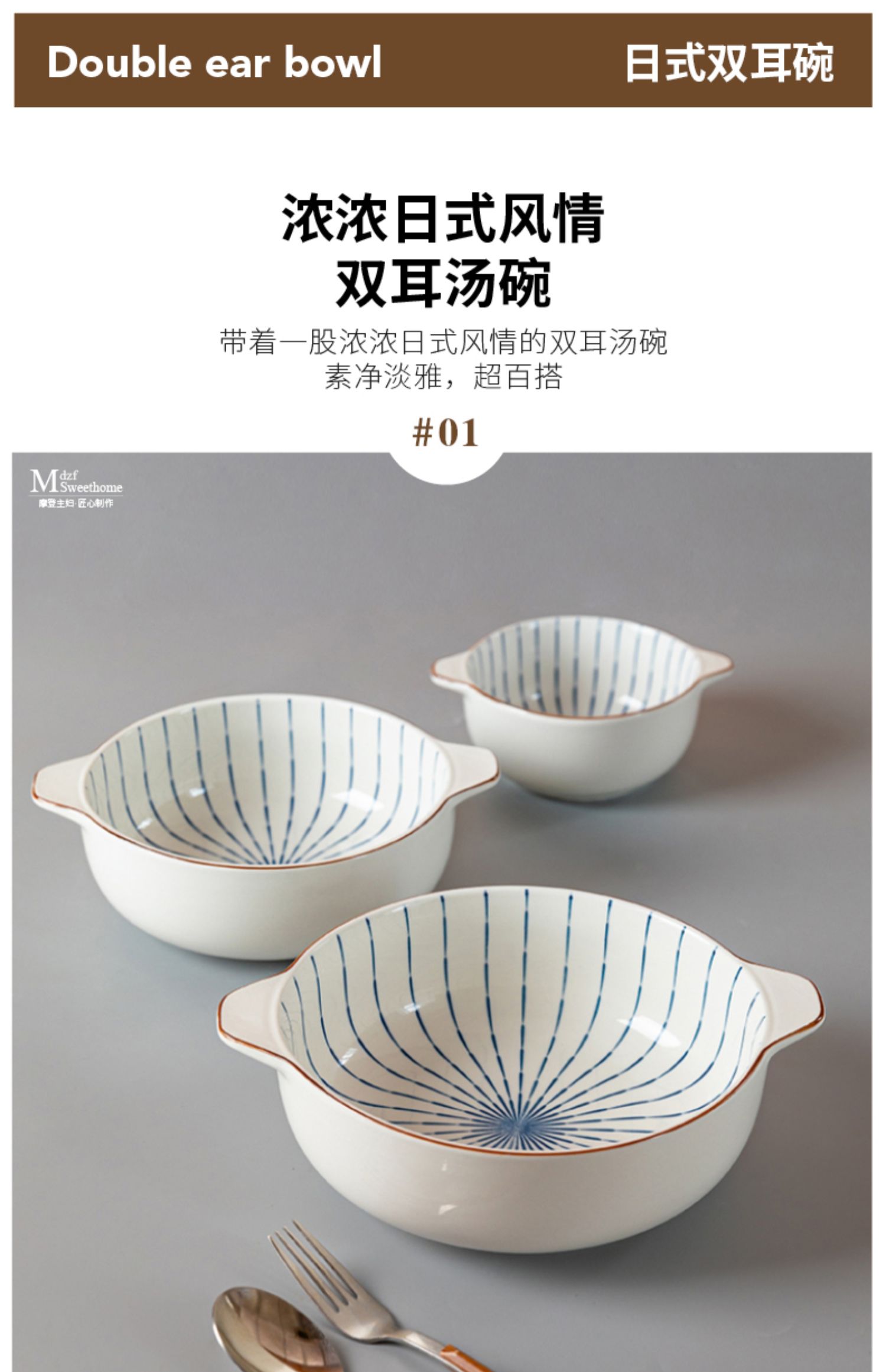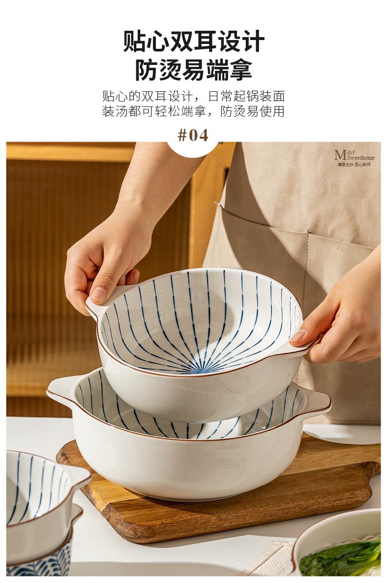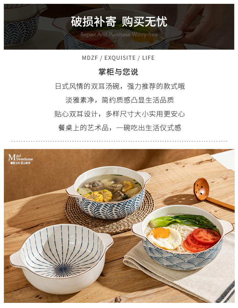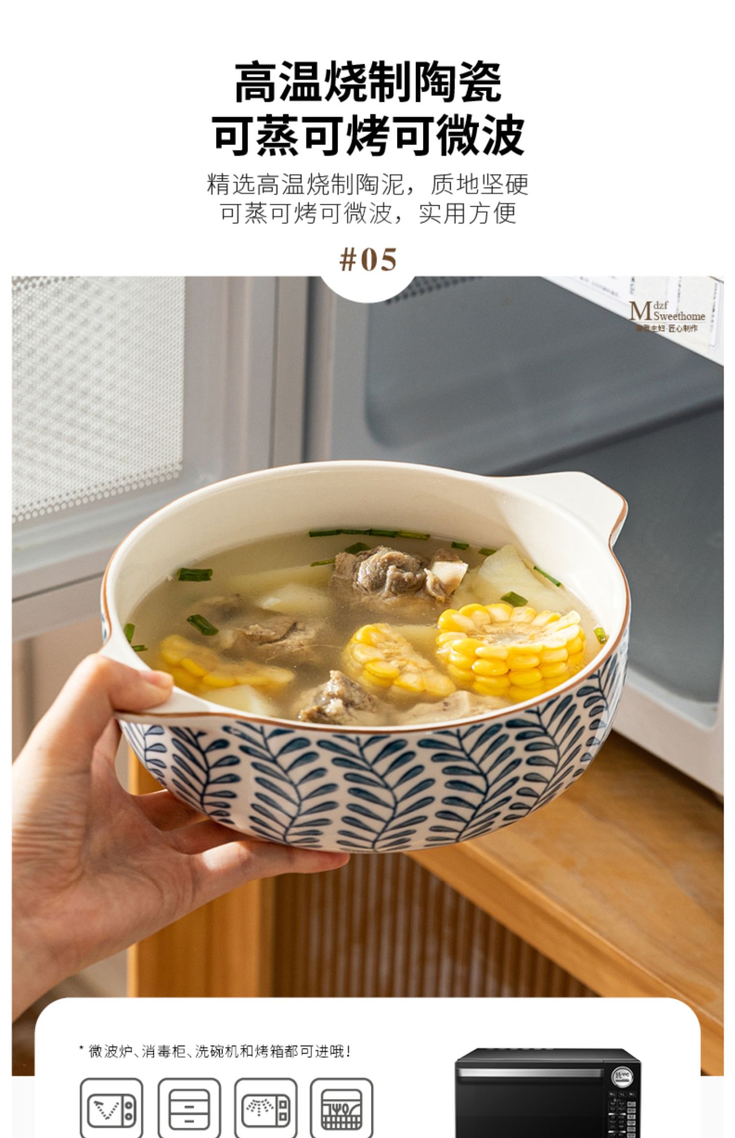 摩登主妇双耳汤碗日式餐具大号汤盆家用网红酸菜鱼大盆碗陶瓷面碗