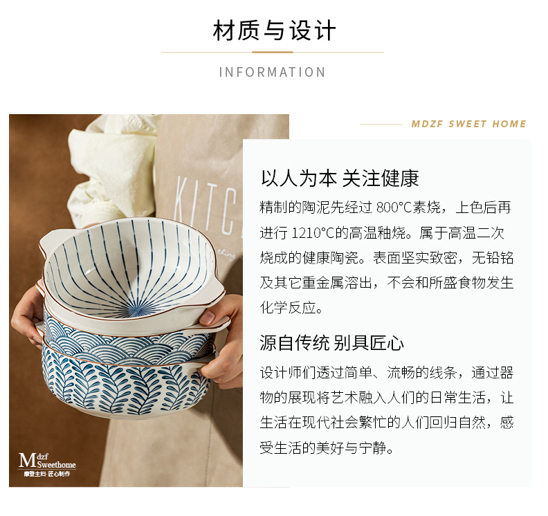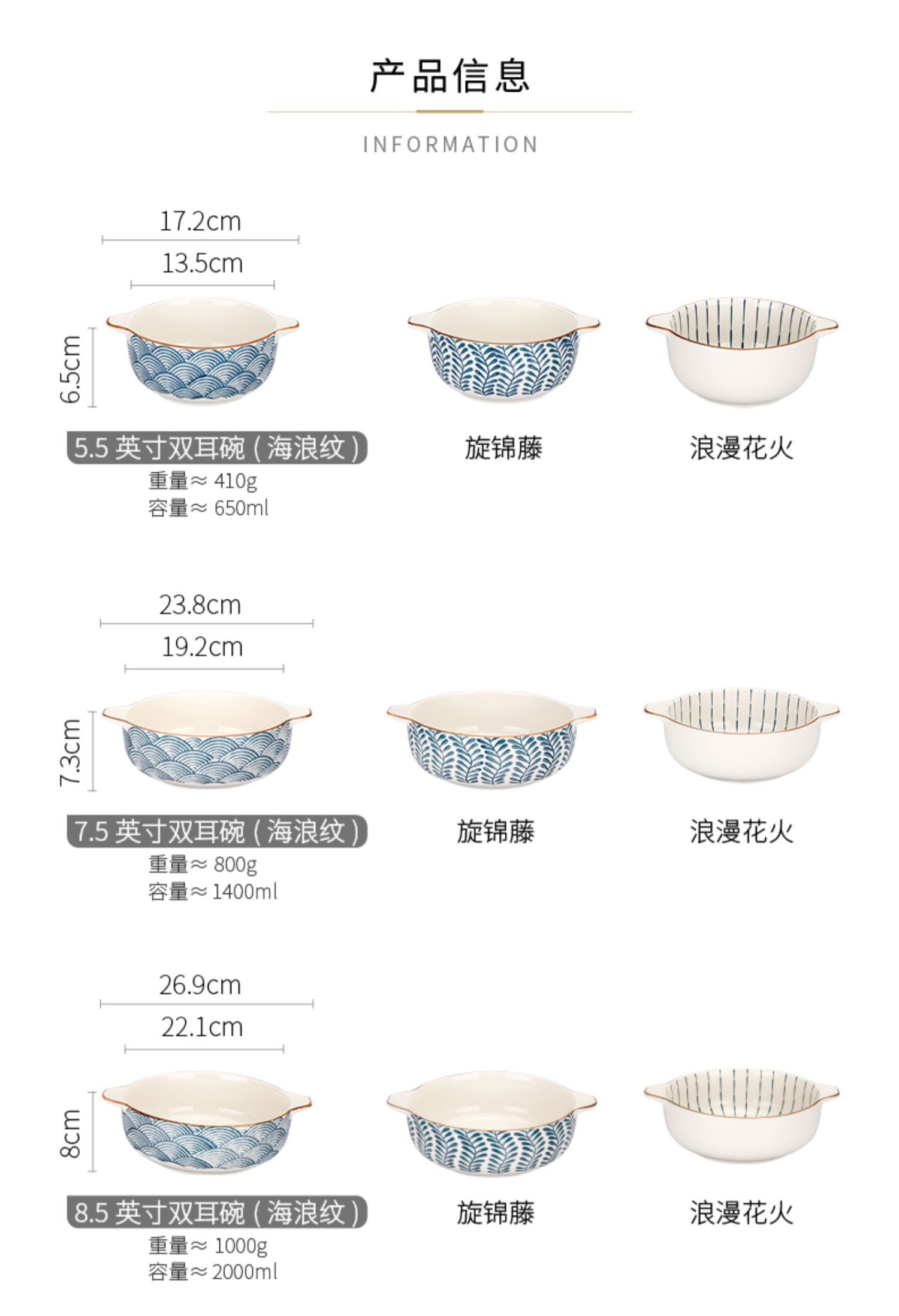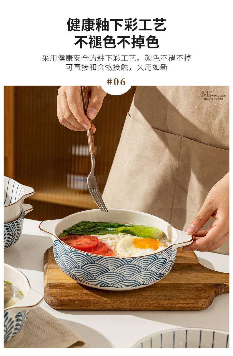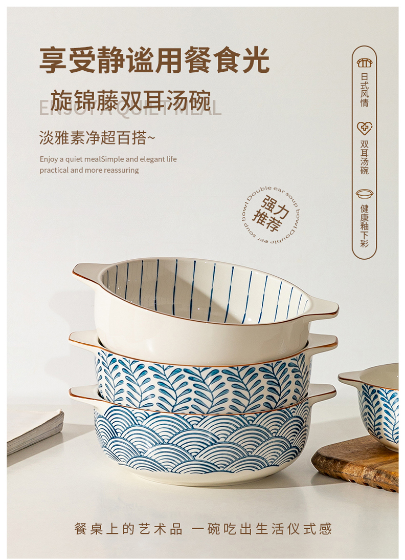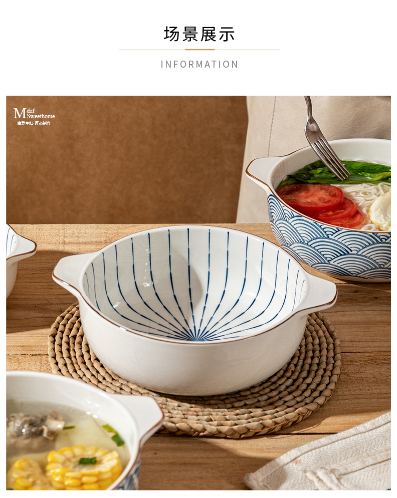 摩登主妇双耳汤碗日式餐具大号汤盆家用网红酸菜鱼大盆碗陶瓷面碗