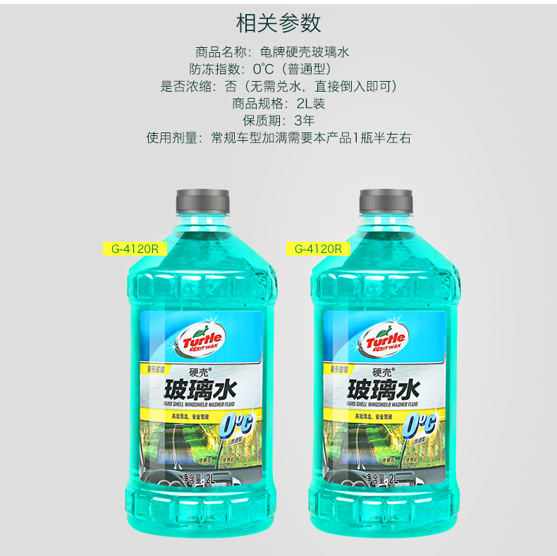 龟牌(Turtle Wax)硬壳玻璃水 零度四季雨刷精浓缩大桶雨刮水玻璃液清洁清洗剂G-4120R1 2L