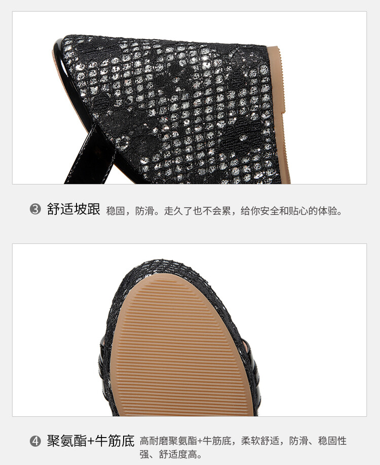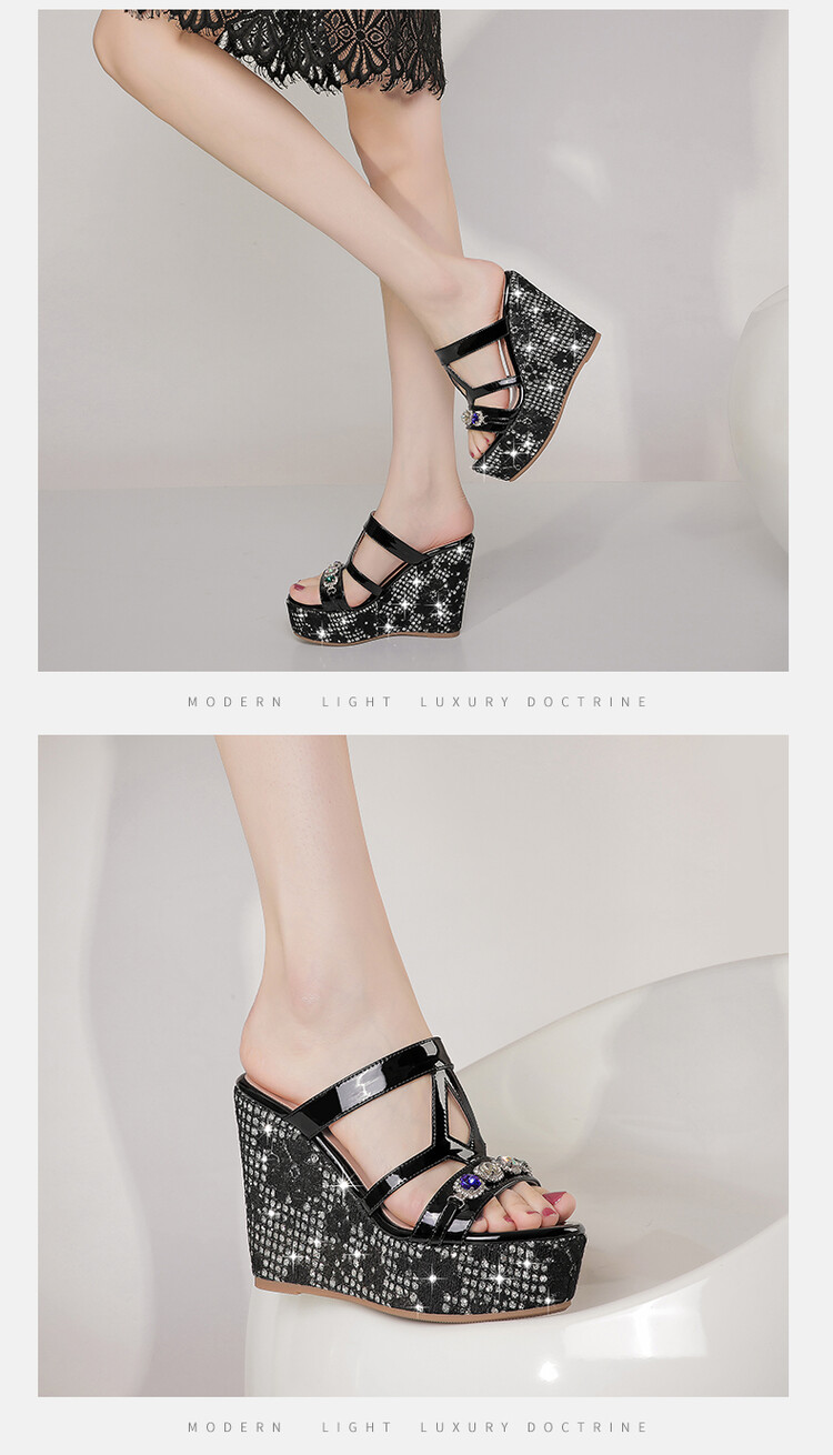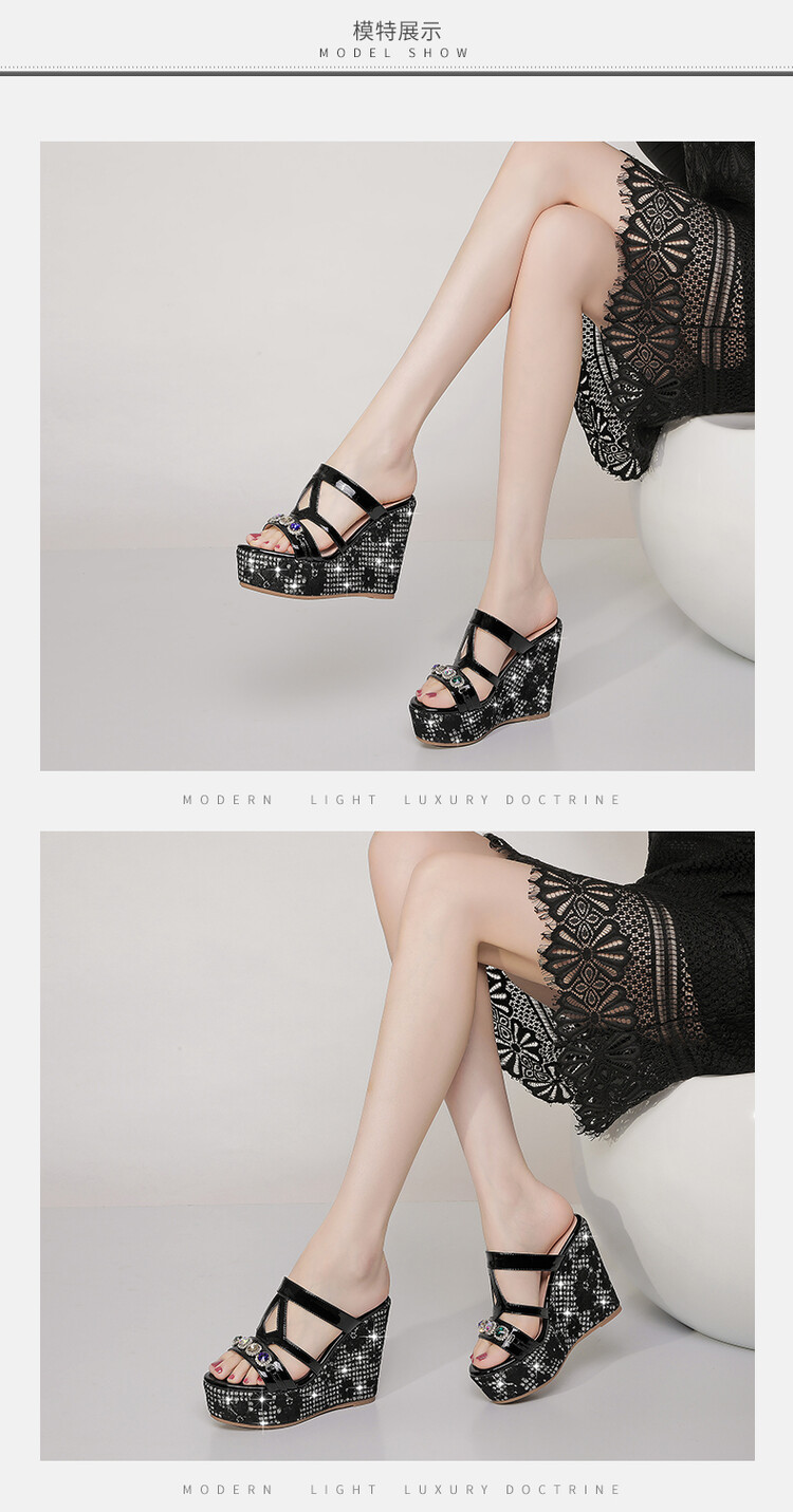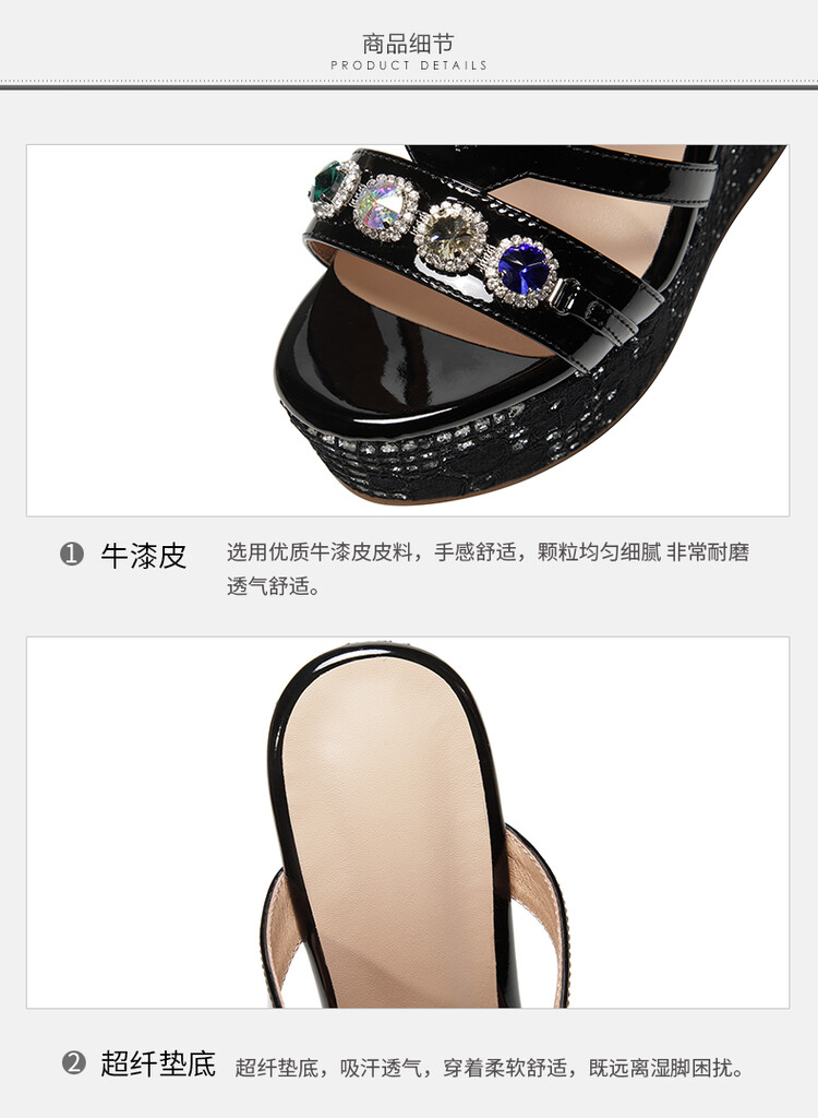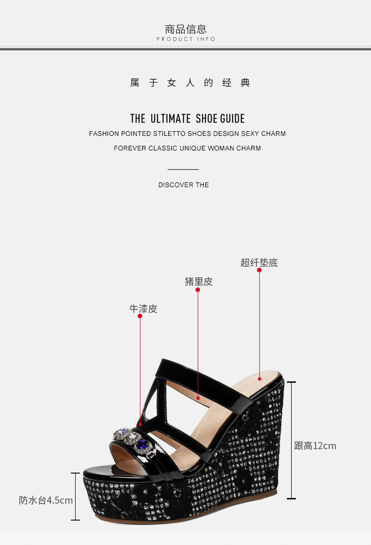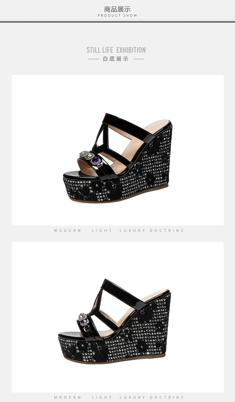 坡跟外穿新款一字凉鞋,恨天高水钻粗高跟厚底女鞋SMQ-618-7