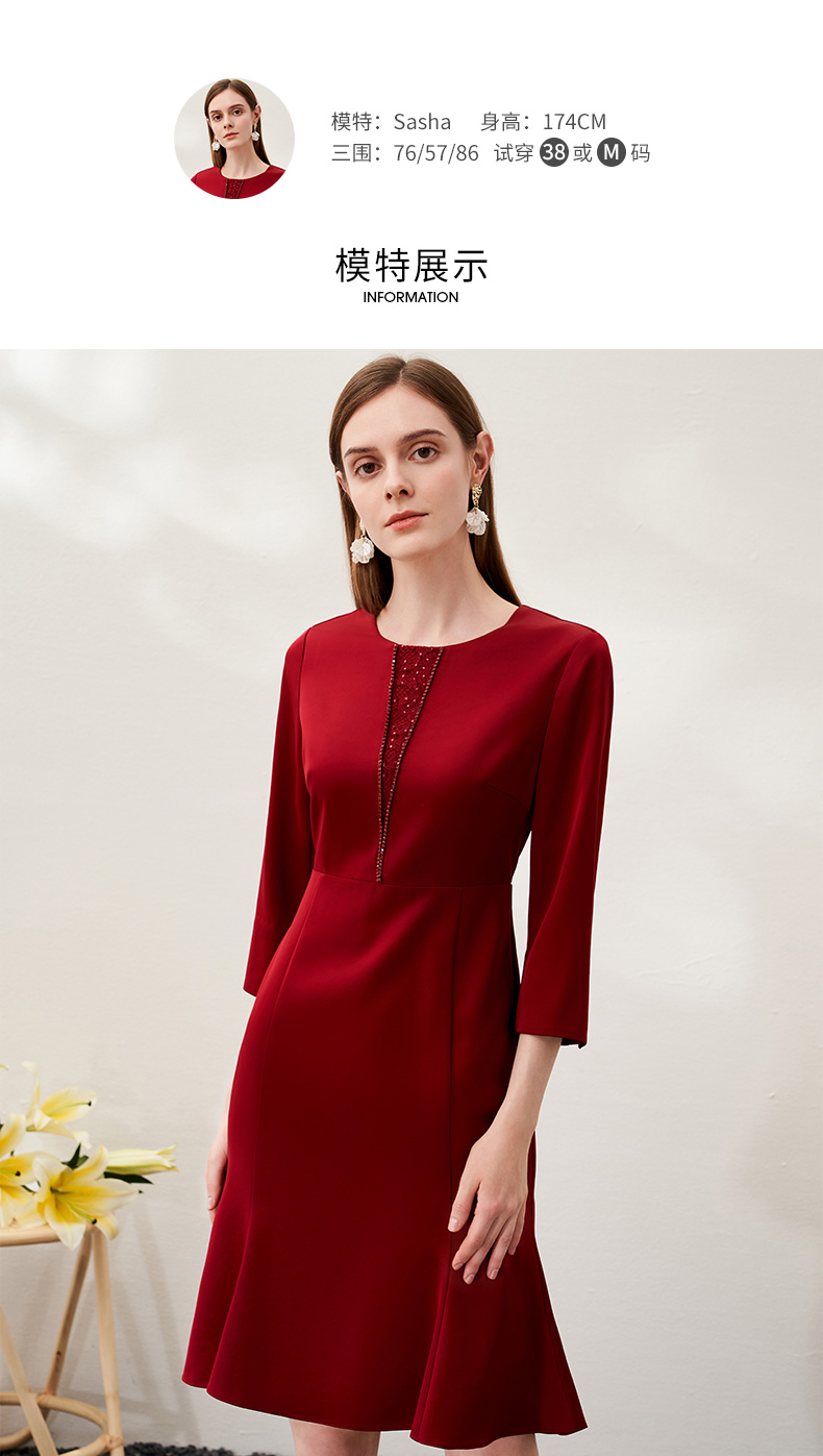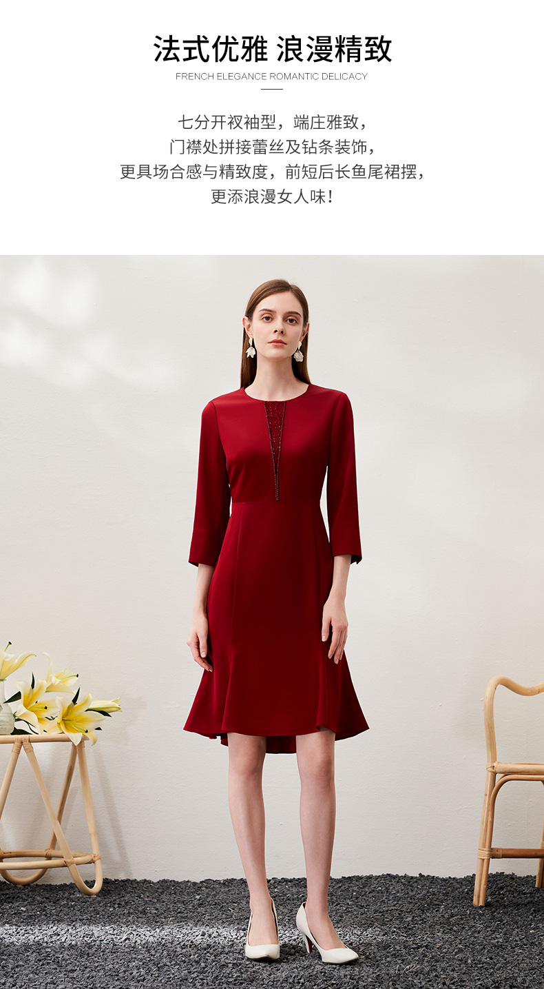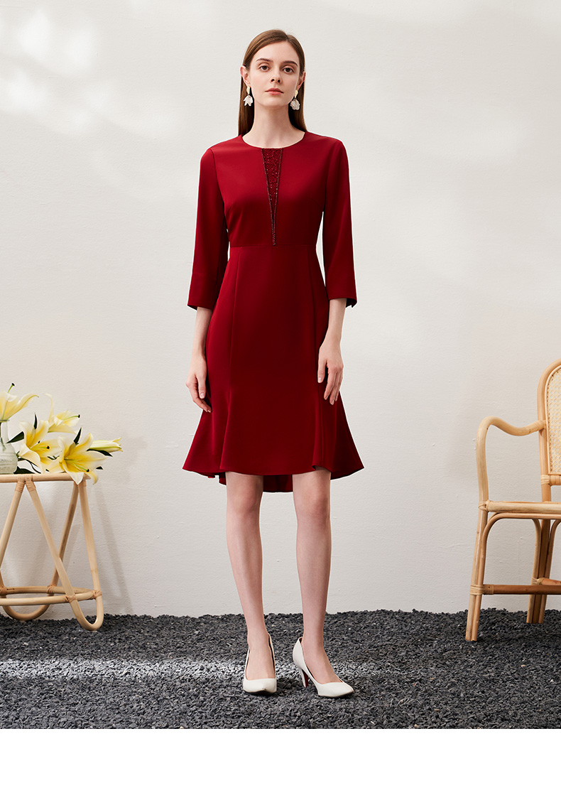 EITIE爱特爱春季新款优雅显瘦垂感舒适收腰鱼尾连衣裙6977604