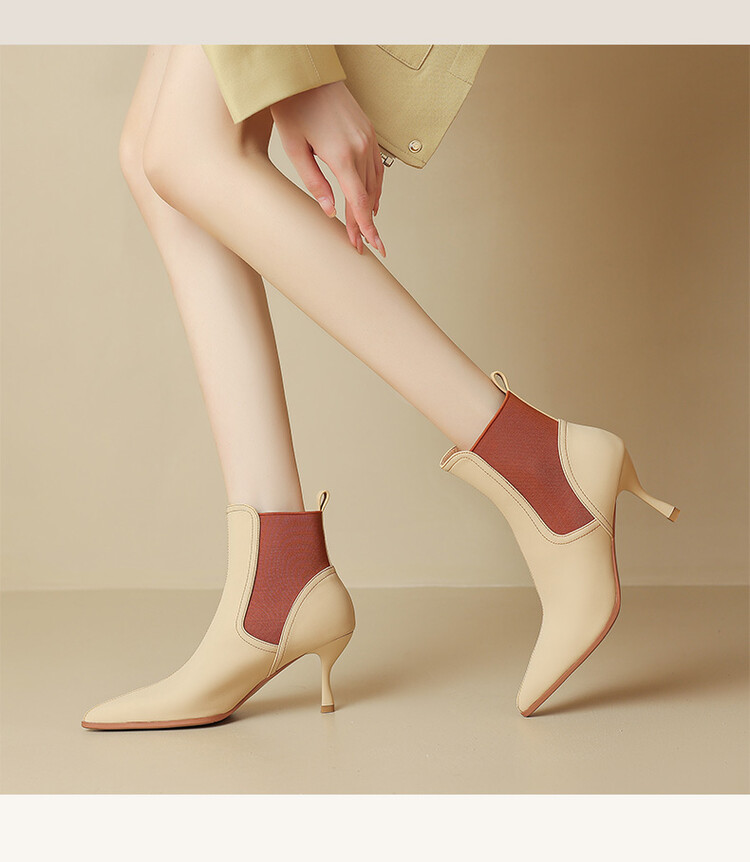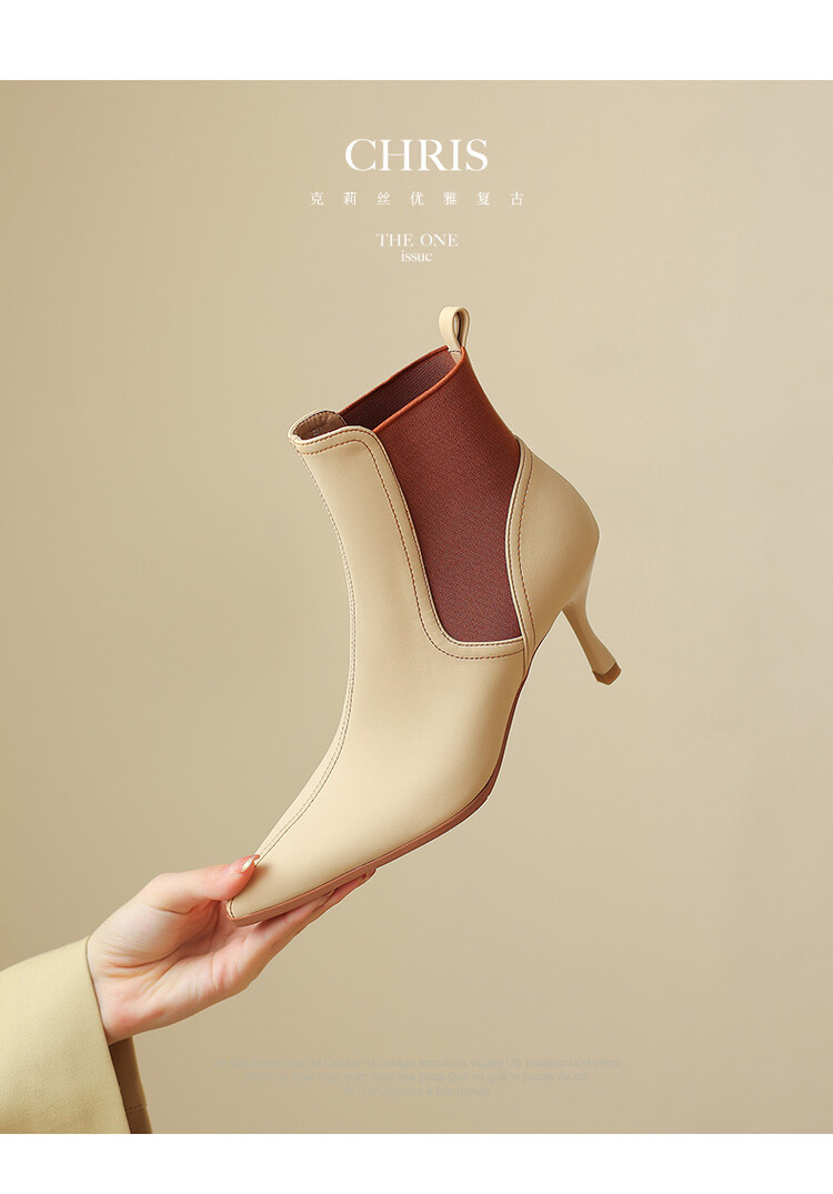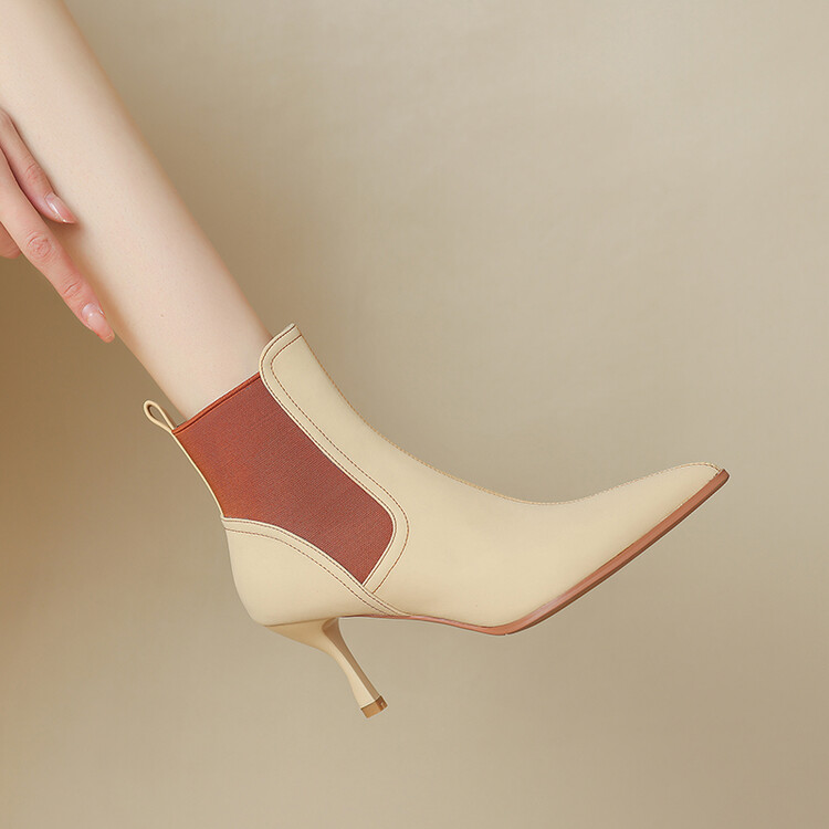 法式高级感,时尚拼色尖头及裸靴WC-M7397
