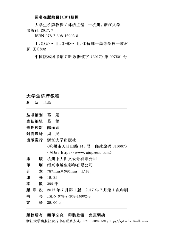 书名:大学生桥牌教程 ISBN:9787308169028 作者:林洁 内容提要: