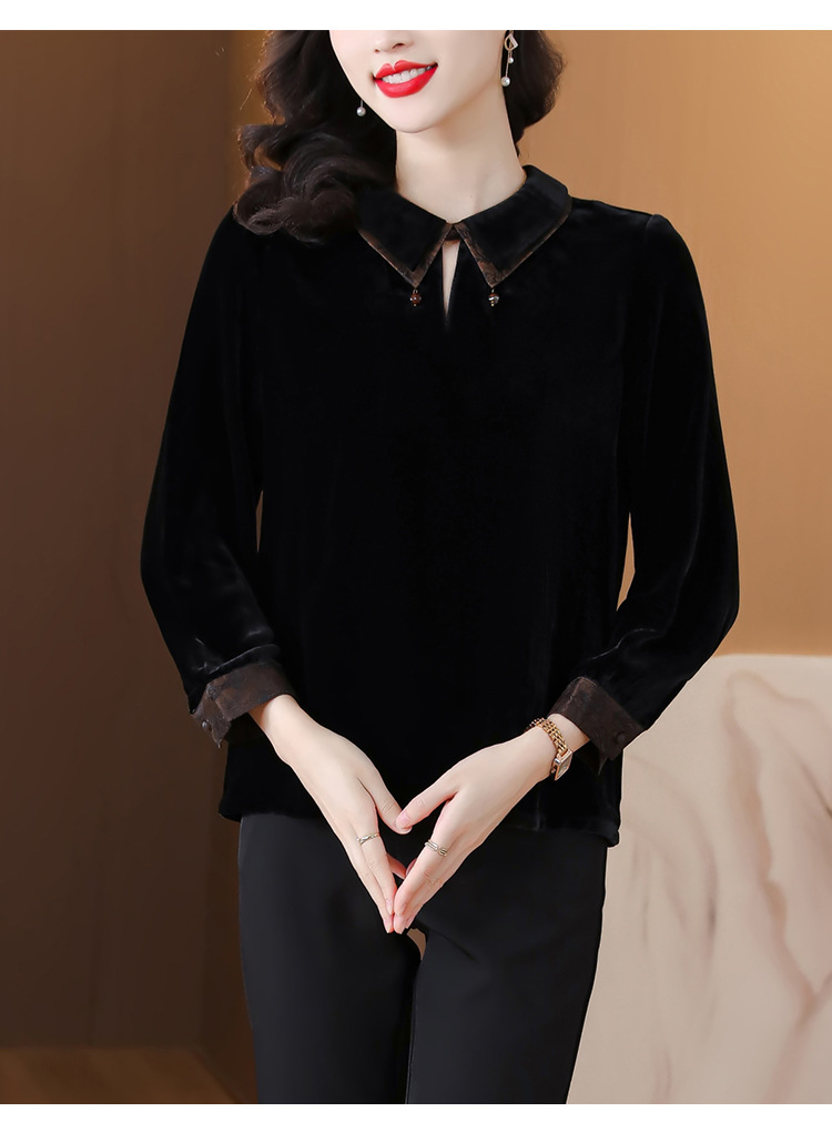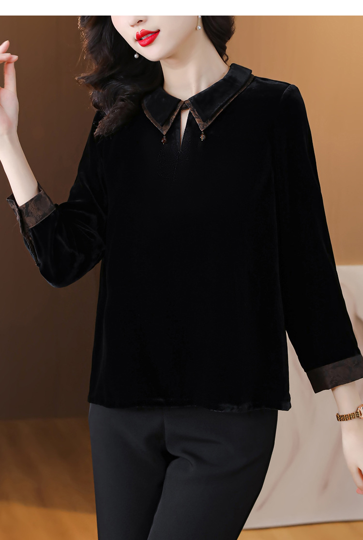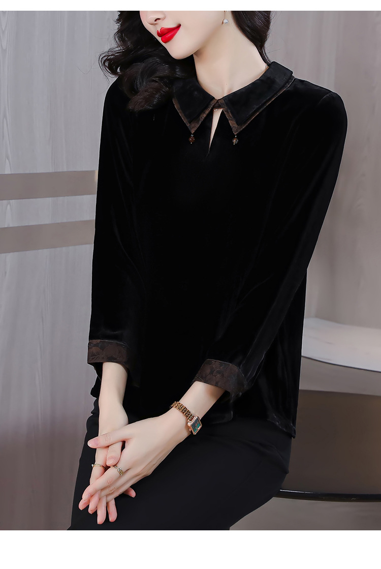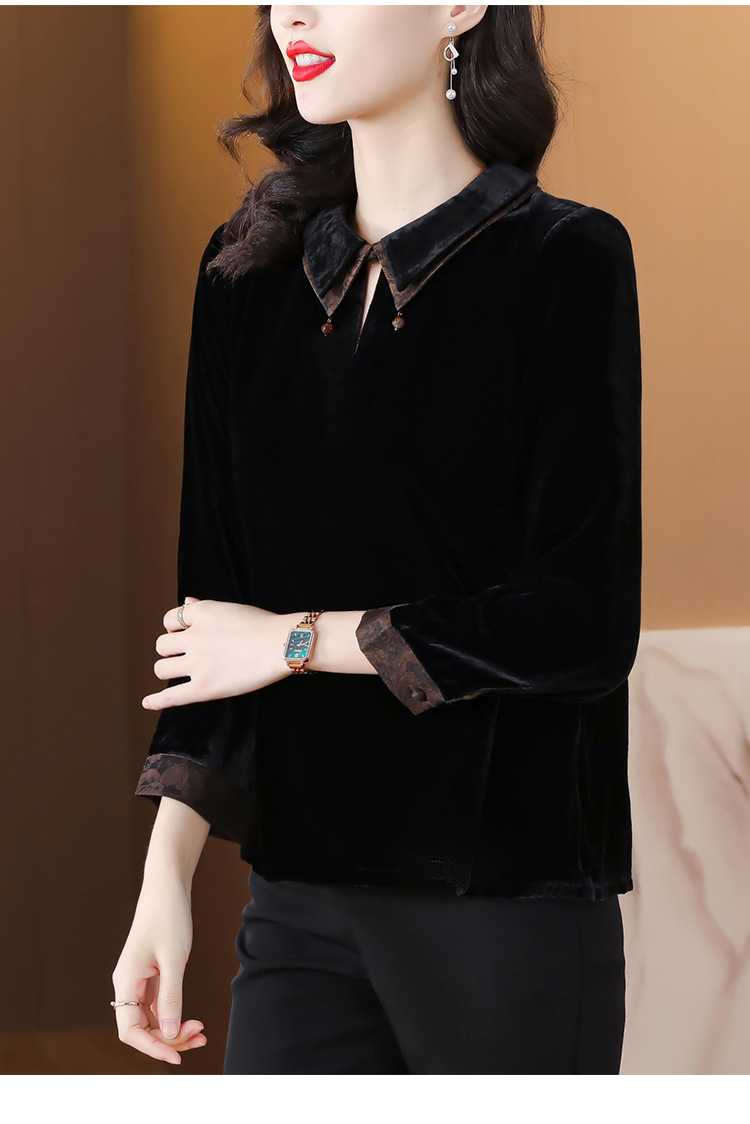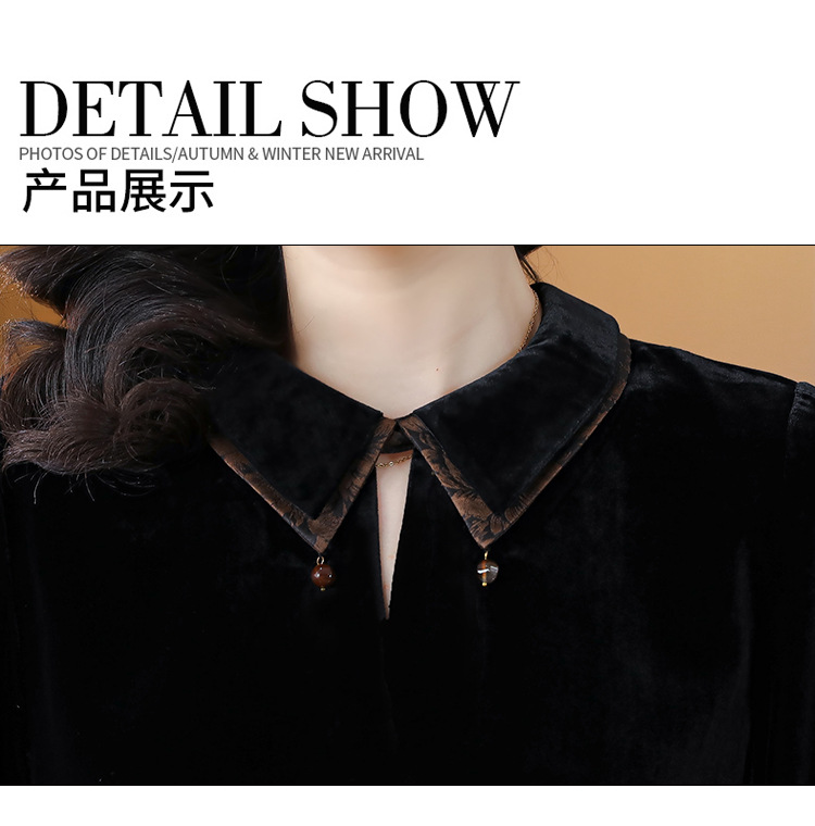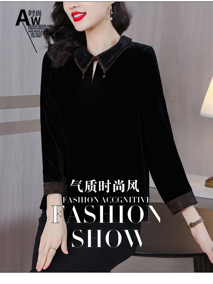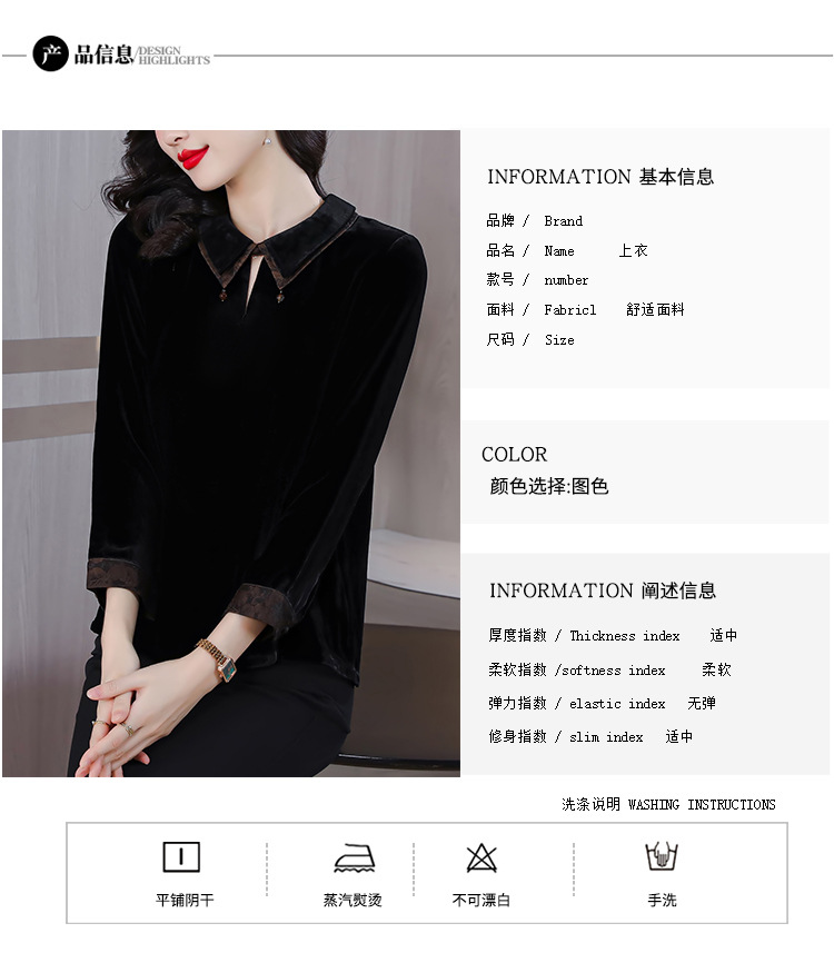 A9631真丝绒上衣女2023新款高端大码真丝丝绒品牌金丝绒高贵洋气