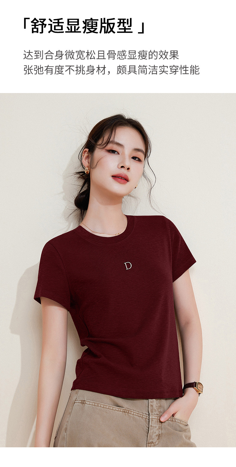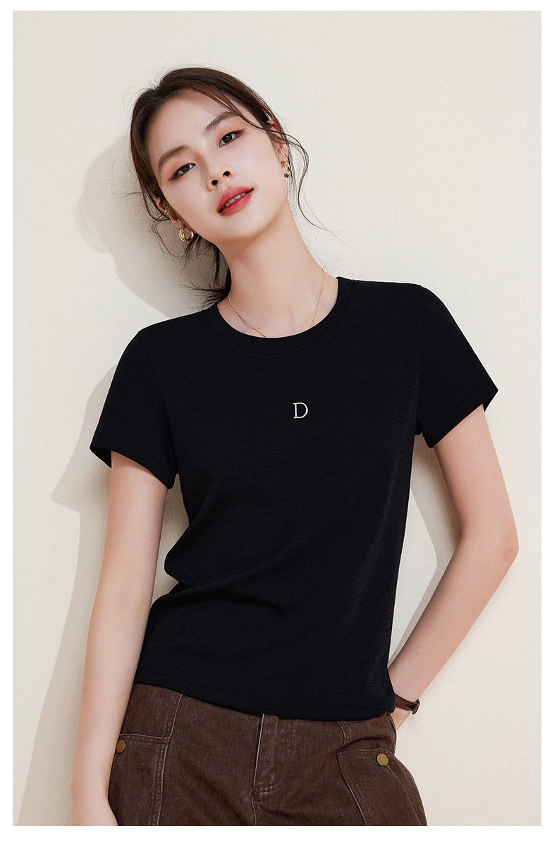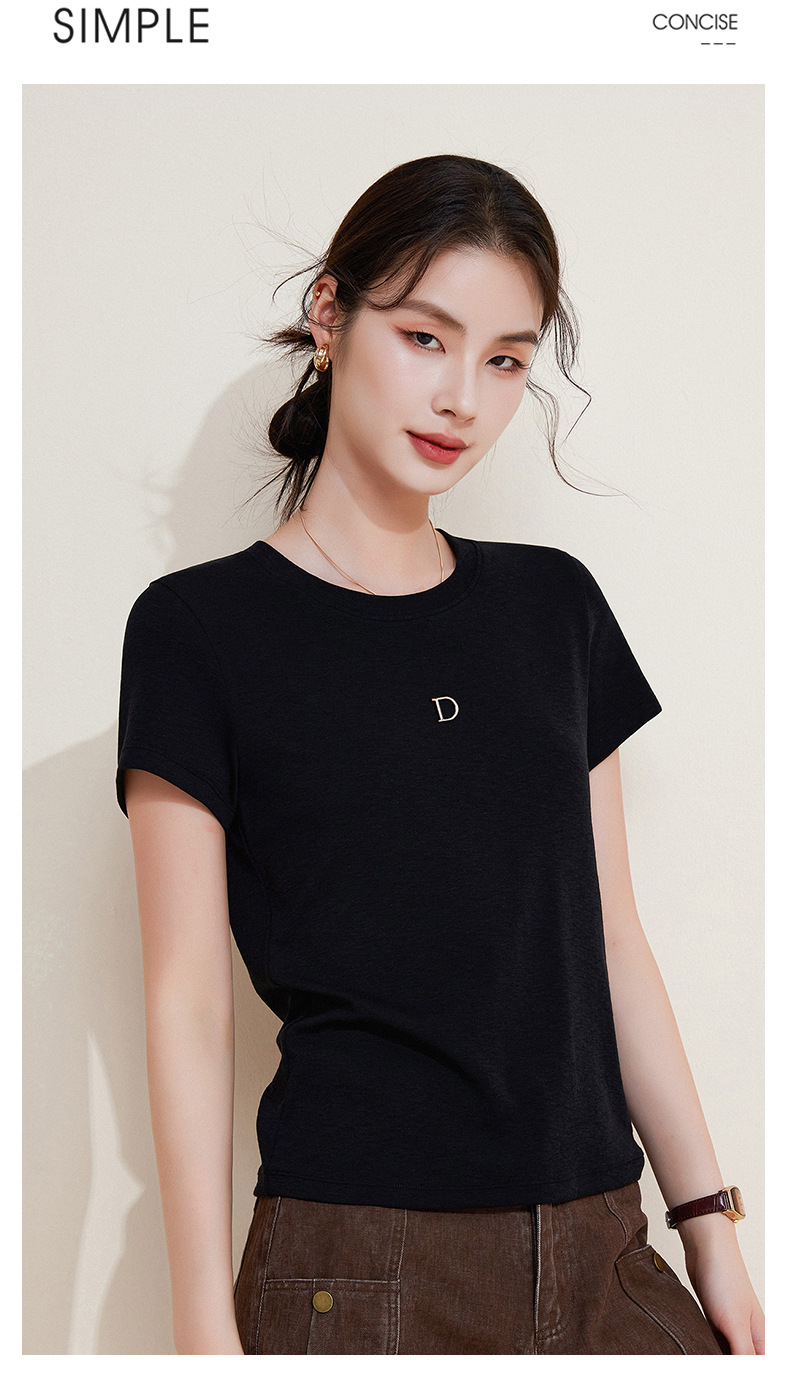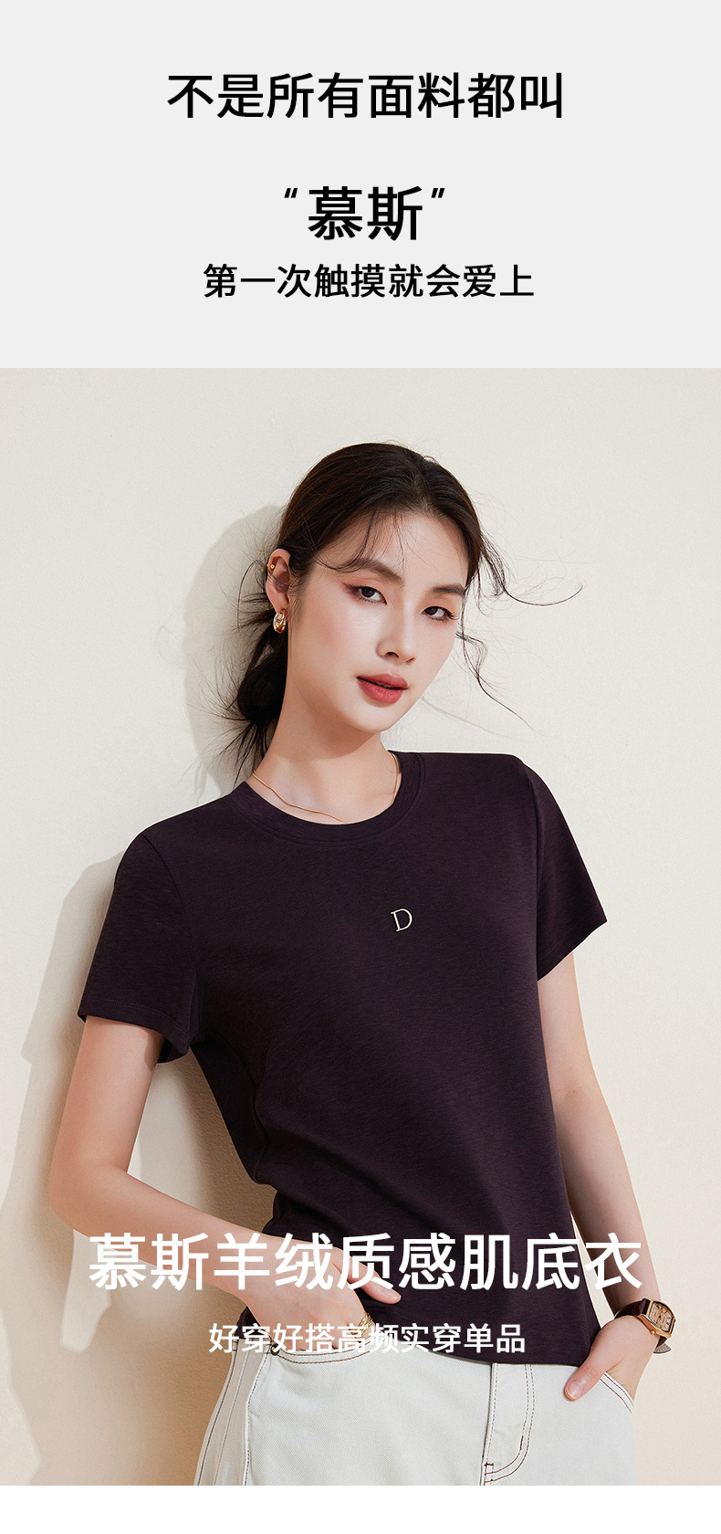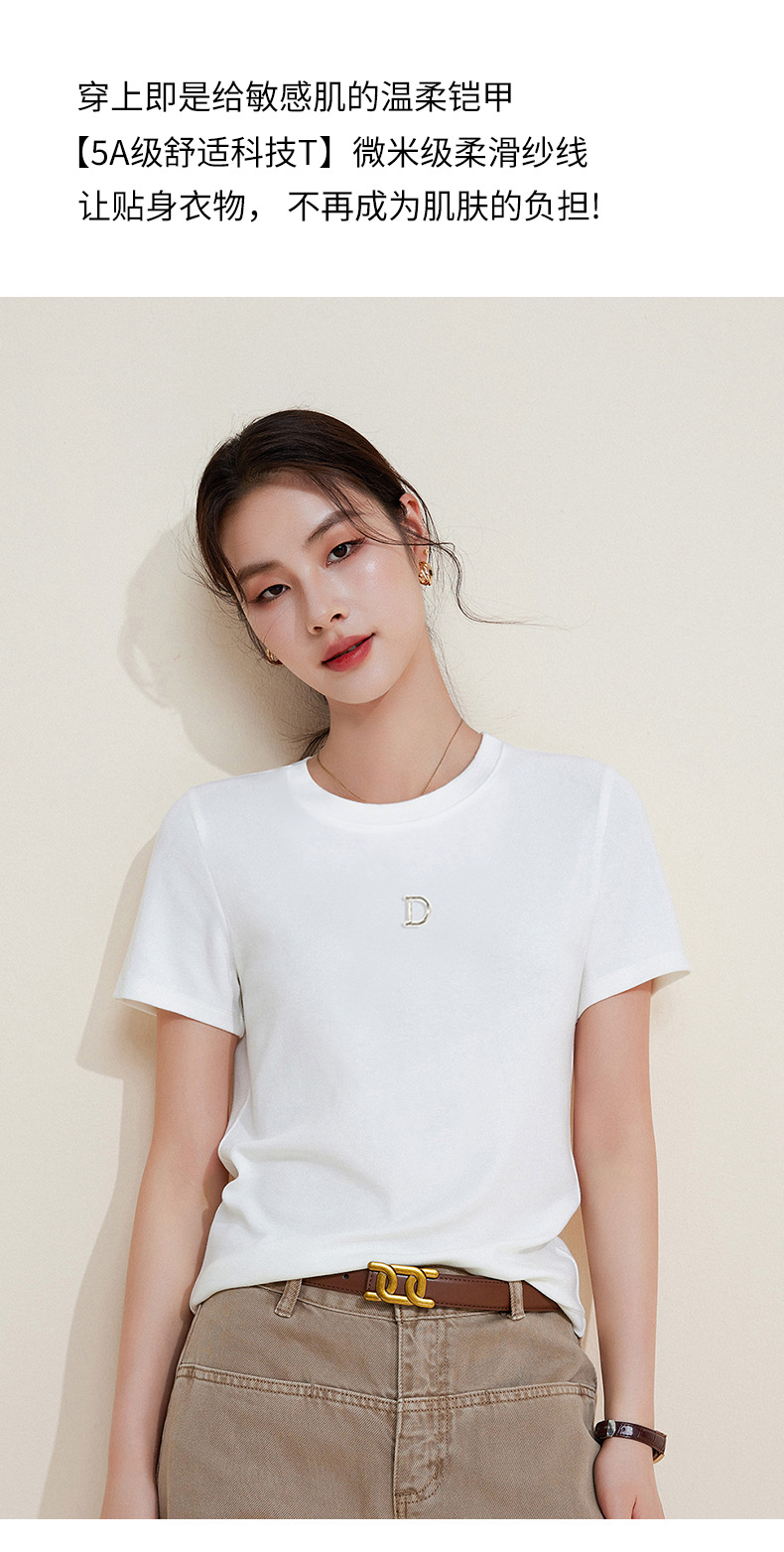 「自j」全新升级【铂金会员109/天猫149/差价40】(00024)洛诗琳气质纯色T恤2025早秋新款修身软糯百搭打底上衣女