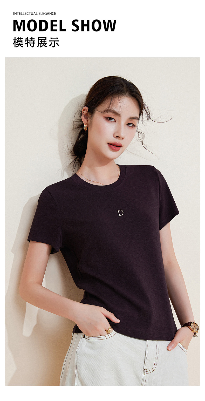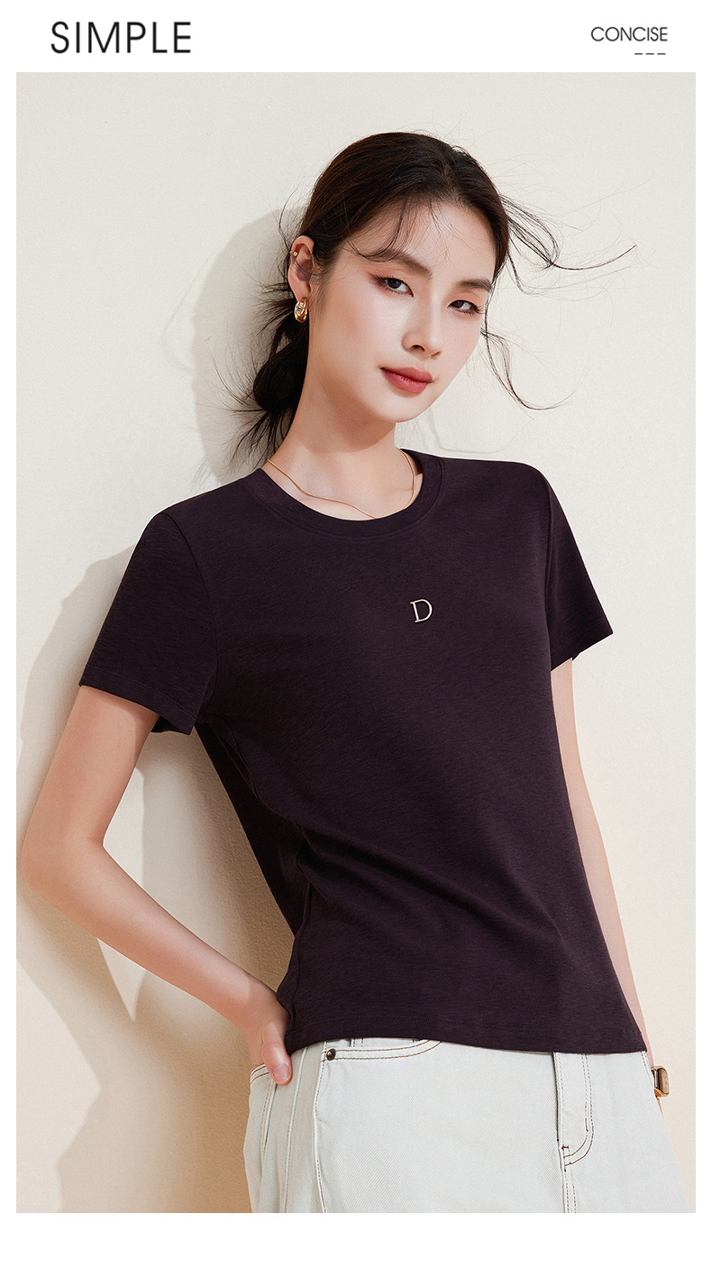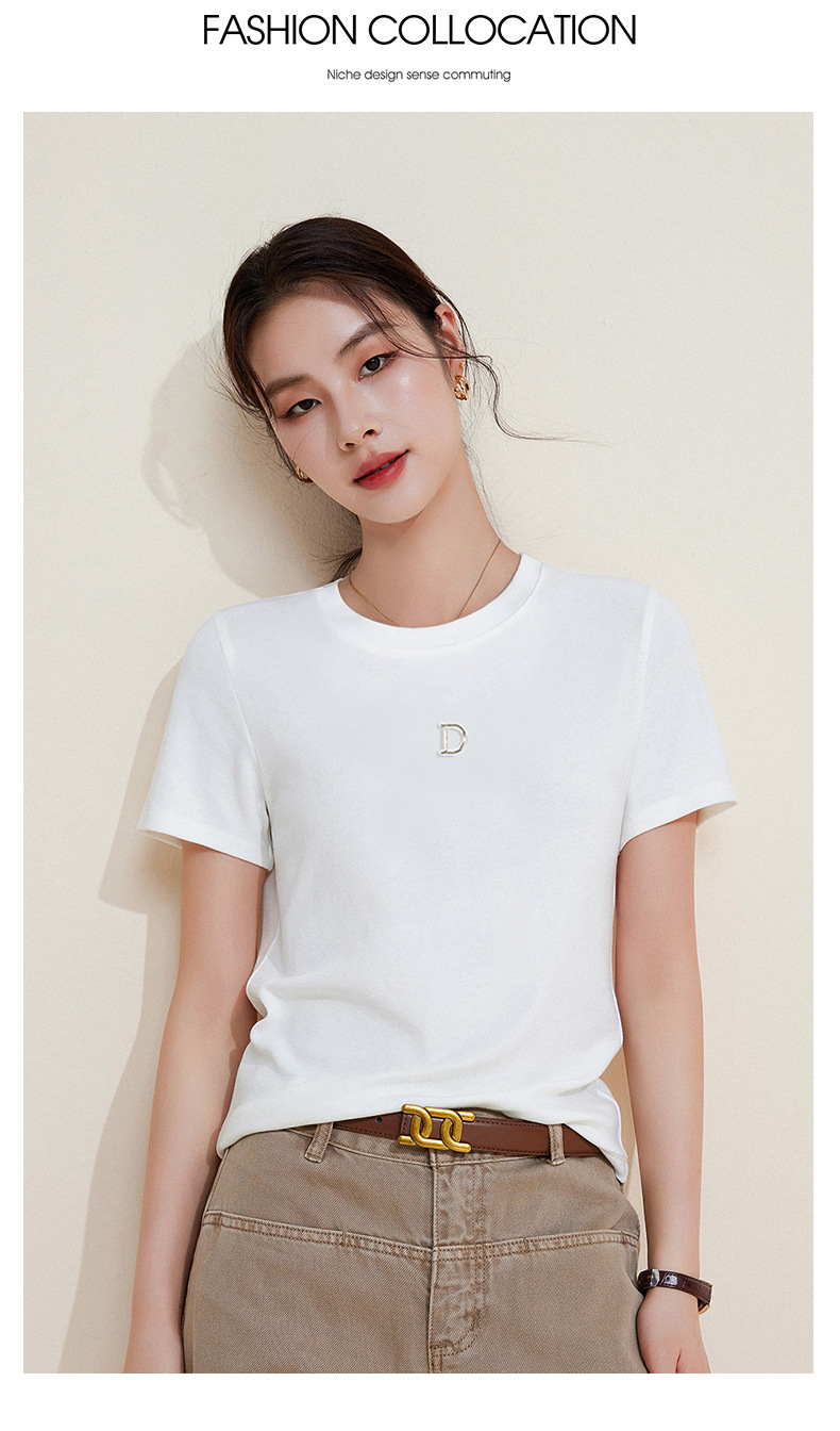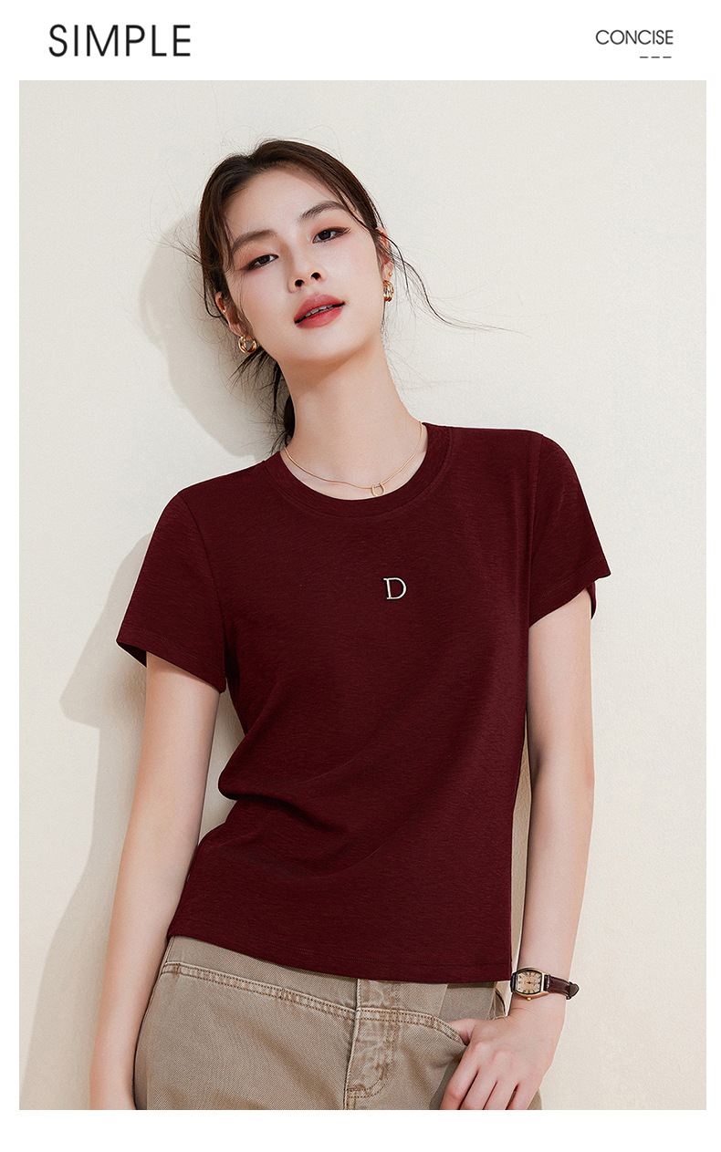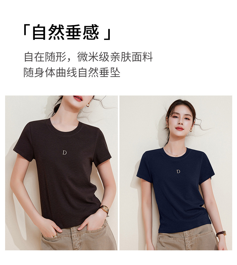 「自j」全新升级【铂金会员109/天猫149/差价40】(00024)洛诗琳气质纯色T恤2025早秋新款修身软糯百搭打底上衣女