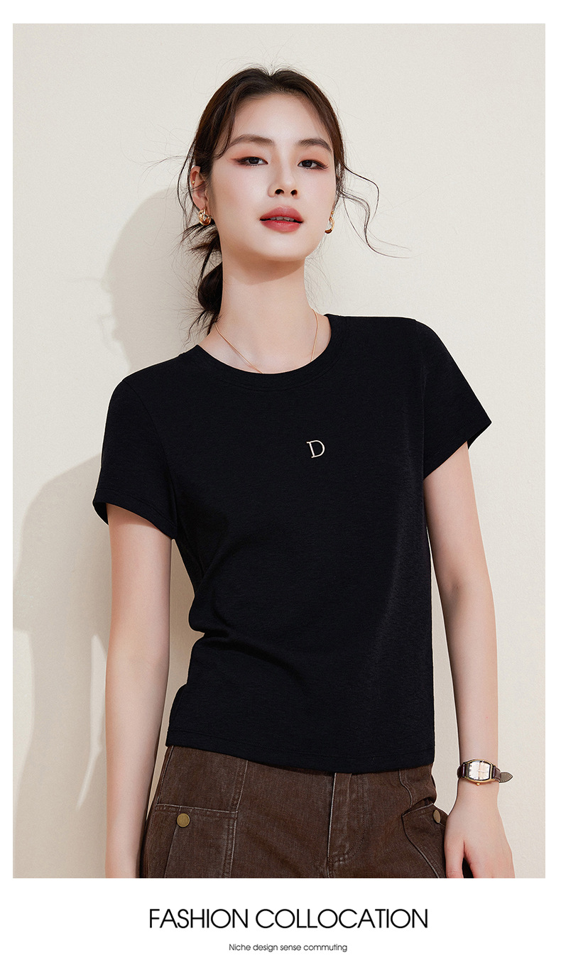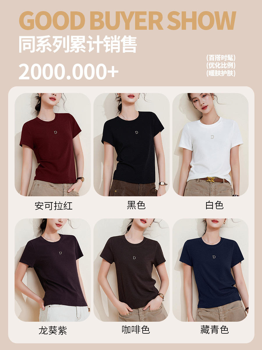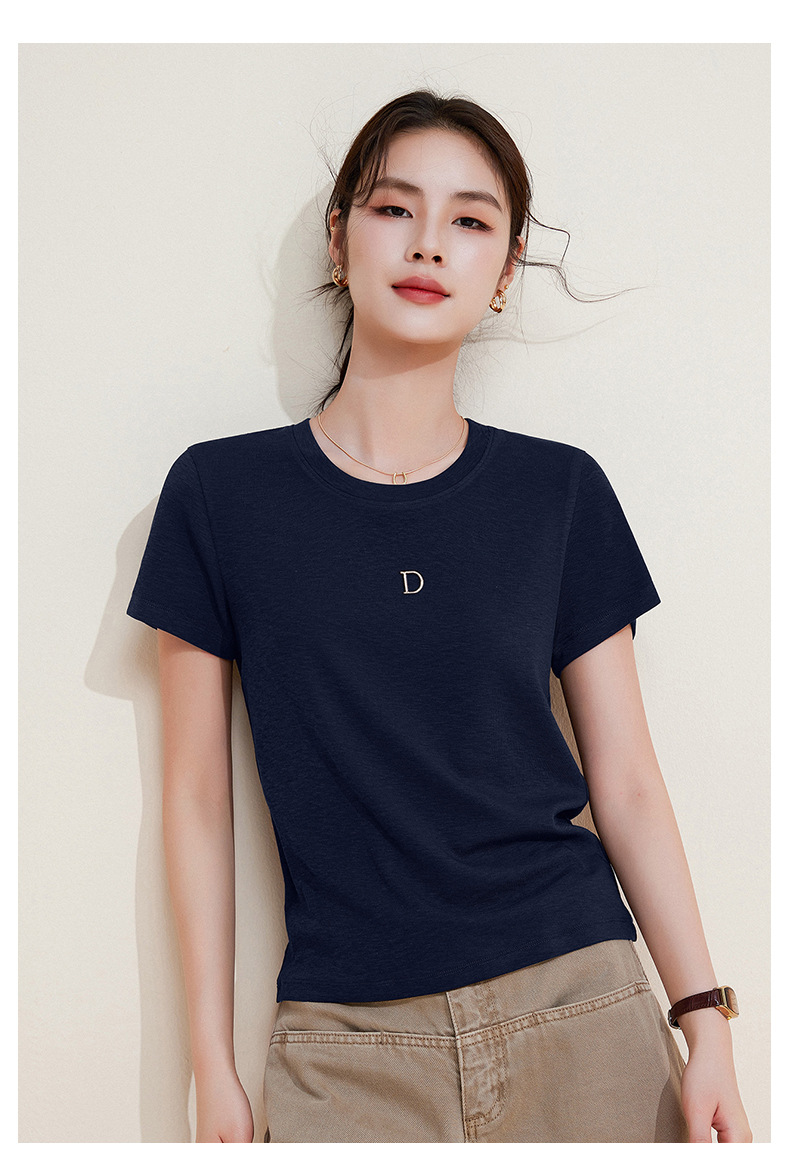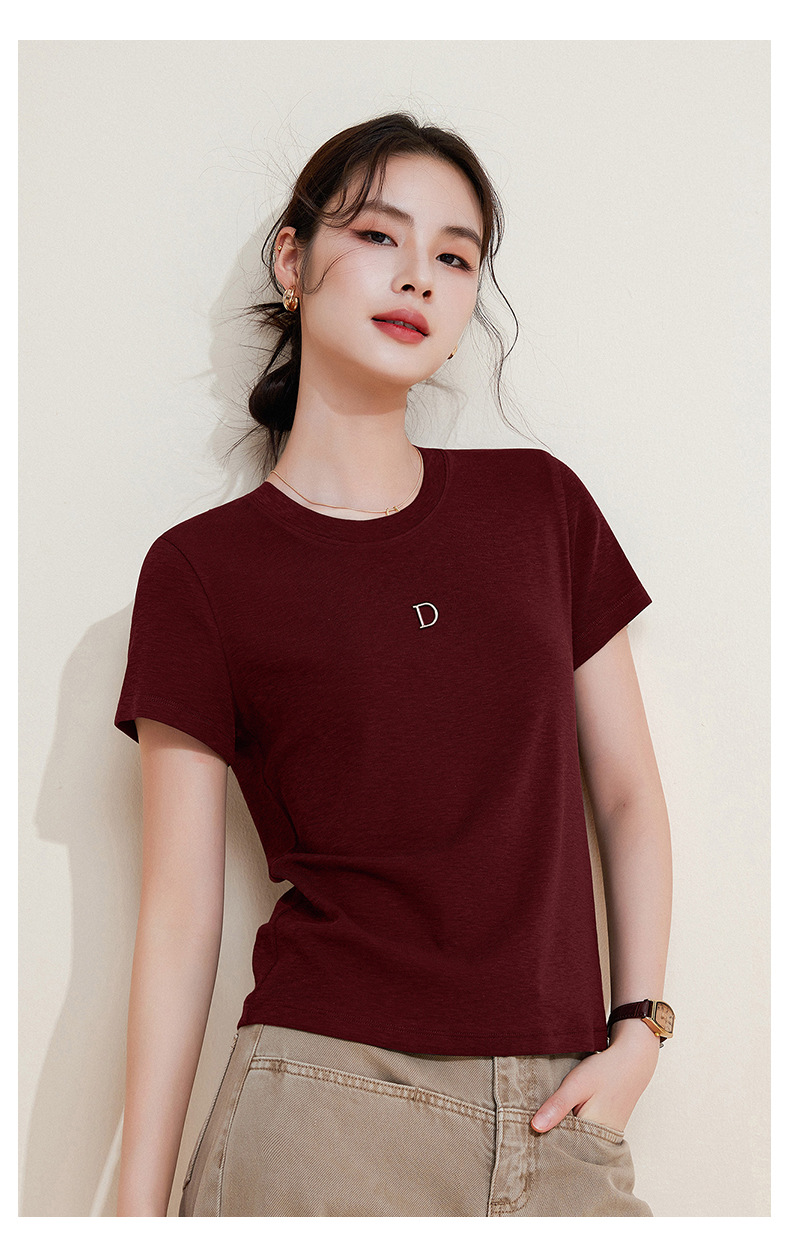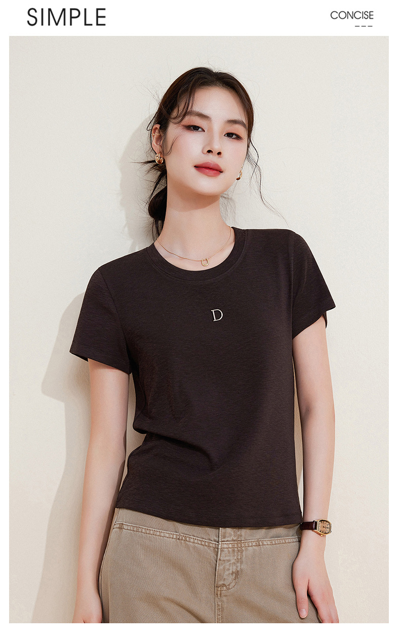 「自j」全新升级【铂金会员109/天猫149/差价40】(00024)洛诗琳气质纯色T恤2025早秋新款修身软糯百搭打底上衣女