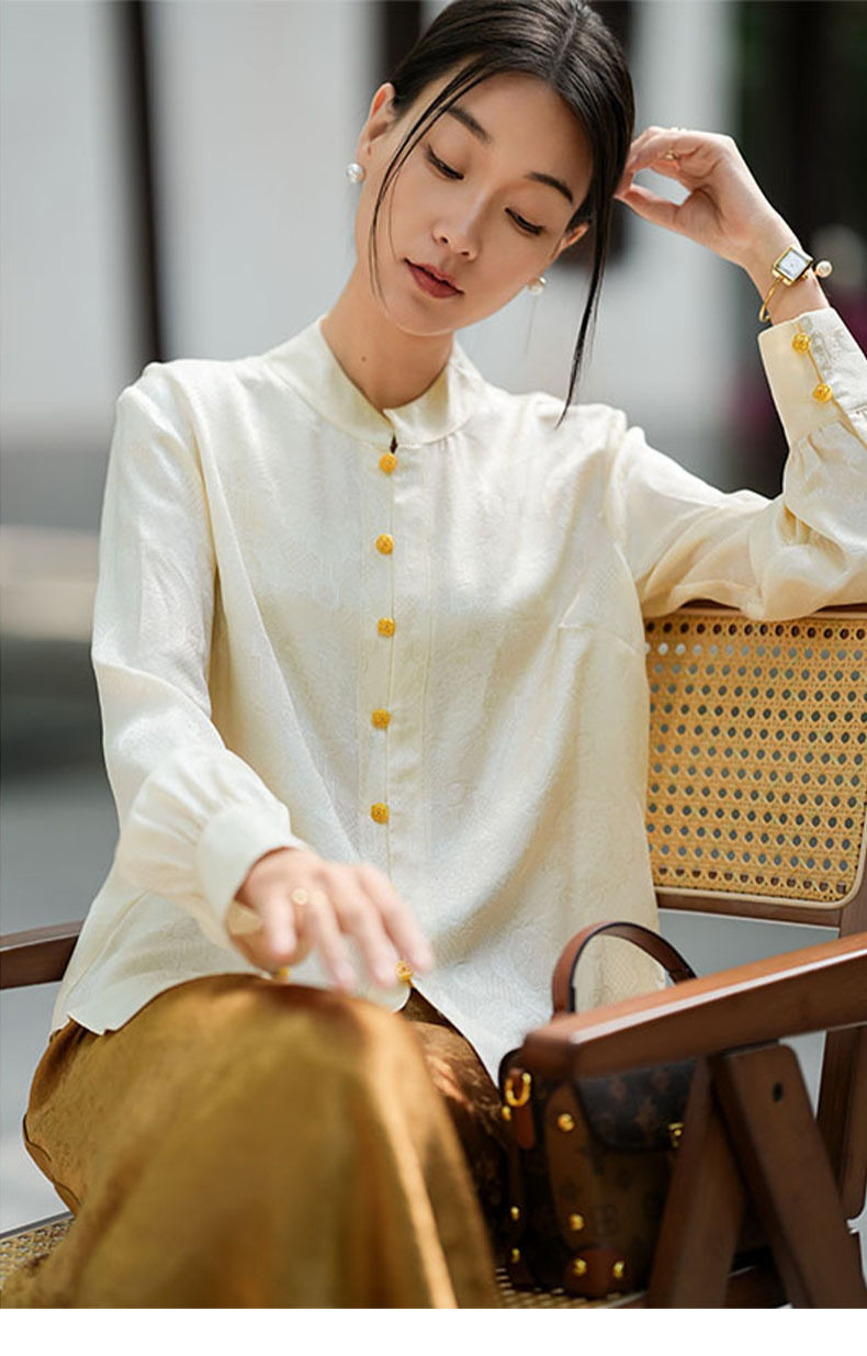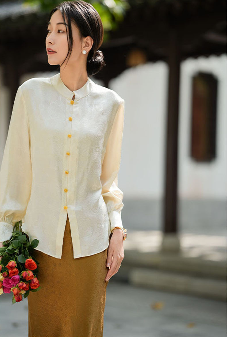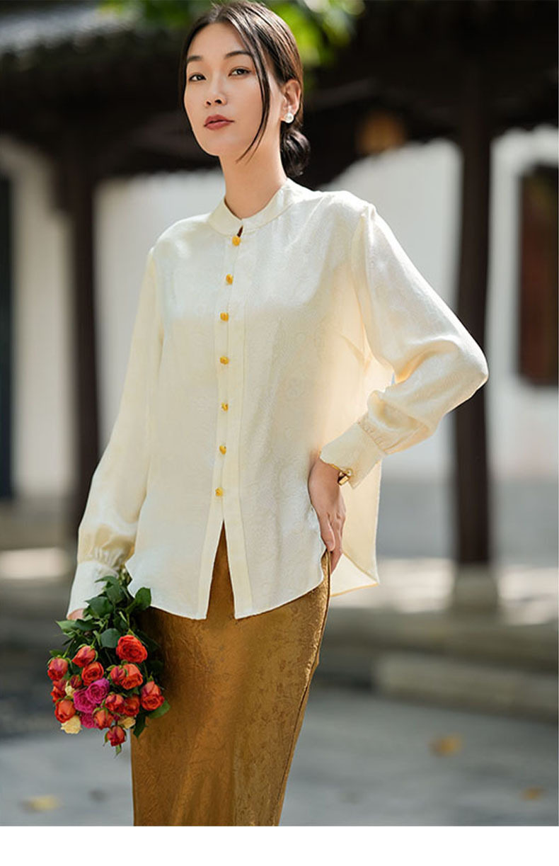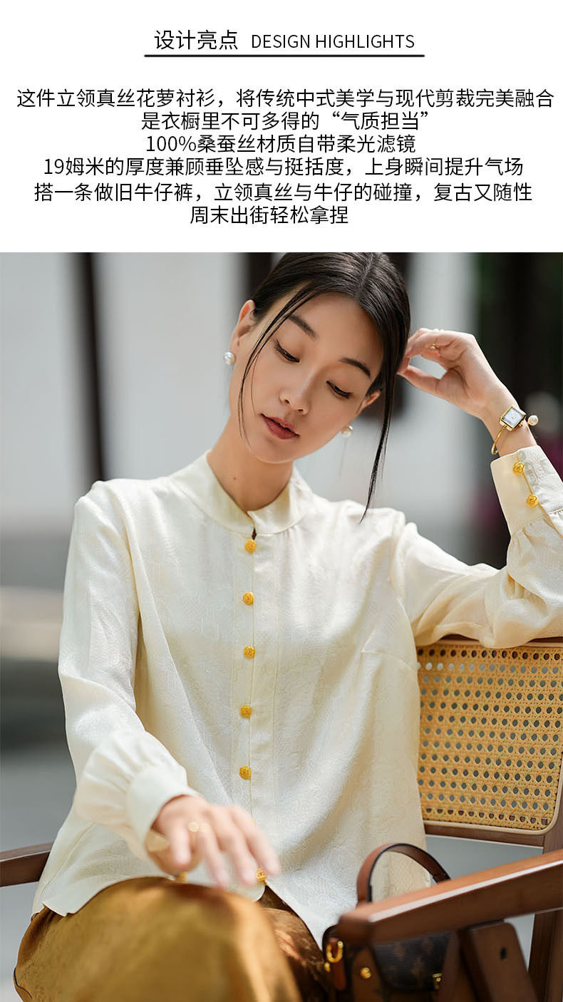 「高货kbnq」全新升级【铂金会员441/天猫599/差价158】(01712)洛诗琳气质中式真丝上衣2026春季新款国风真丝提花衬衫