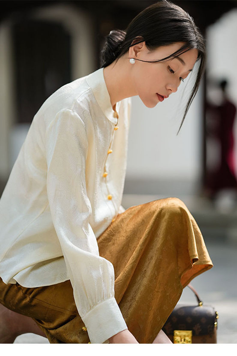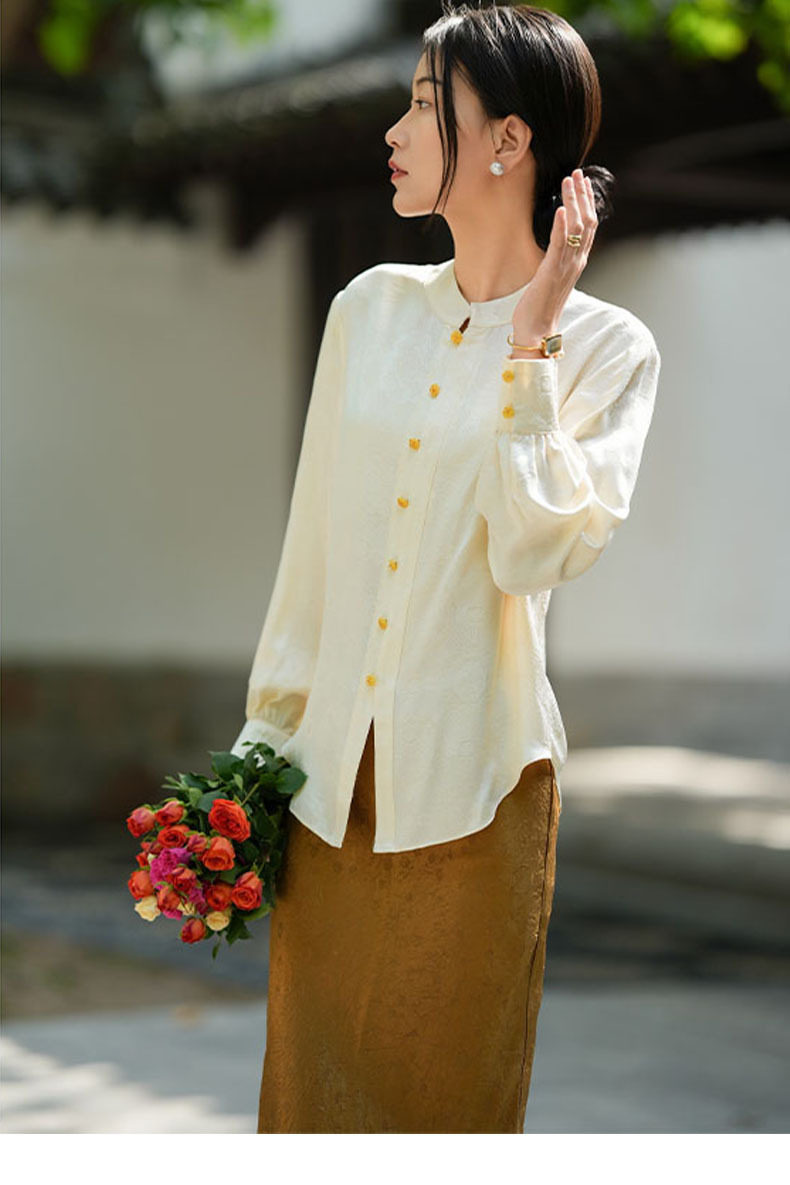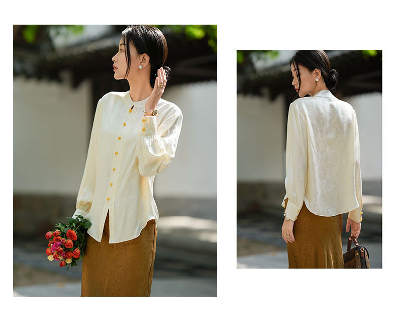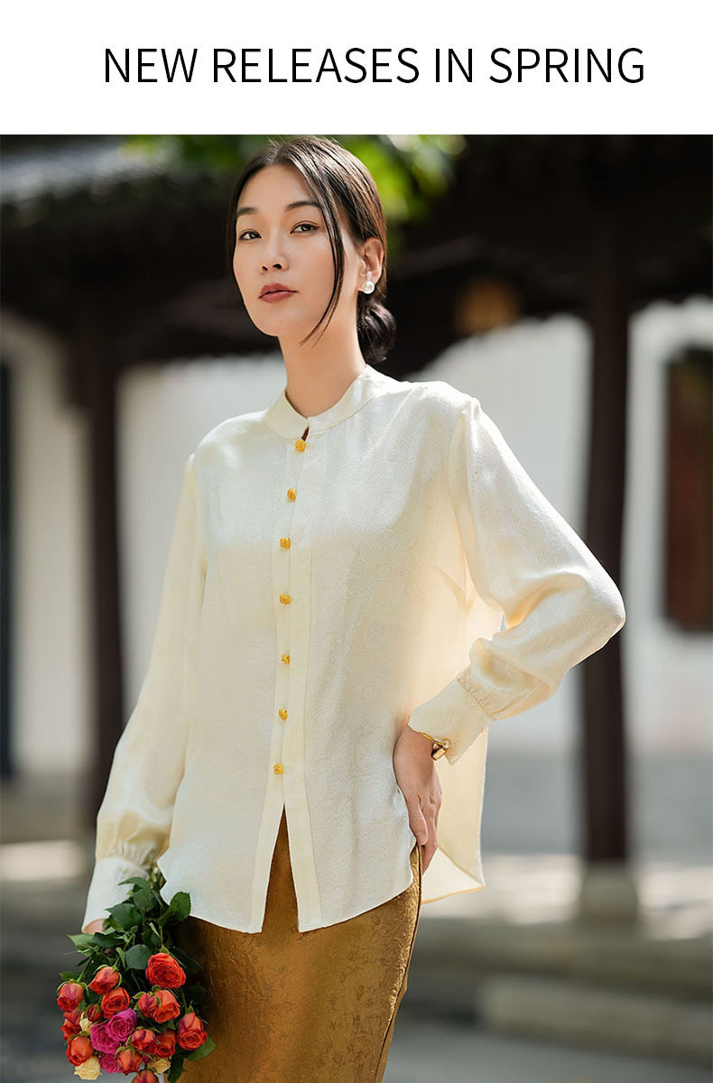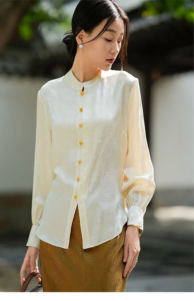 「高货kbnq」全新升级【铂金会员441/天猫599/差价158】(01712)洛诗琳气质中式真丝上衣2026春季新款国风真丝提花衬衫